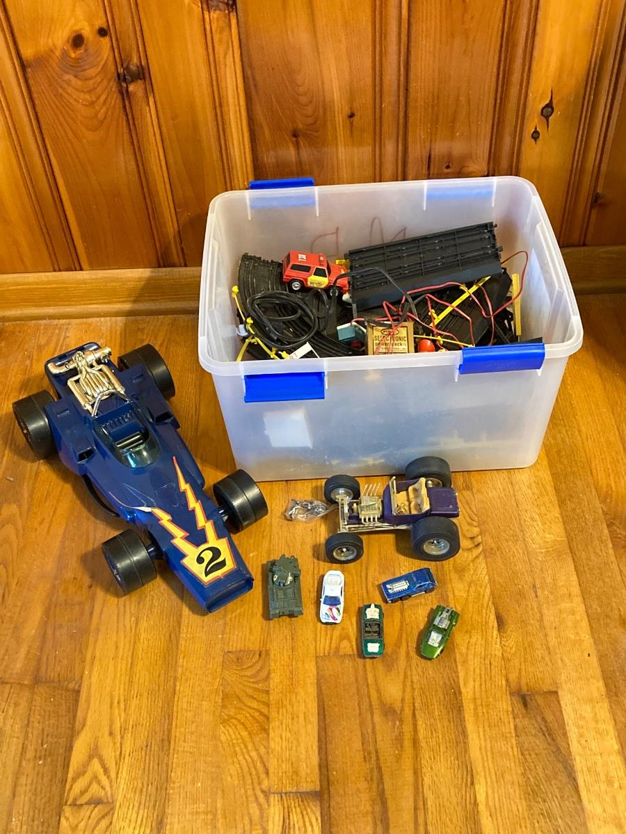 LOT 147: As Found Collection of Toy Cars (Zylmex California T Hot Rod / Hot Wheels) , Race Tracks and More