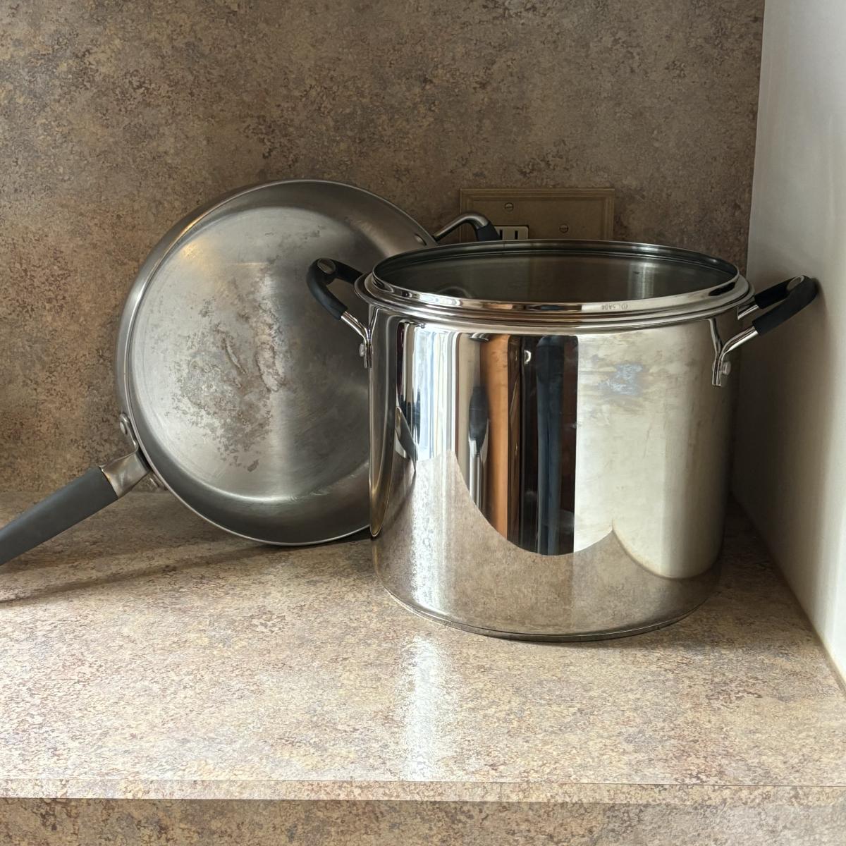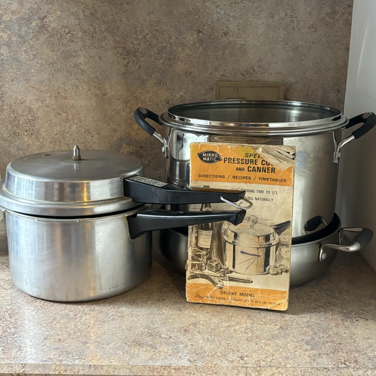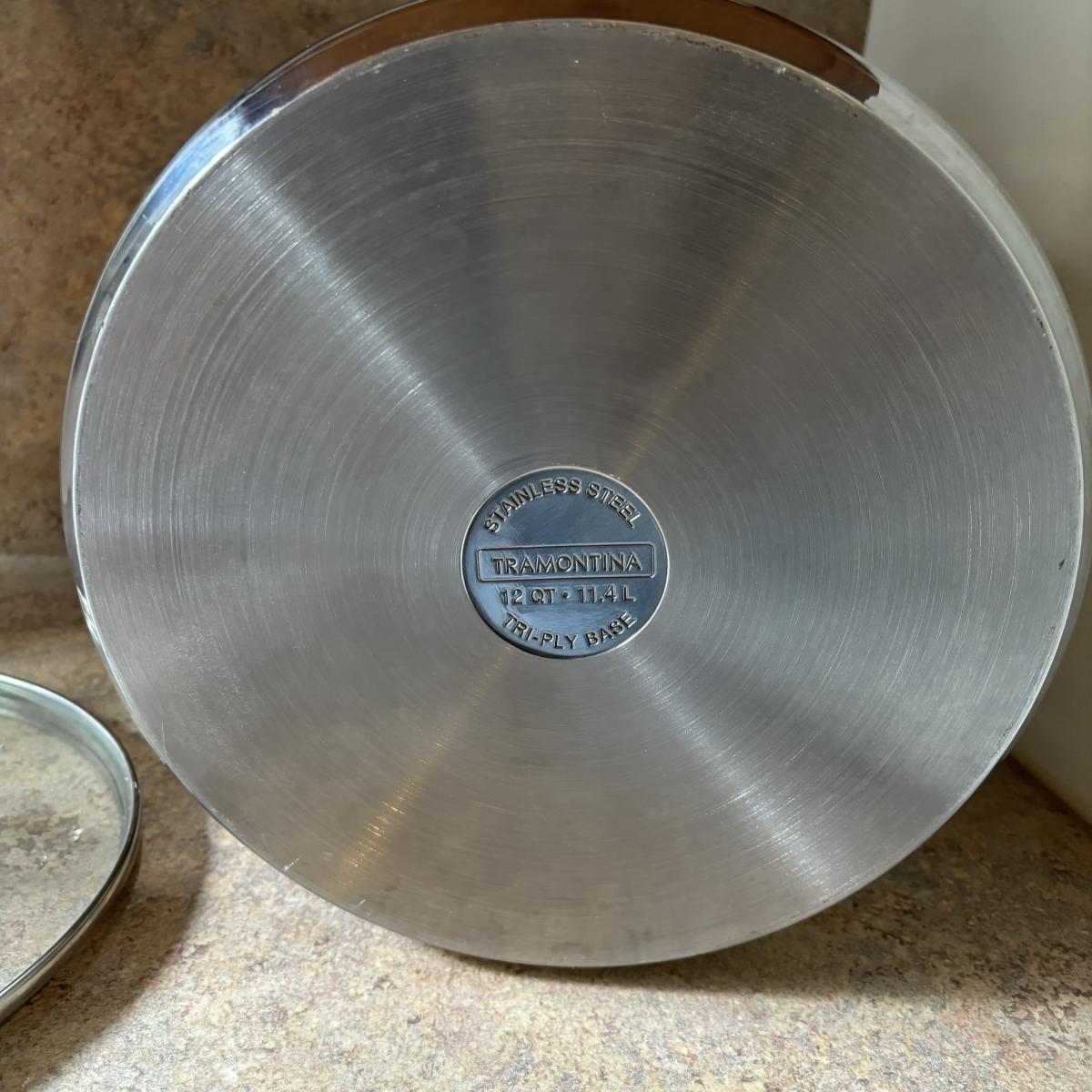 LOT 222: Mirror Matic Pressure Cooker/Canner, Martha Stewart 11" Pan & Tramontina 12qt Stock Pot