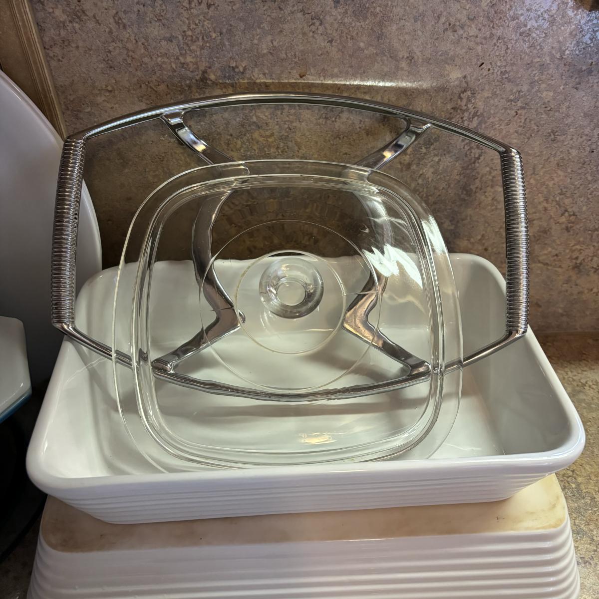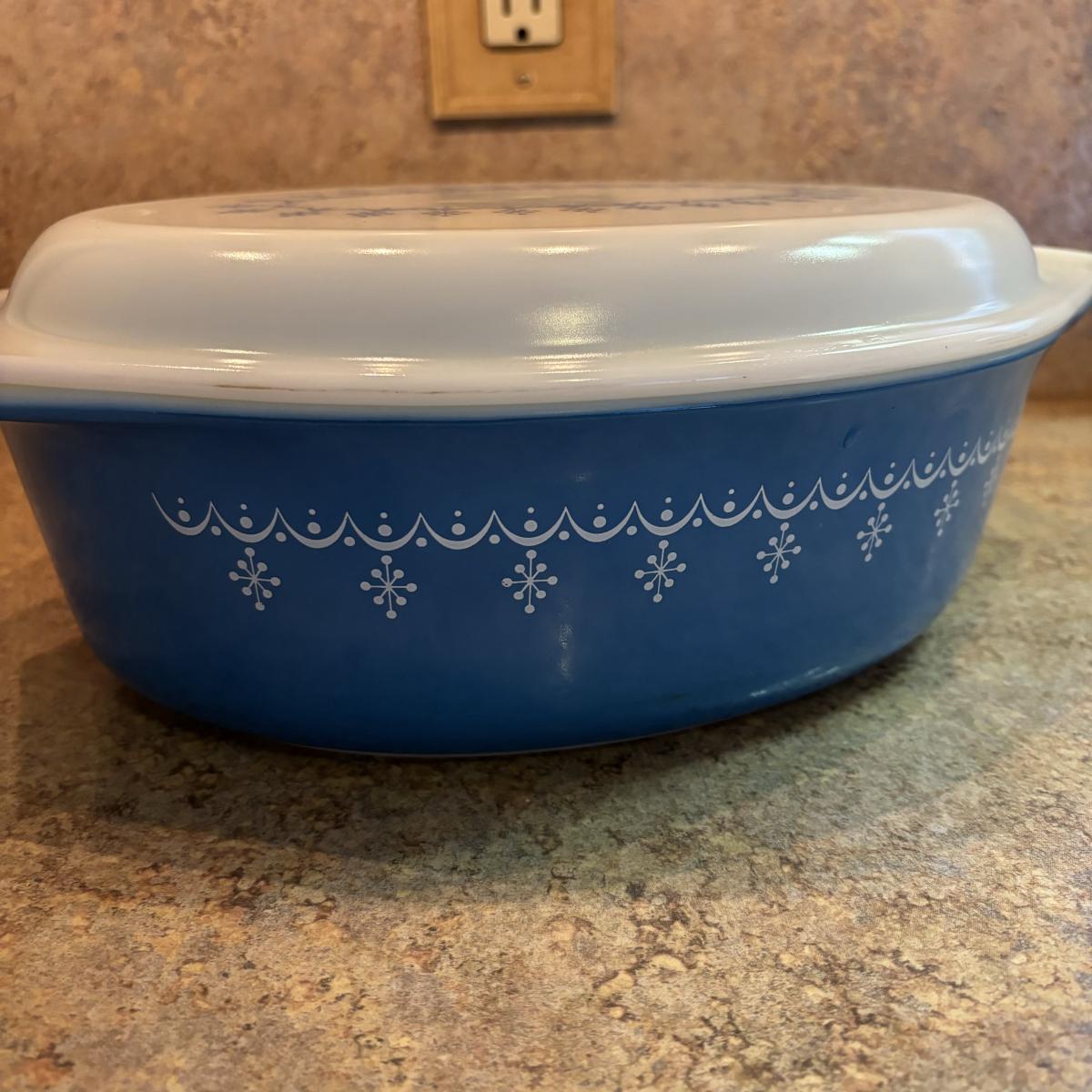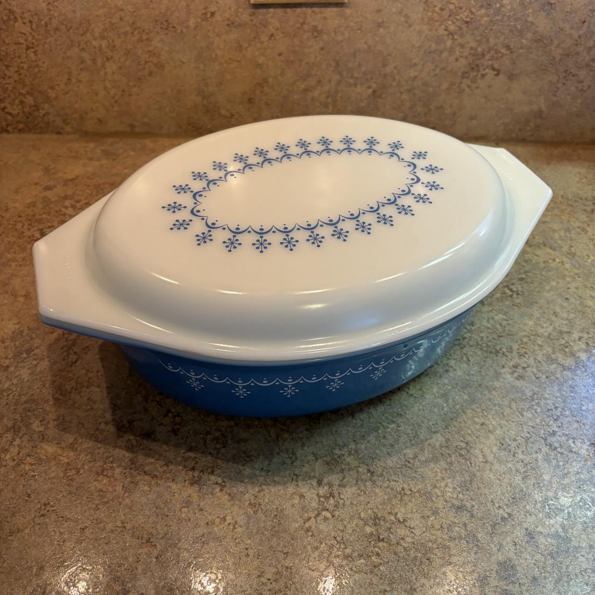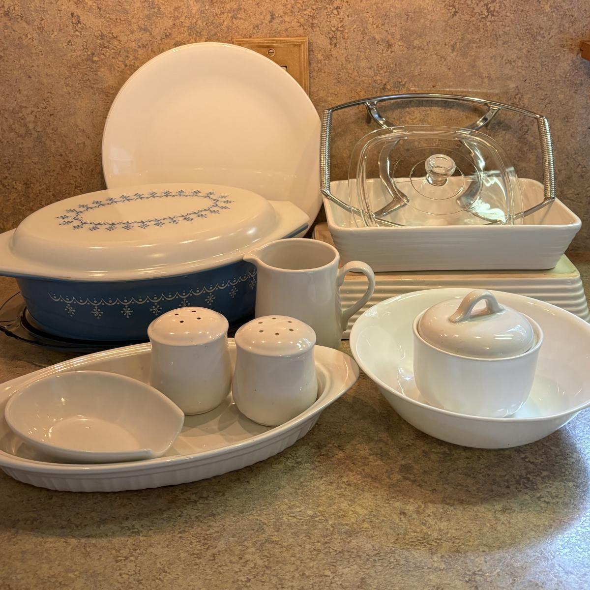 LOT 227: Pyrex Snowflake Garland Oval Dish w/Lid, Corelle, Coring Ware