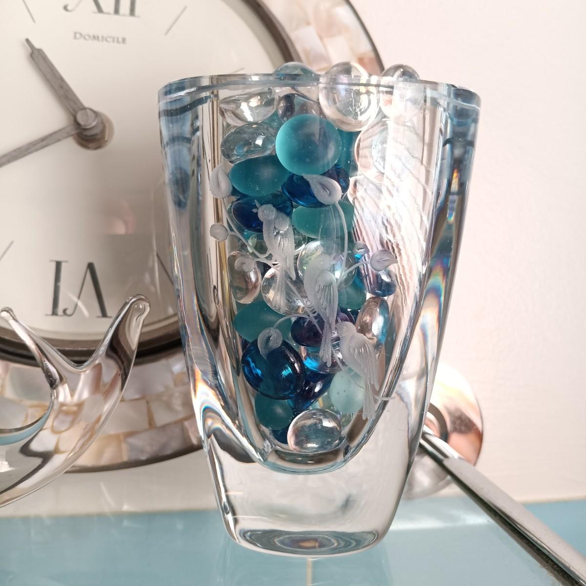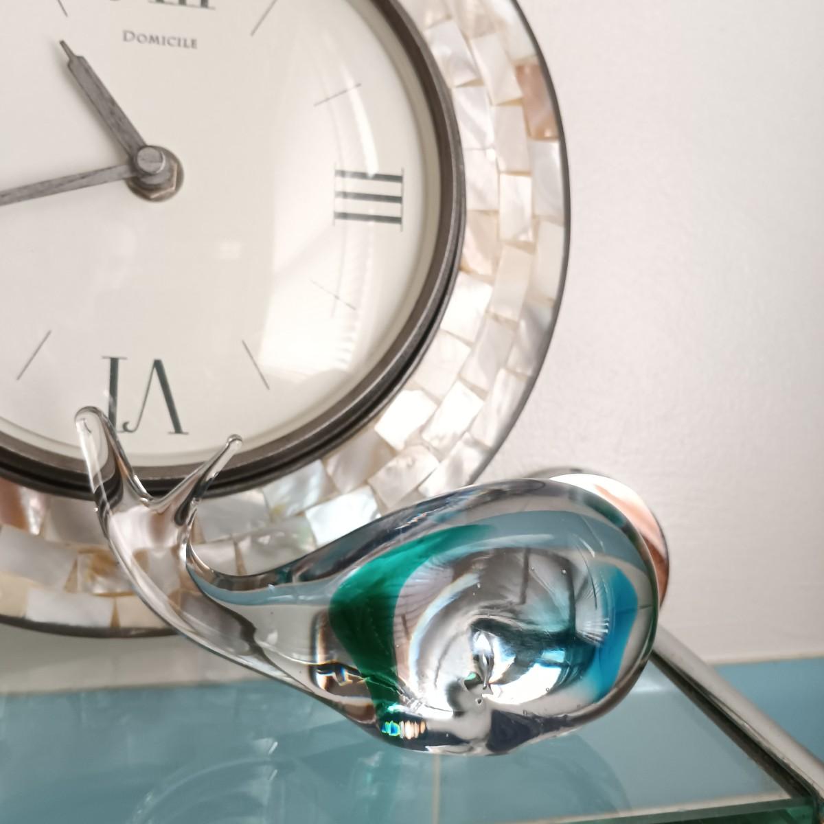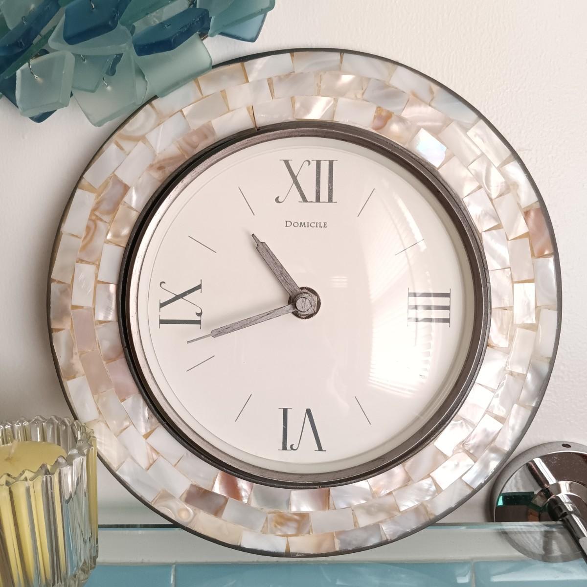LOT 244: Nautical Themed Decor- Beach Glass Wreath, Glass Whales, Shell Clock & More
