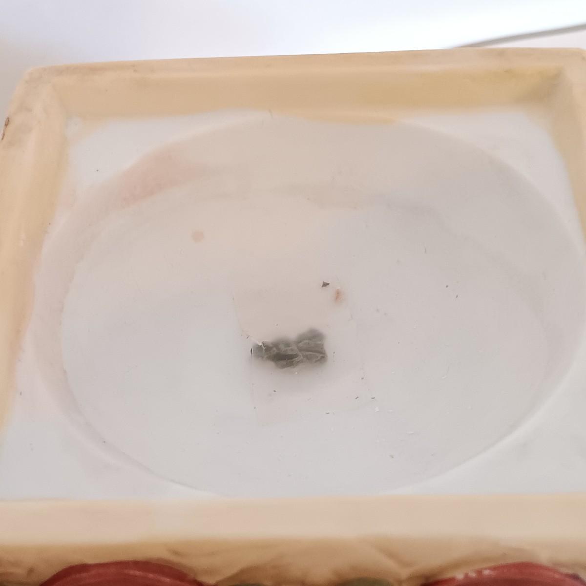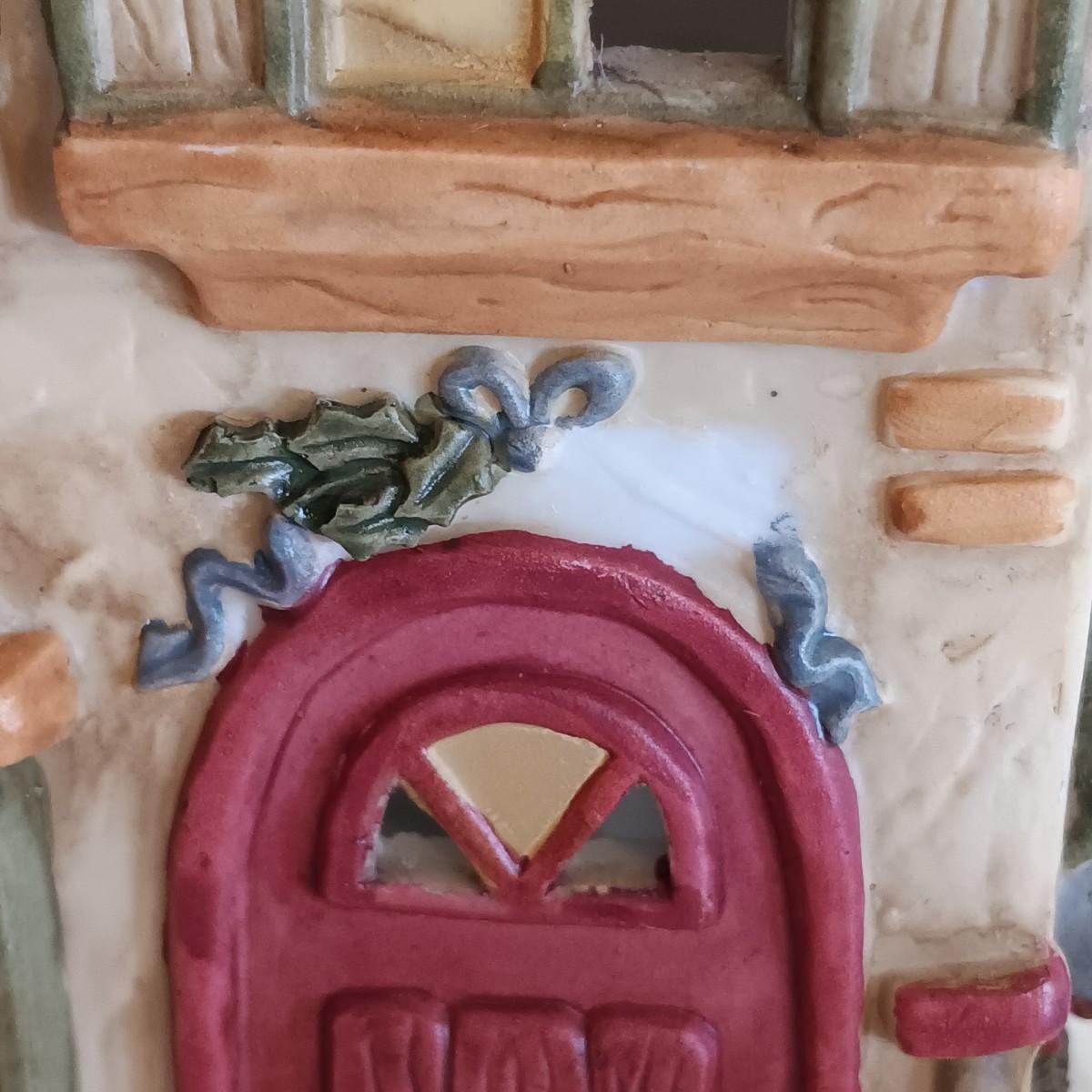 A piece of holly has come unglued from the candle holder.