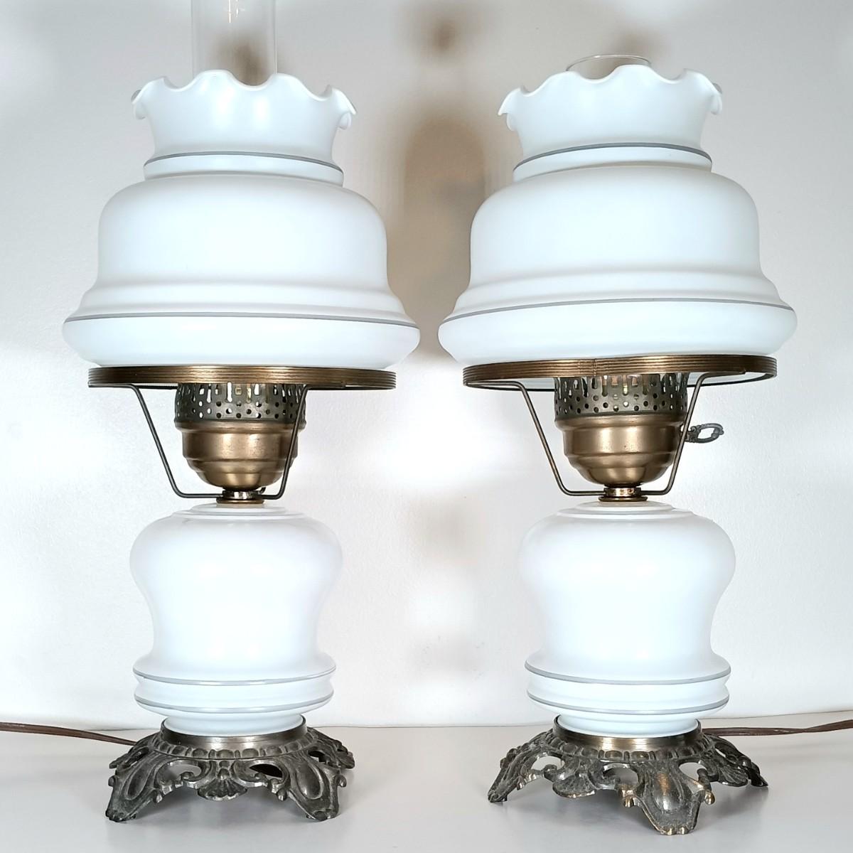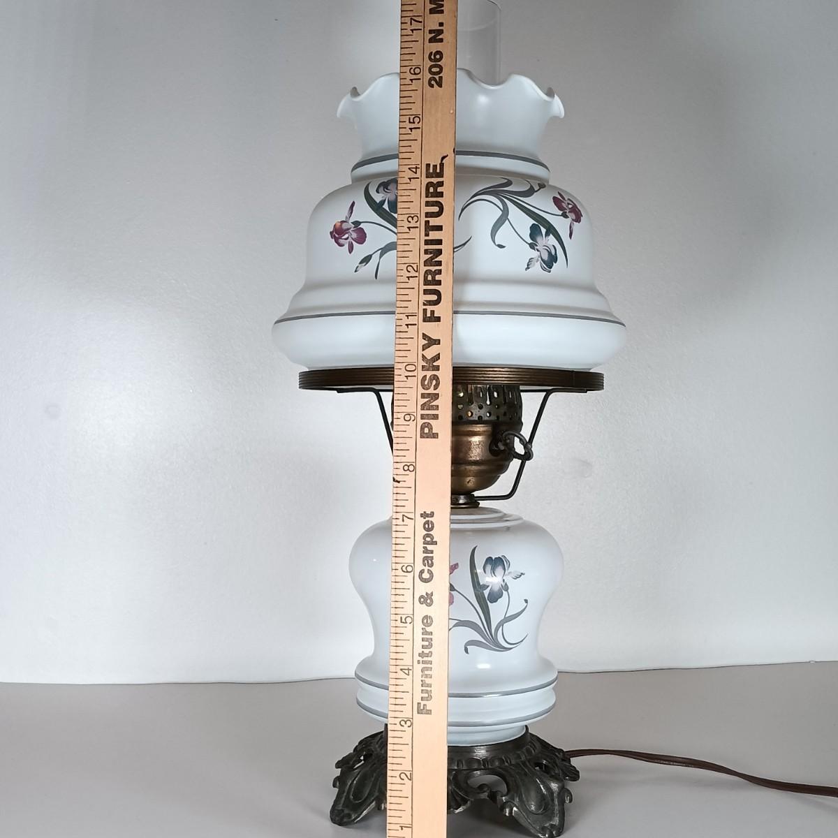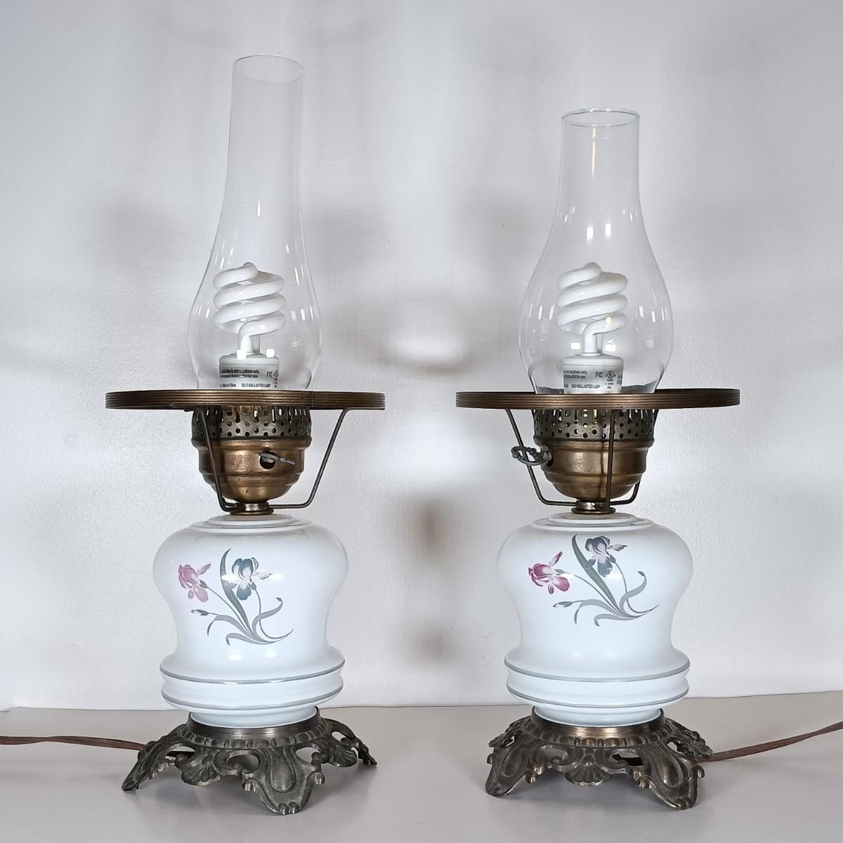 LOT 259: Vintage Glass and Brass Hurricane Lamps