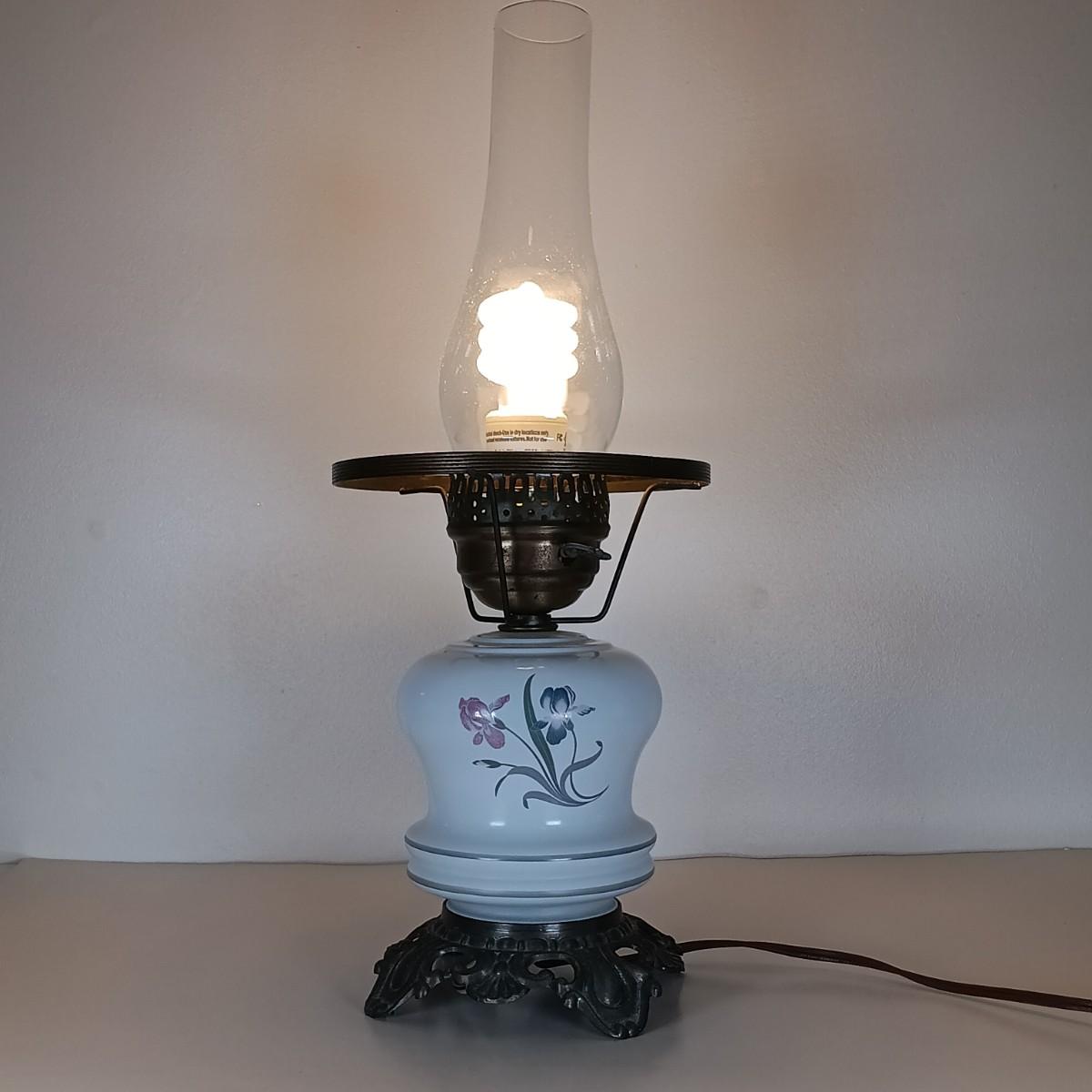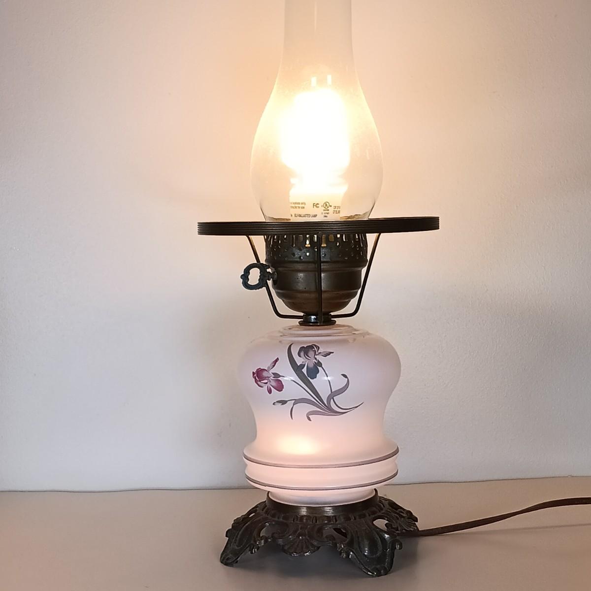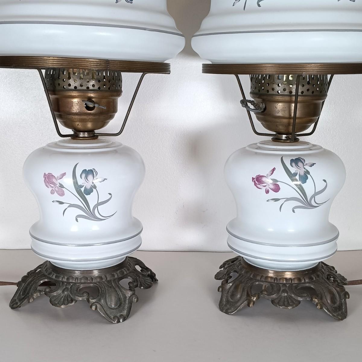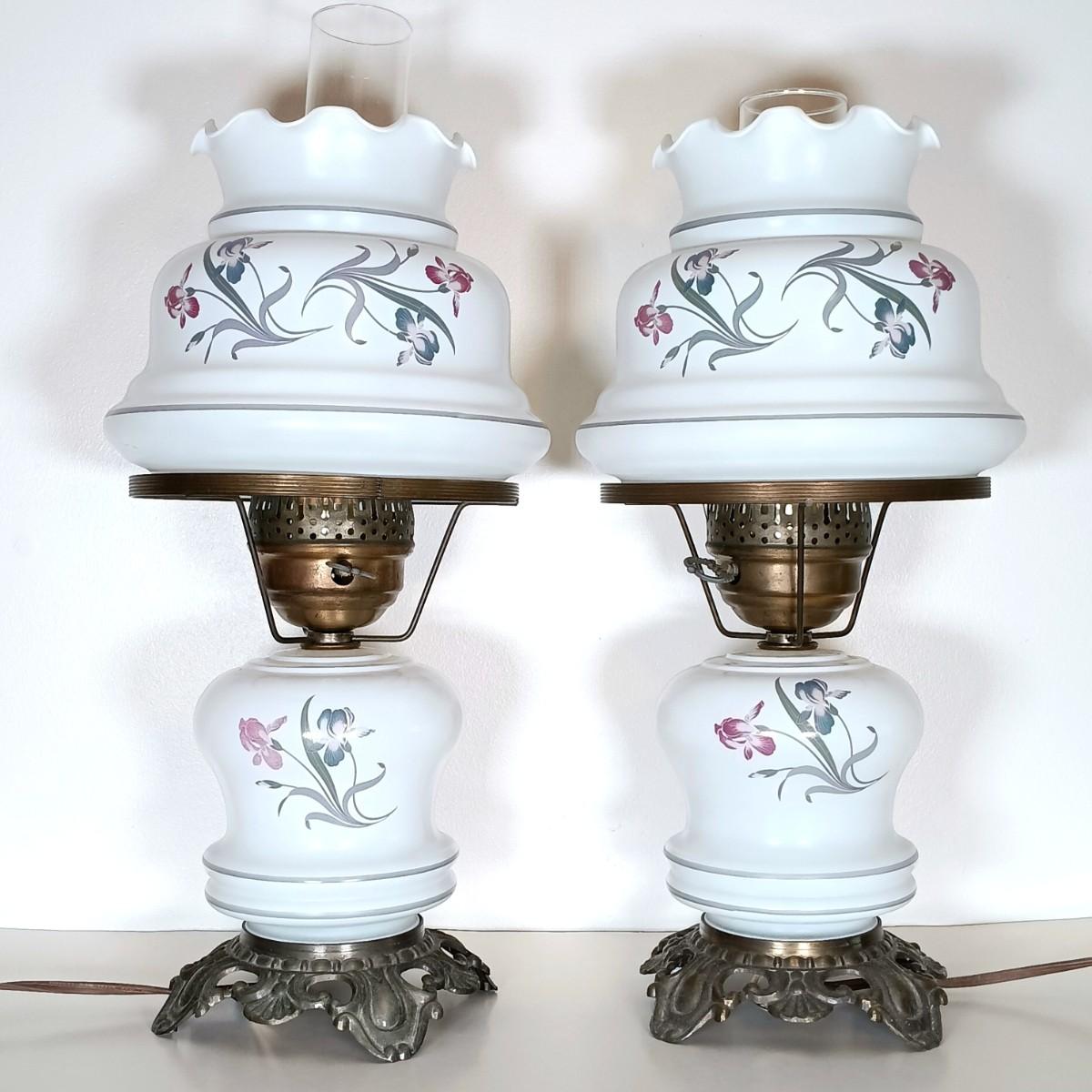 LOT 259: Vintage Glass and Brass Hurricane Lamps