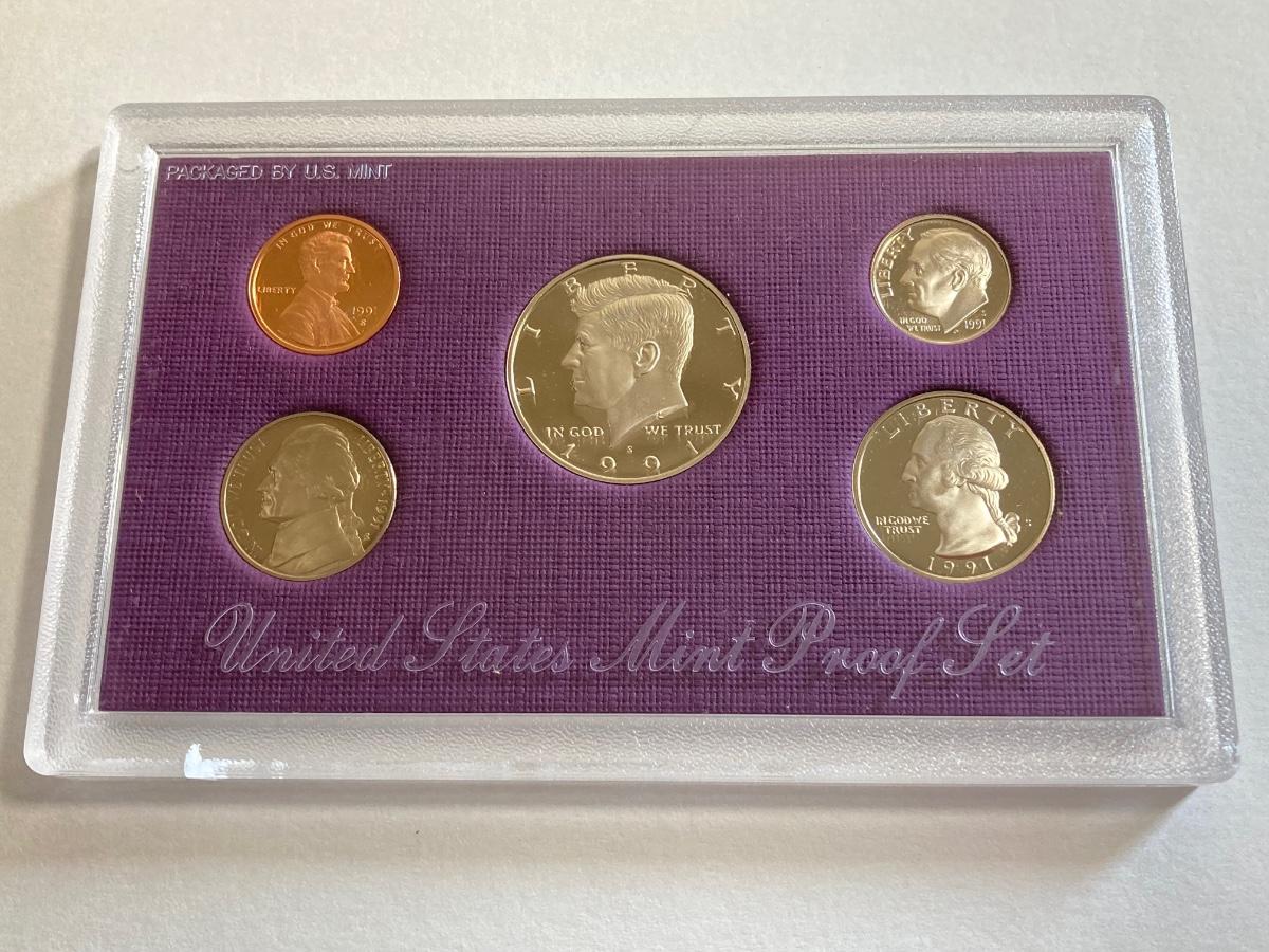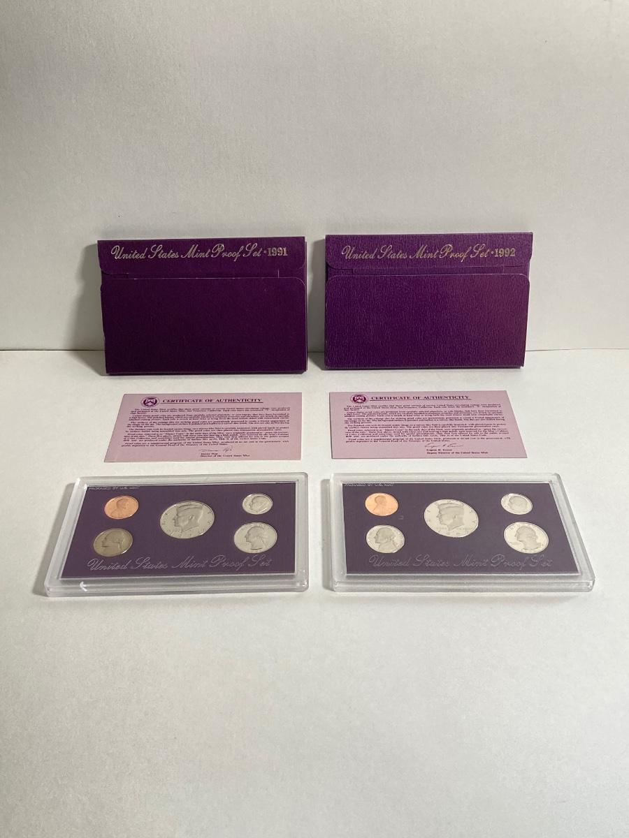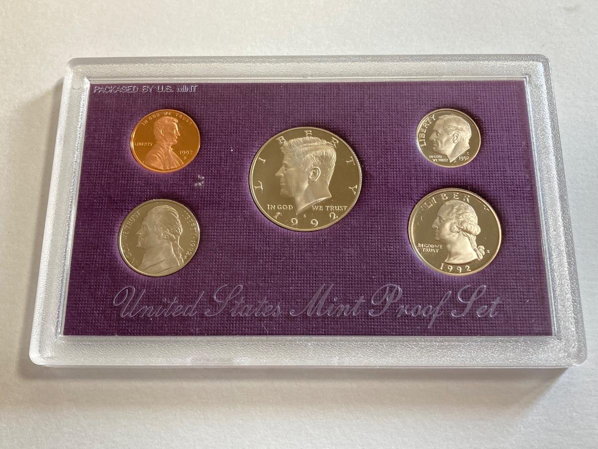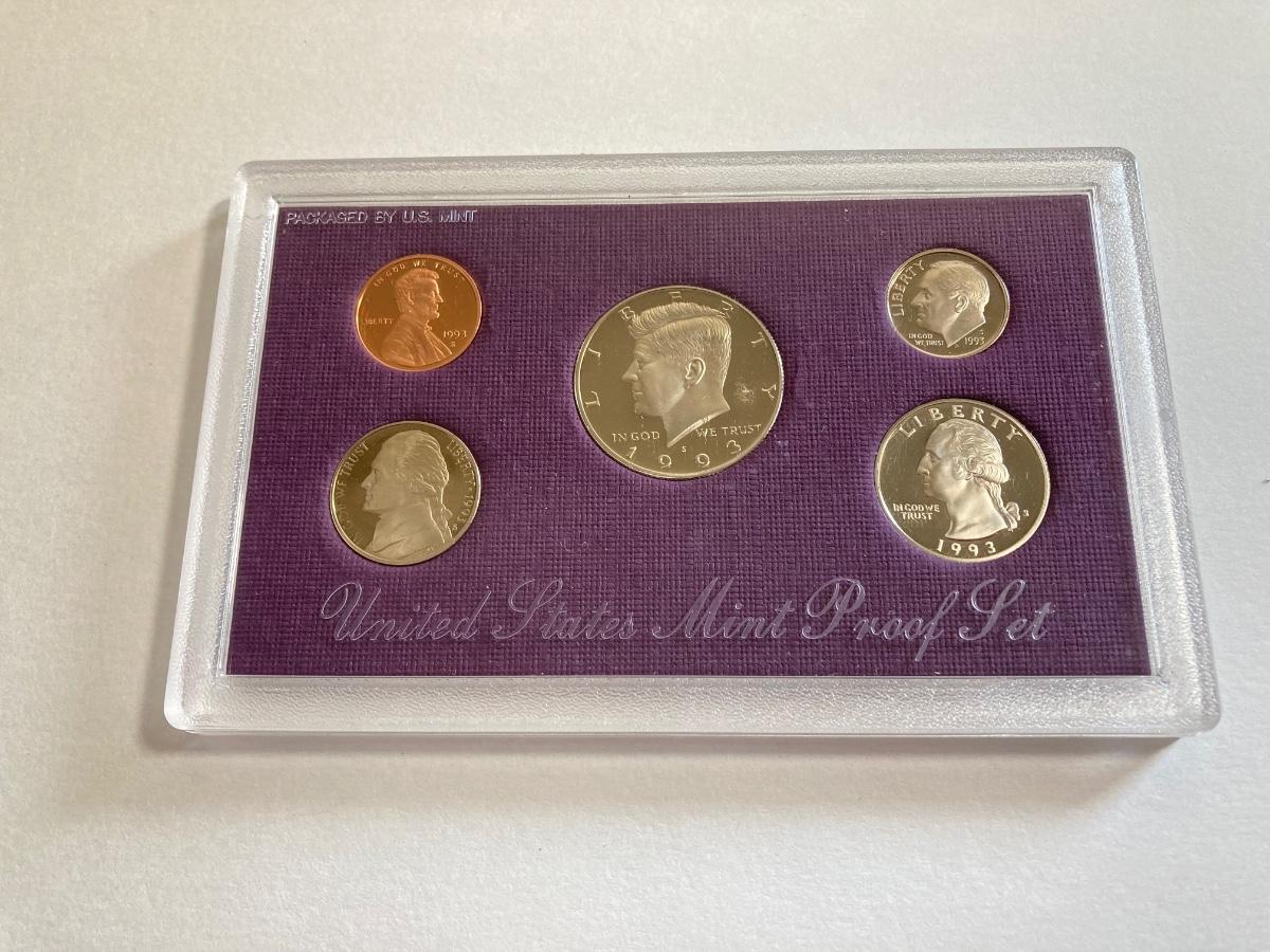 LOT 280: United States Mint Proof Sets - 1987, 1991, 1992, 1993 and Bicentennial Coinage 1776 - 1976 3 Piece Set