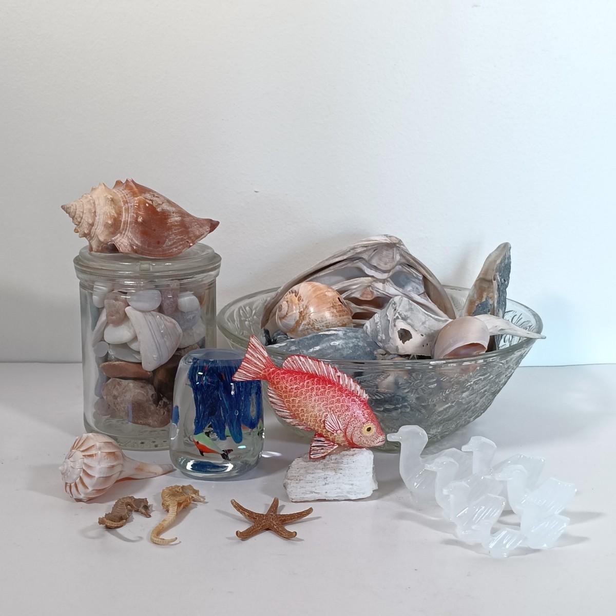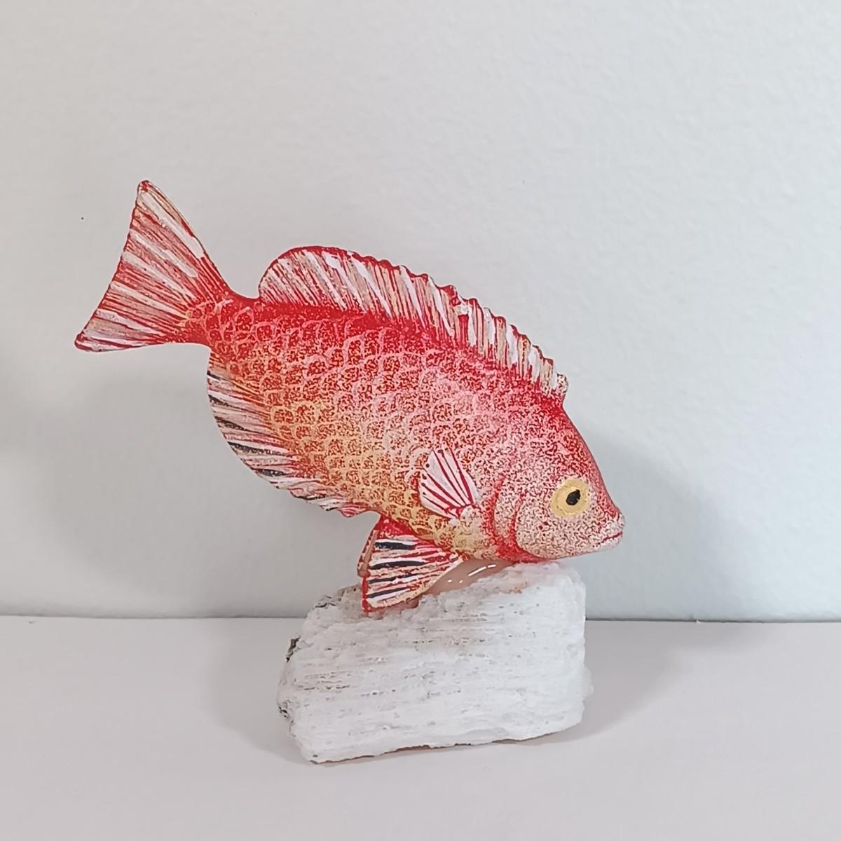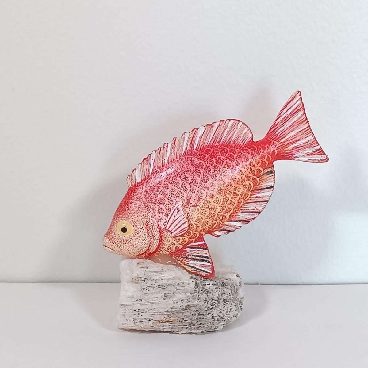 LOT 299: Art Glass Fish Paperweight, Carved Crystal Birds, Red Snapper Figurine & More