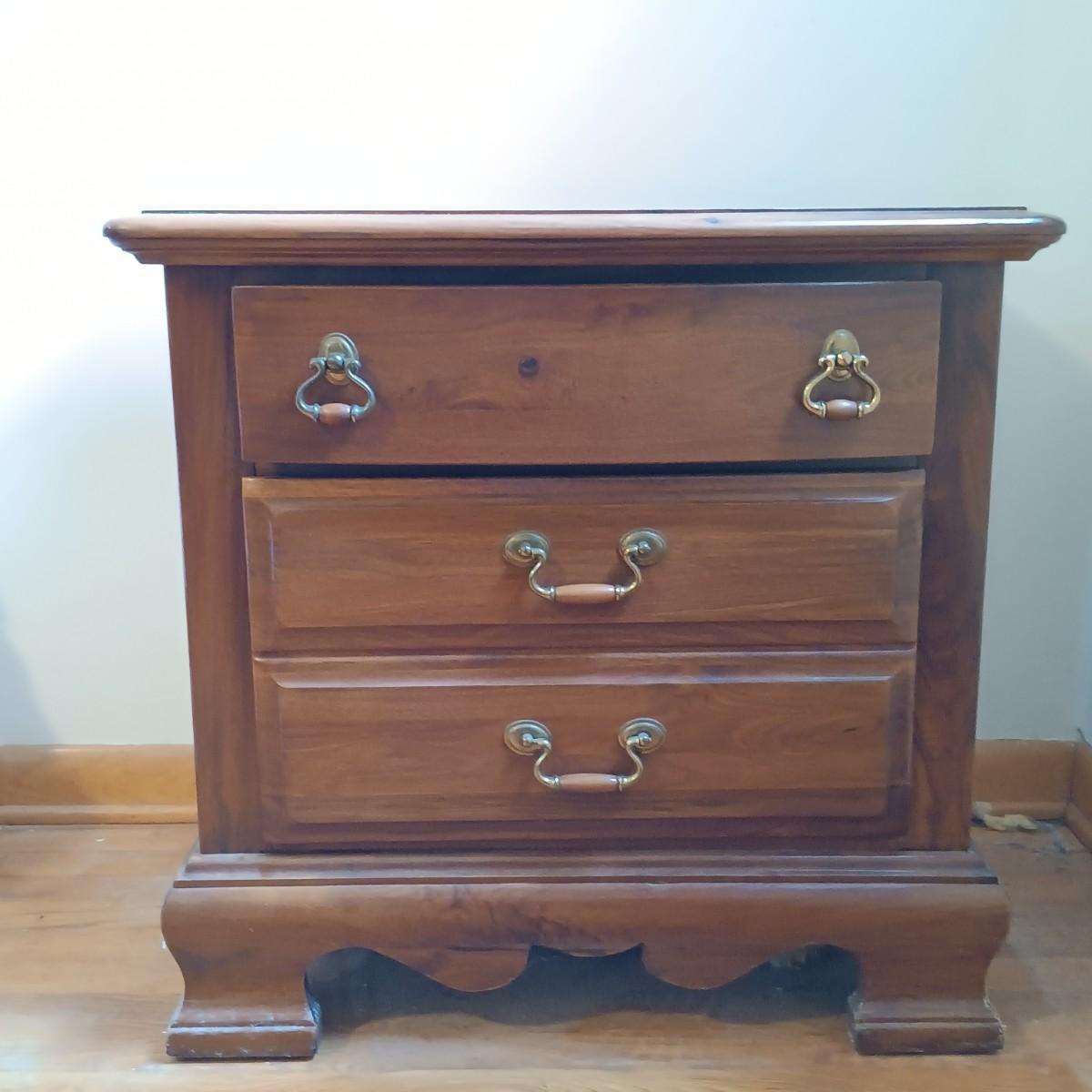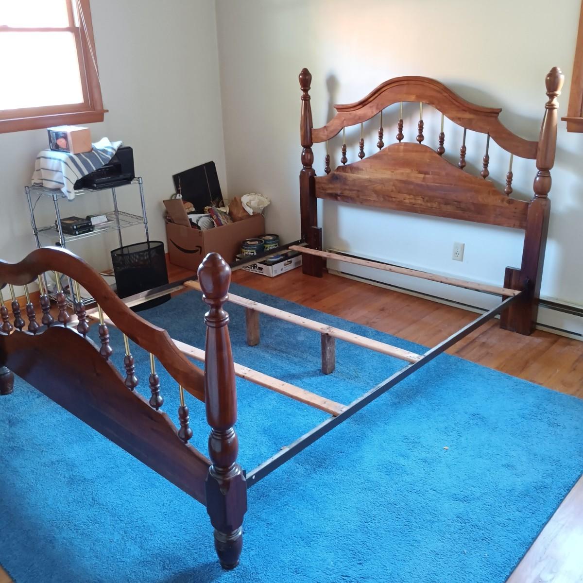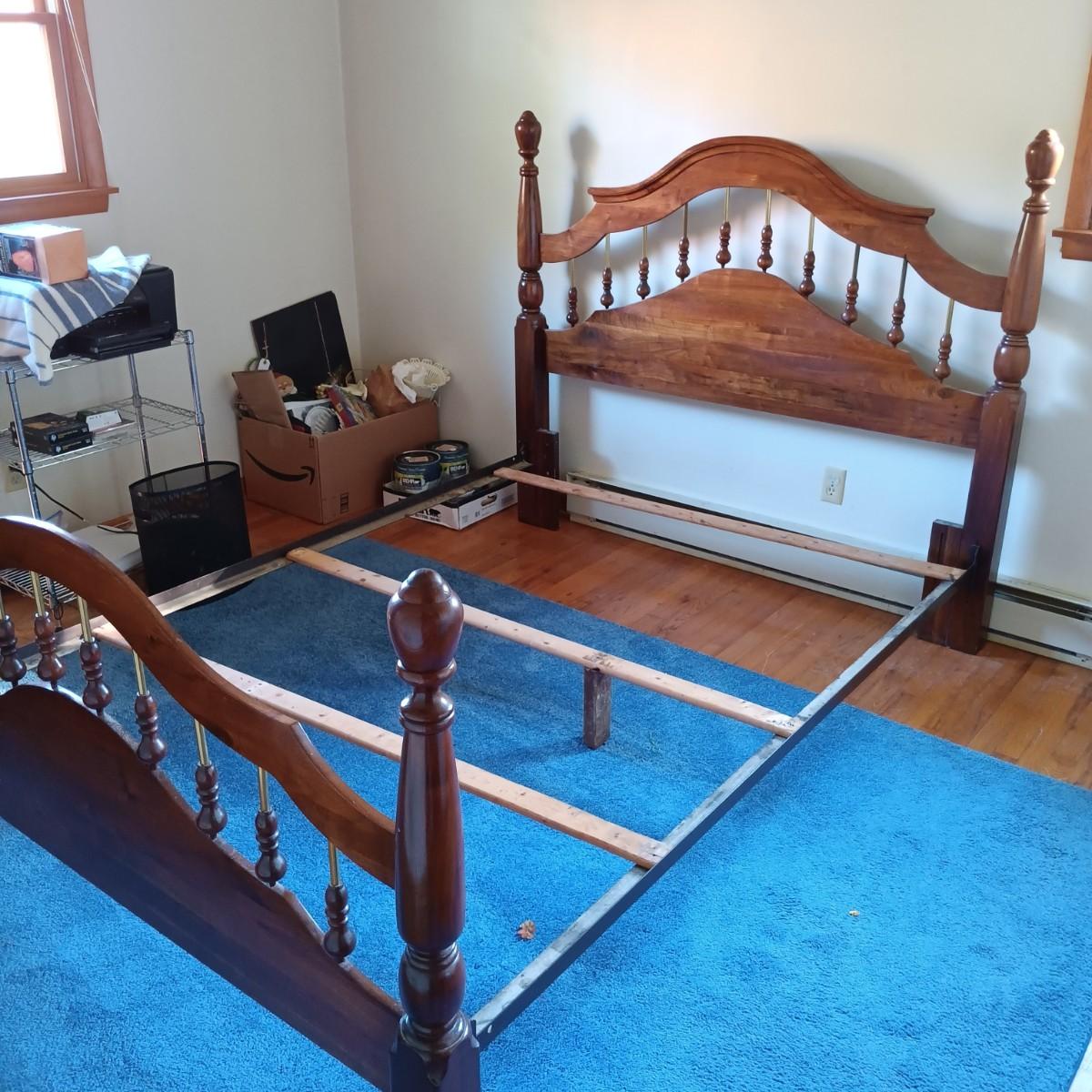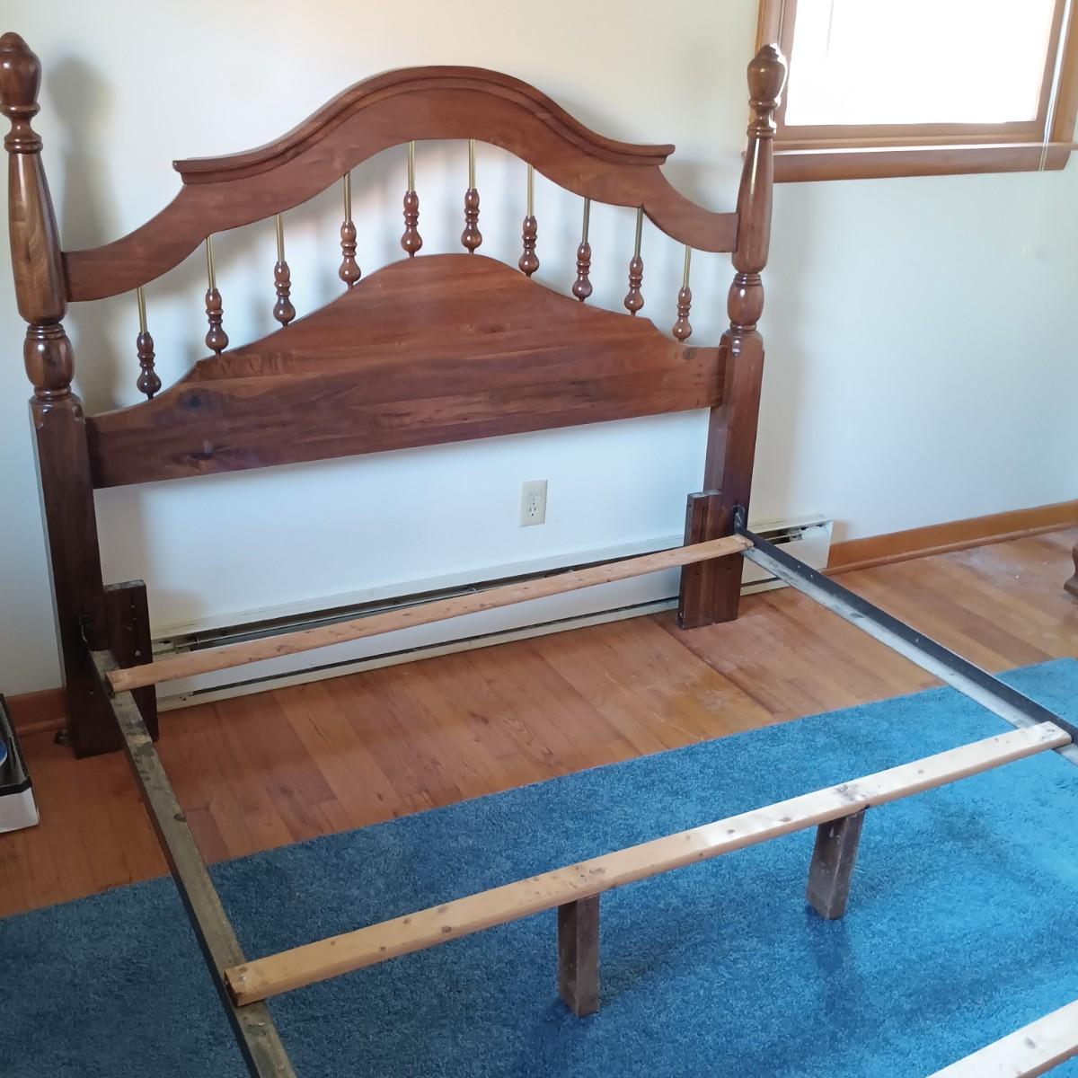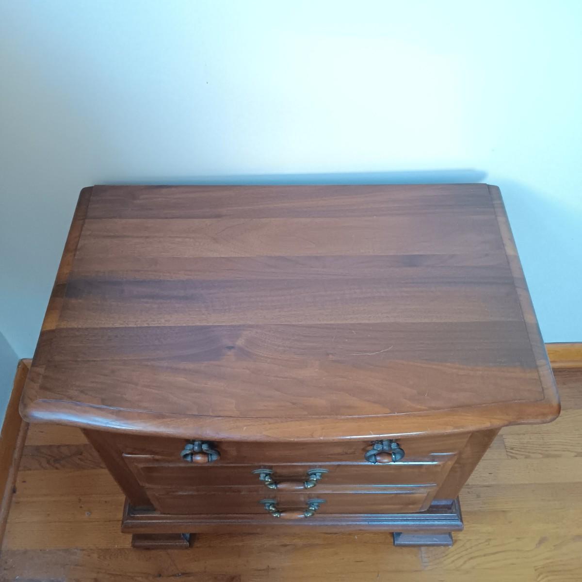 LOT 300: Harrison Solid Walnut Nightstands with Brass and Wood Fixture Solid Wood Bed Frame