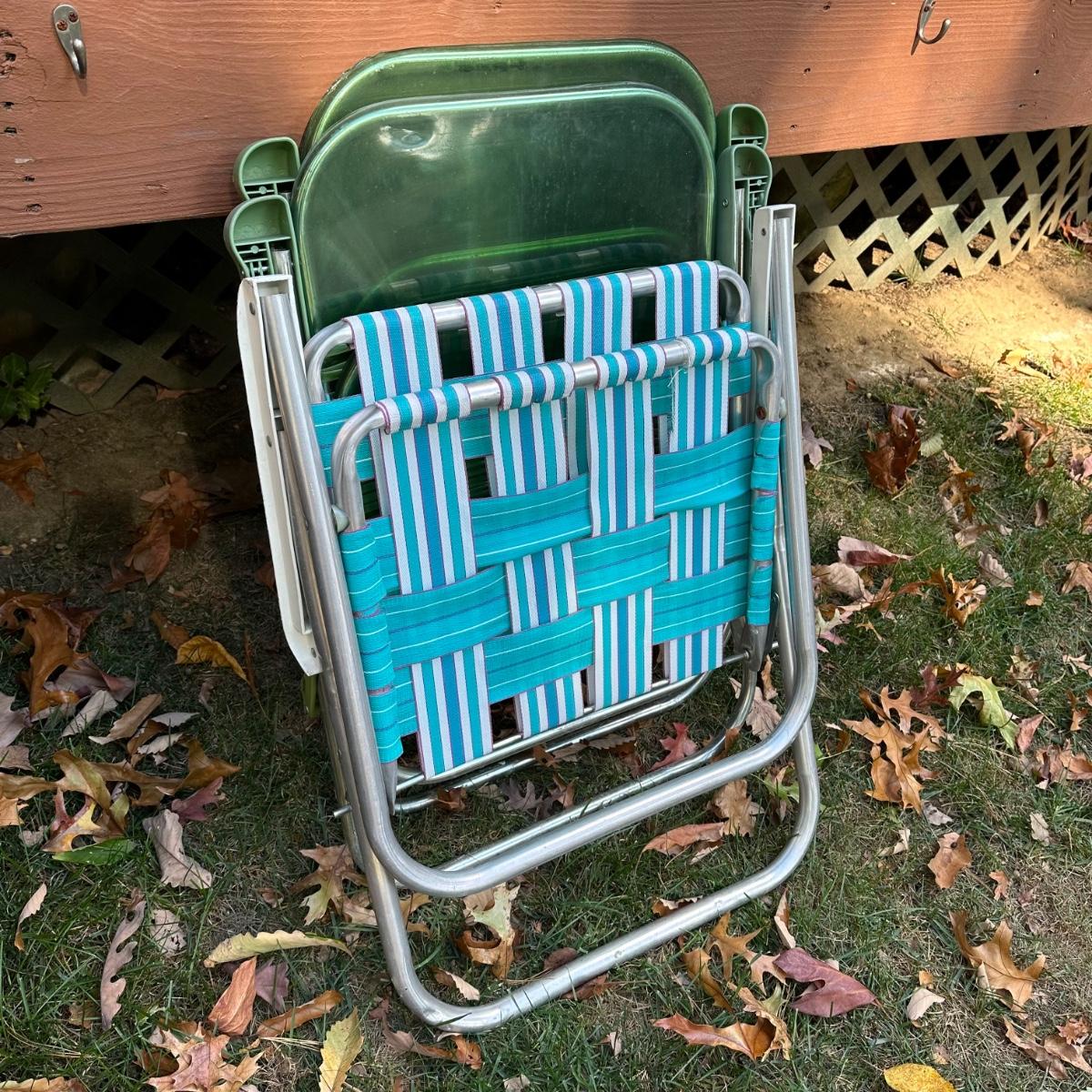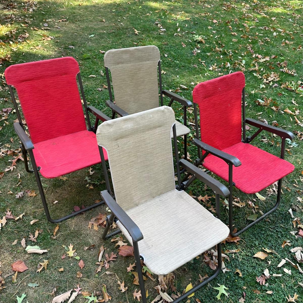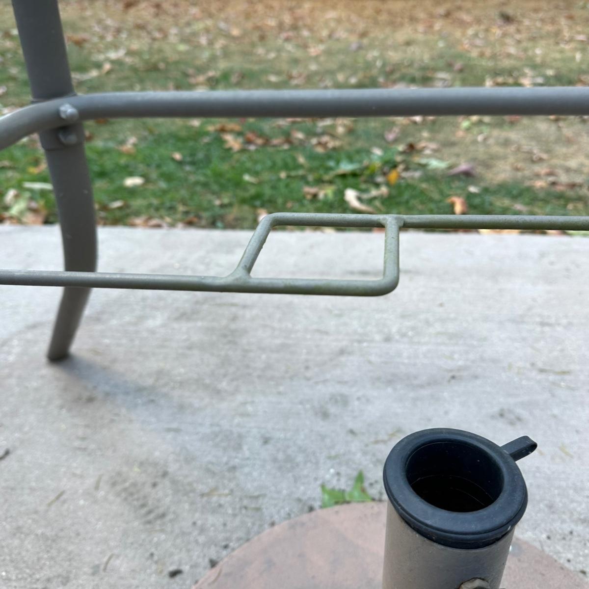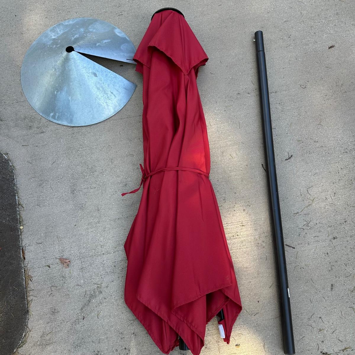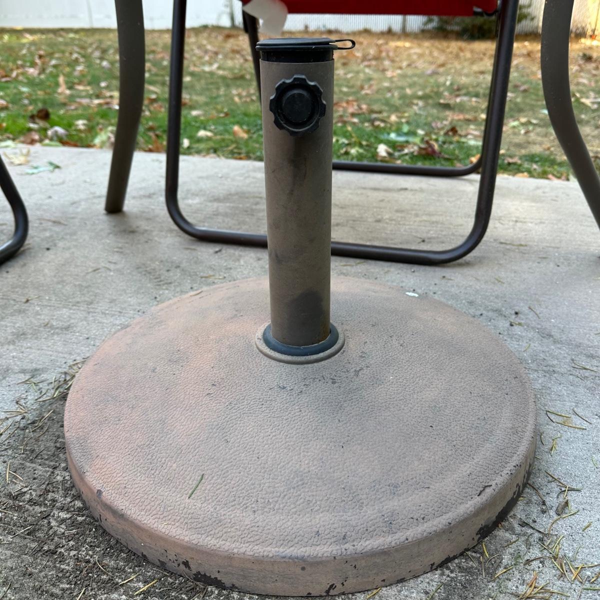 LOT 7S: Outdoor Patio Table w/ Umbrella & Folding Chairs/Beach Chairs