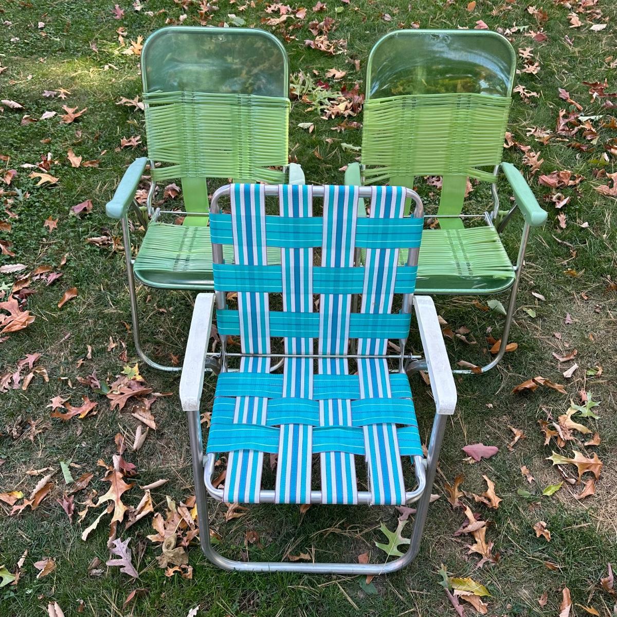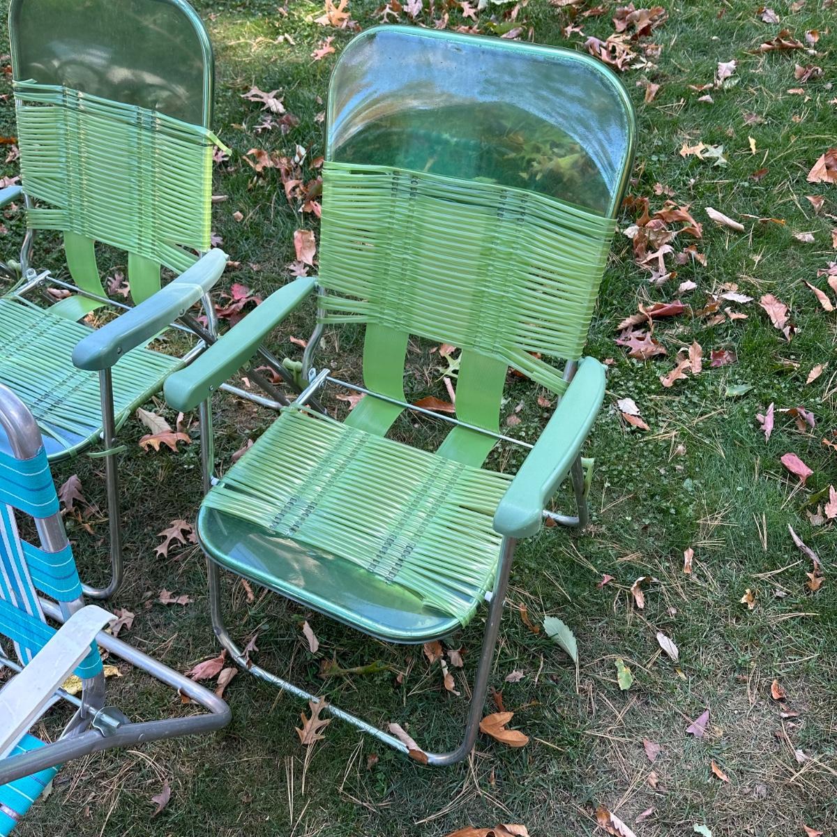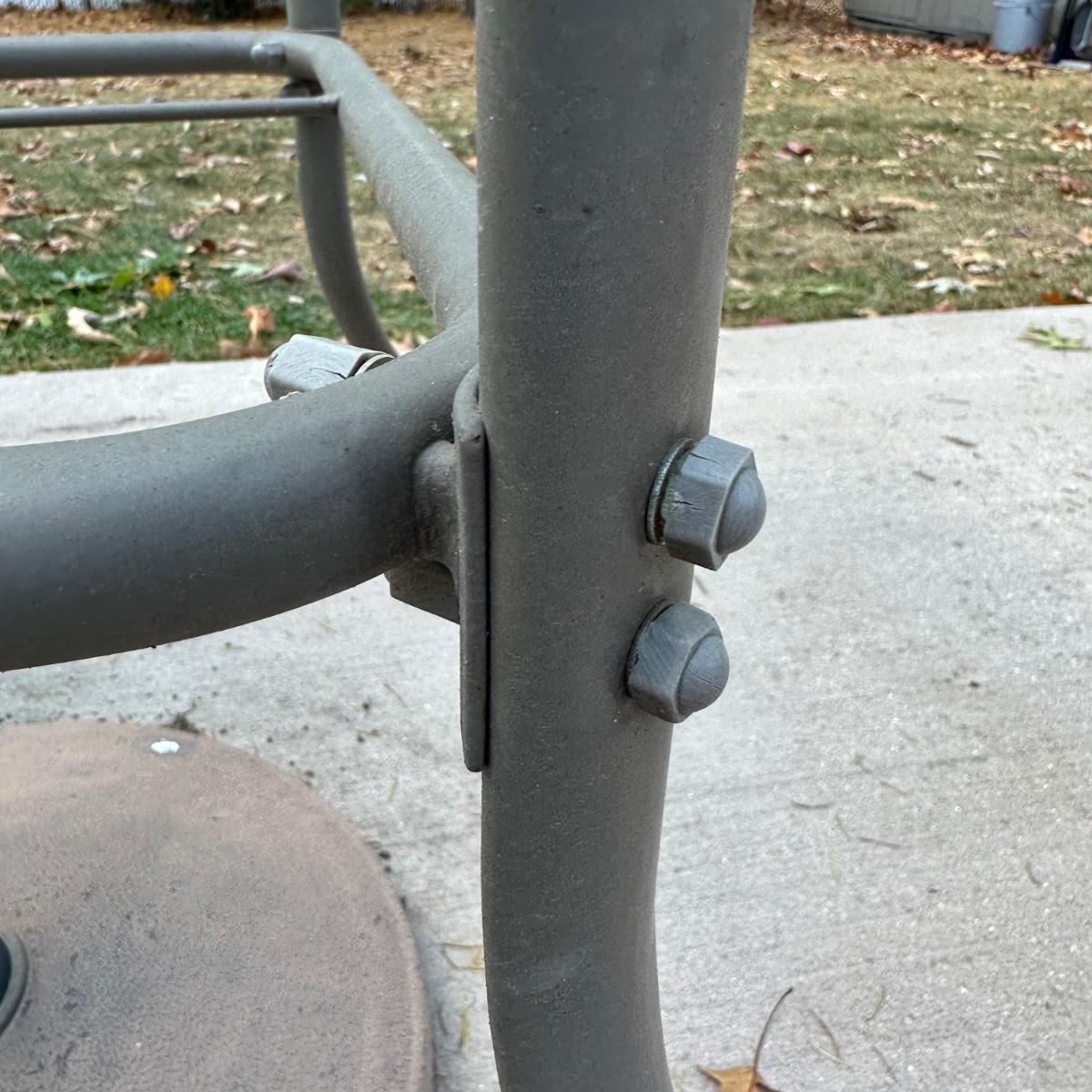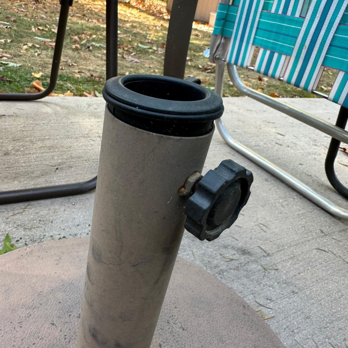 LOT 7S: Outdoor Patio Table w/ Umbrella & Folding Chairs/Beach Chairs