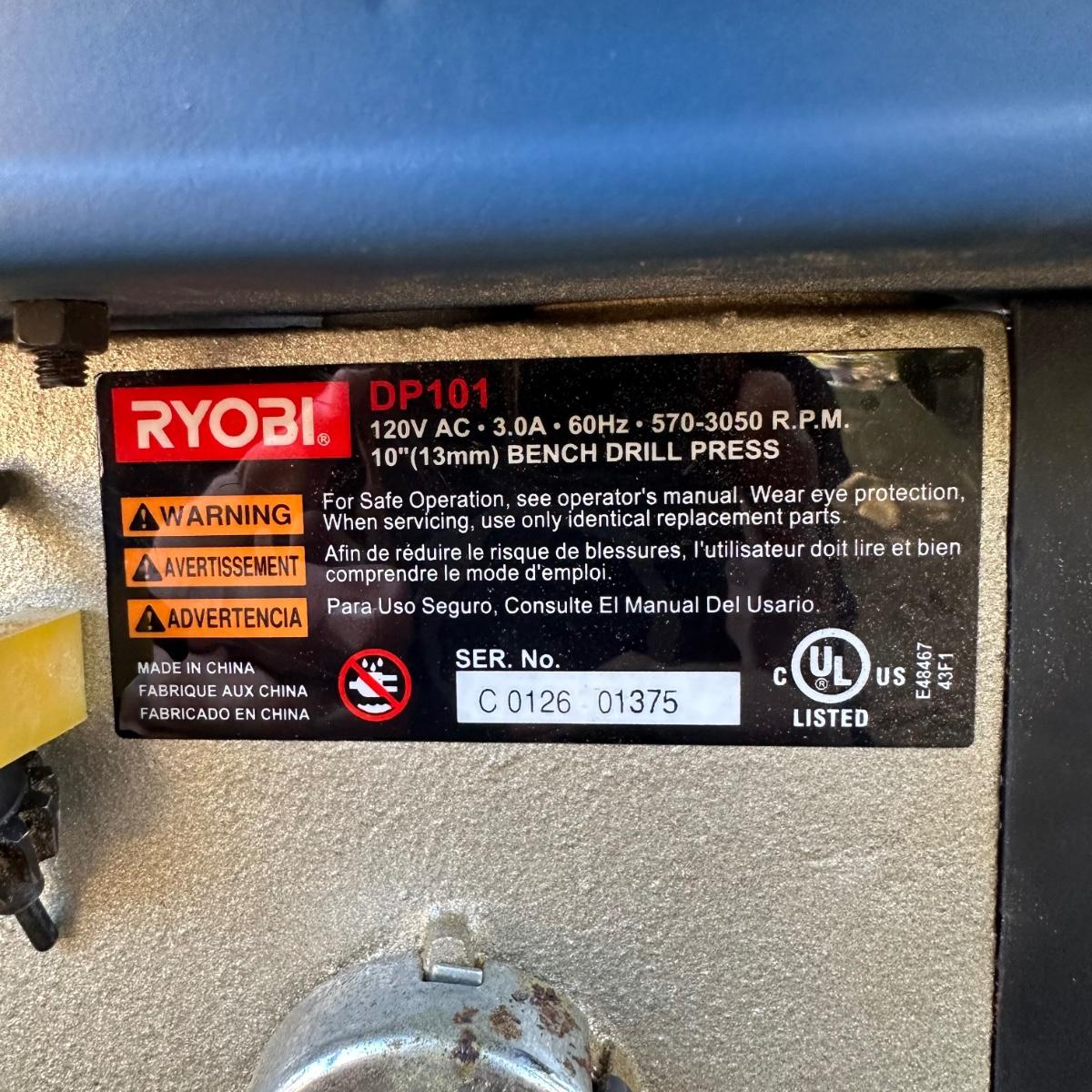 LOT 10S: Ryobi 10” Drill Press DP101