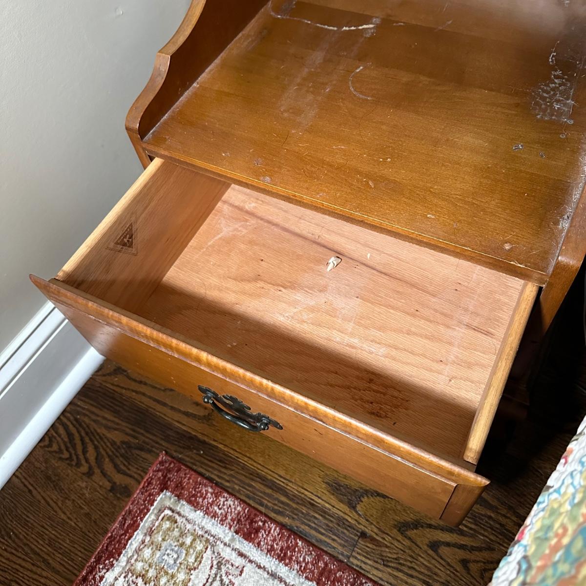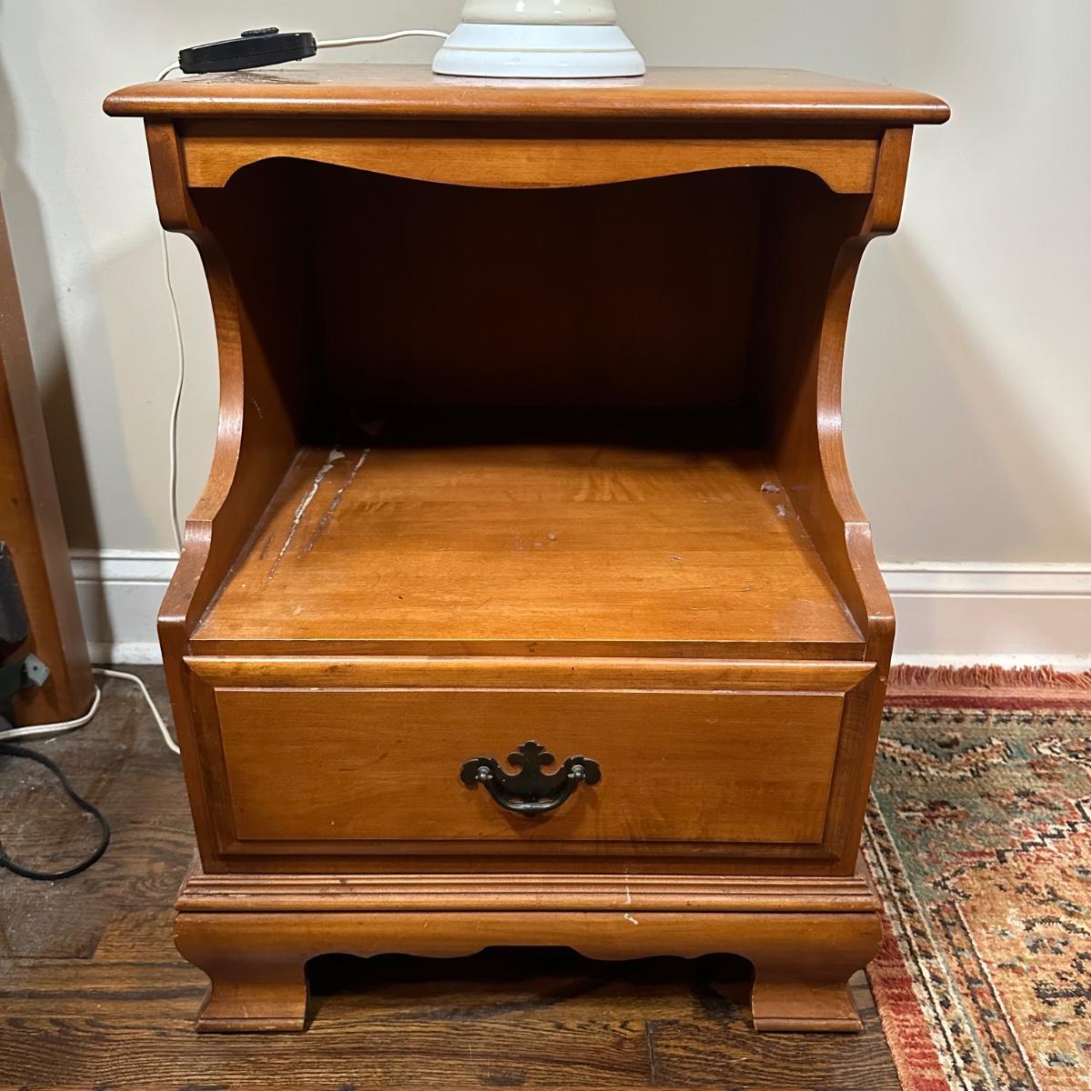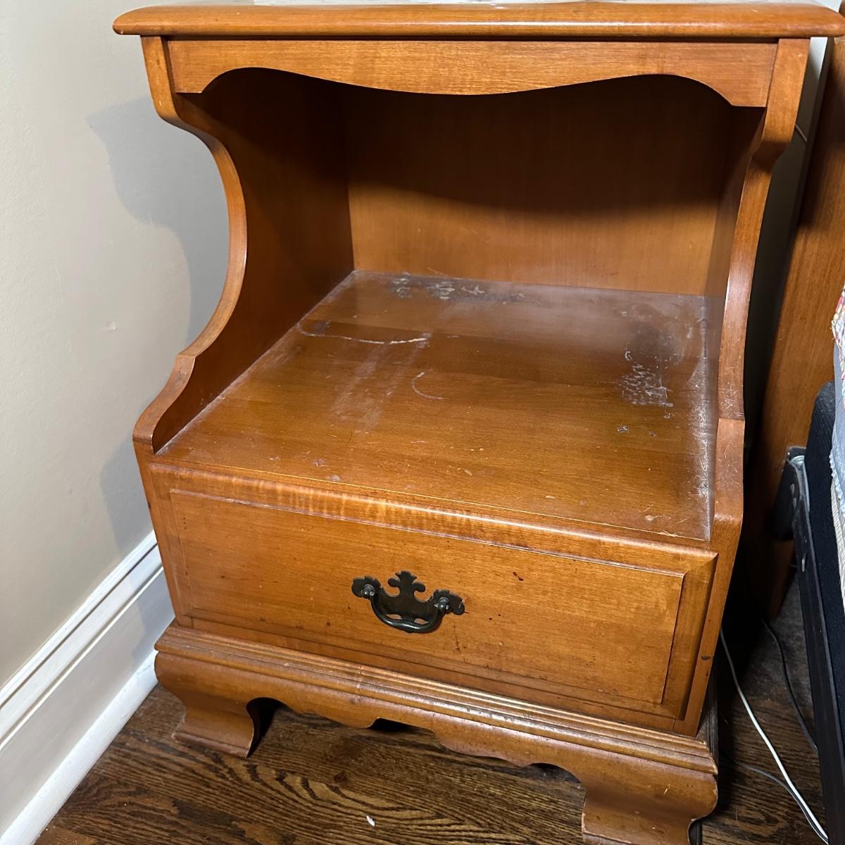 Side tables are 20x20x26, bed frame is 80x82x37 - Please see all pictures as they are the best representation of the items. The pictures show condition, measurements if taken, and what is included in the lot. Due to the large amount that we photograph and the time frame, we are not always able to take measurements. All items unless noted, are pre-owned and have been used. If you purchased furniture, you must bring help. We do not allow one person to carry large furniture out on their own. Bring help, tools and a truck for the safety of our client’s homes, and your personal safety. Any damages that result to the property including walls, and floors due to moving of the furniture will be charged to the buyer. Company policy. Thank you.