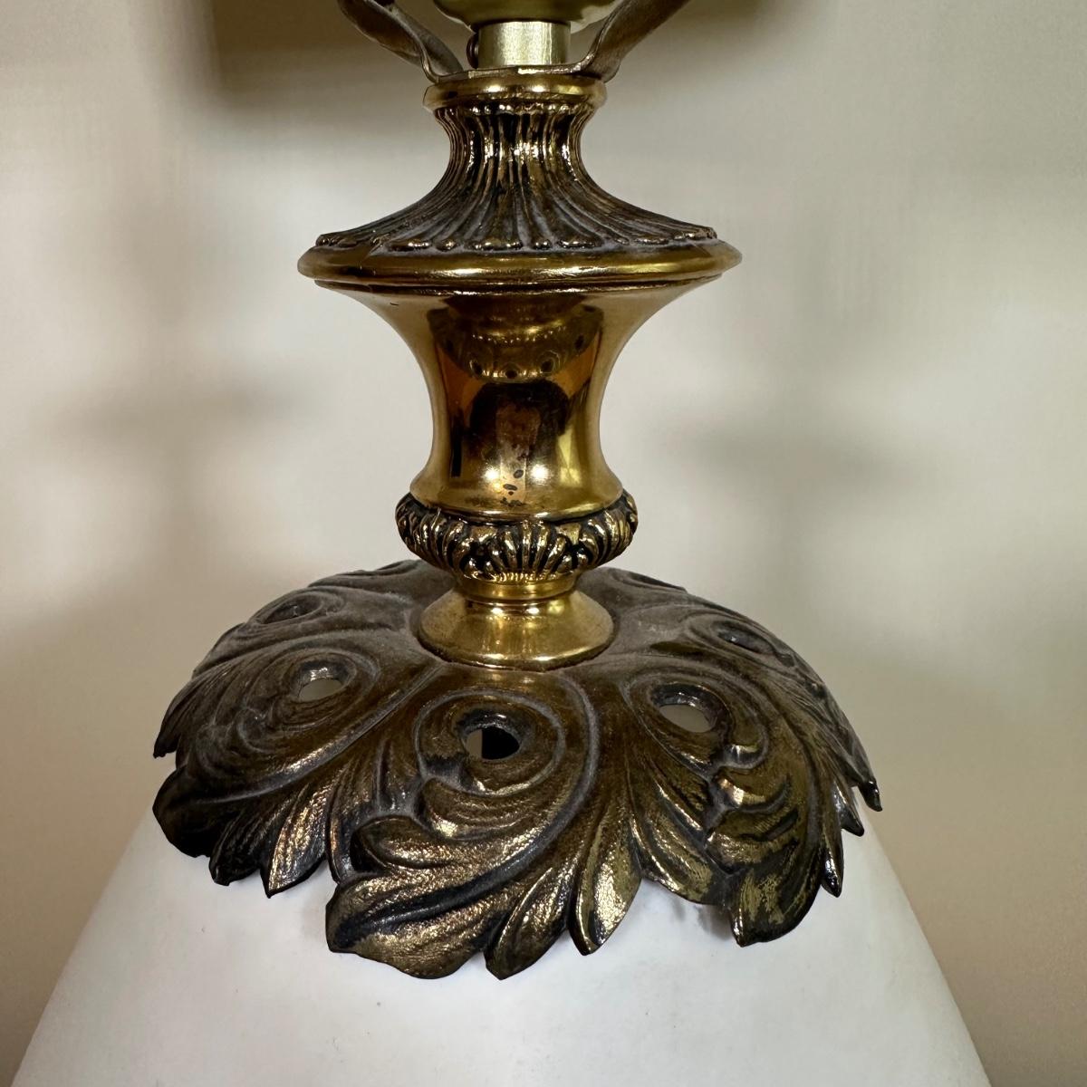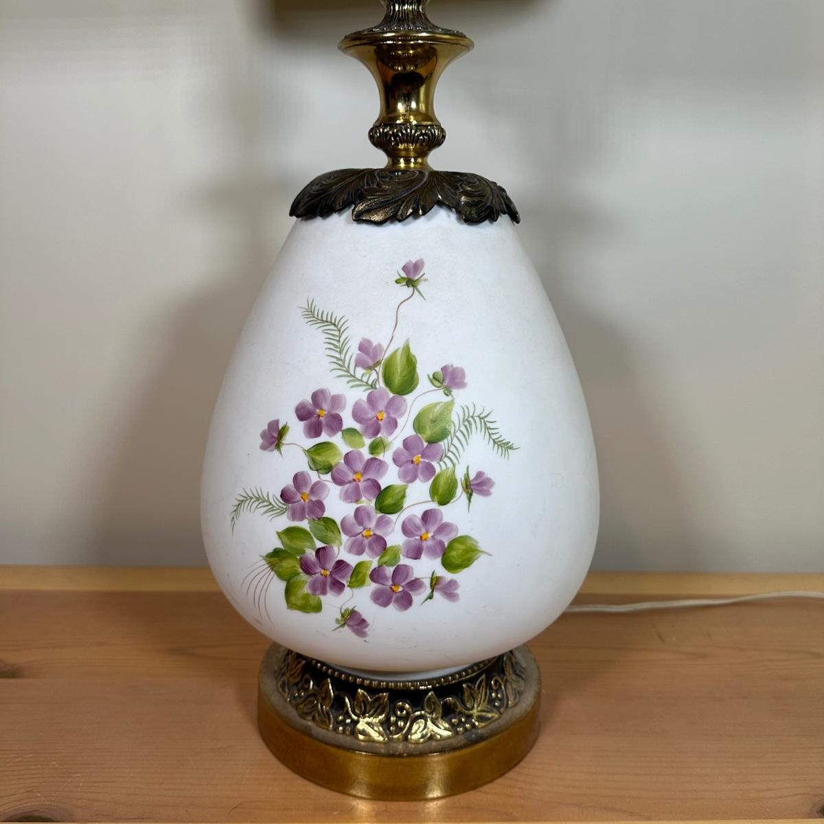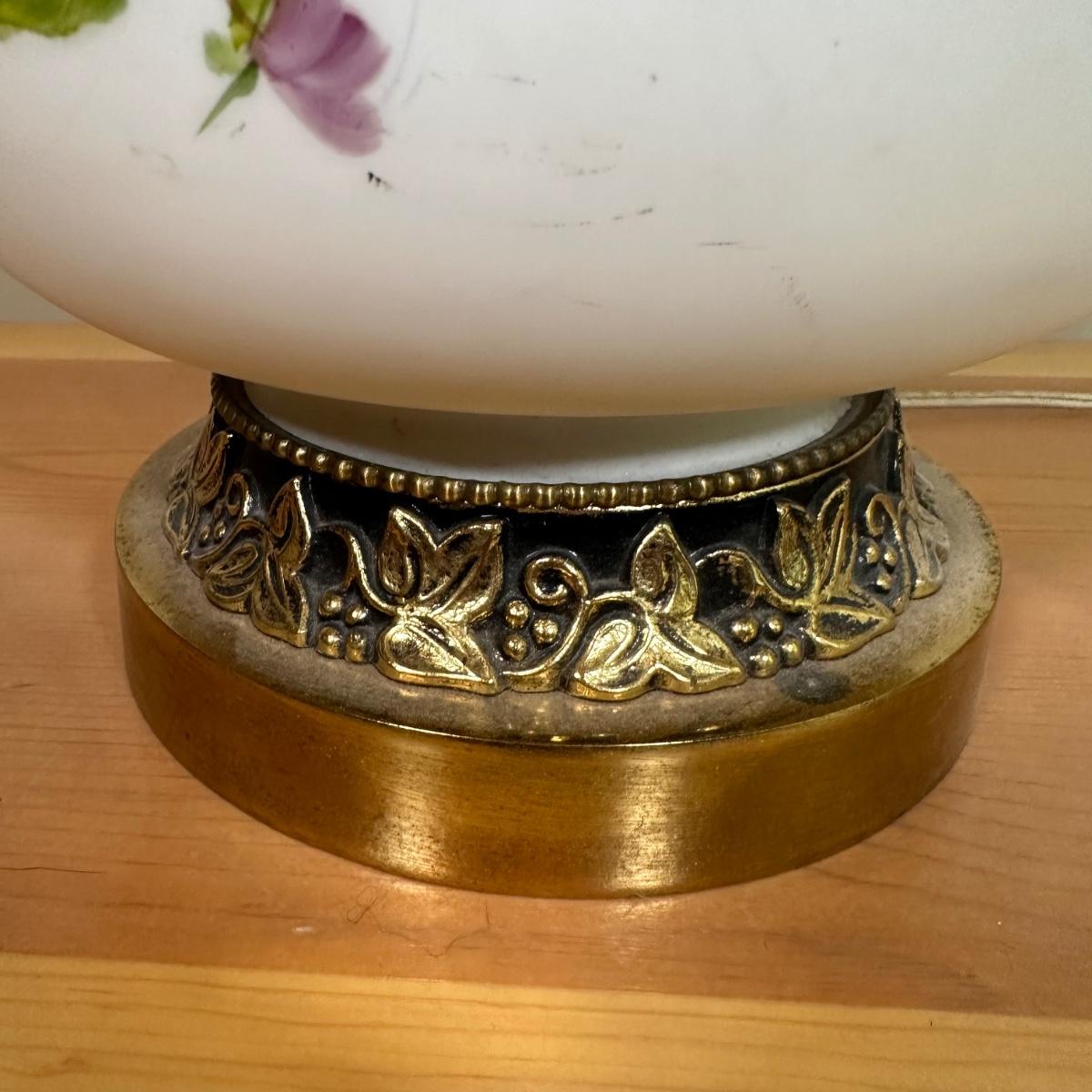 LOT 24Z: Vintage Hand Painted Glass & Brass Table Lamp