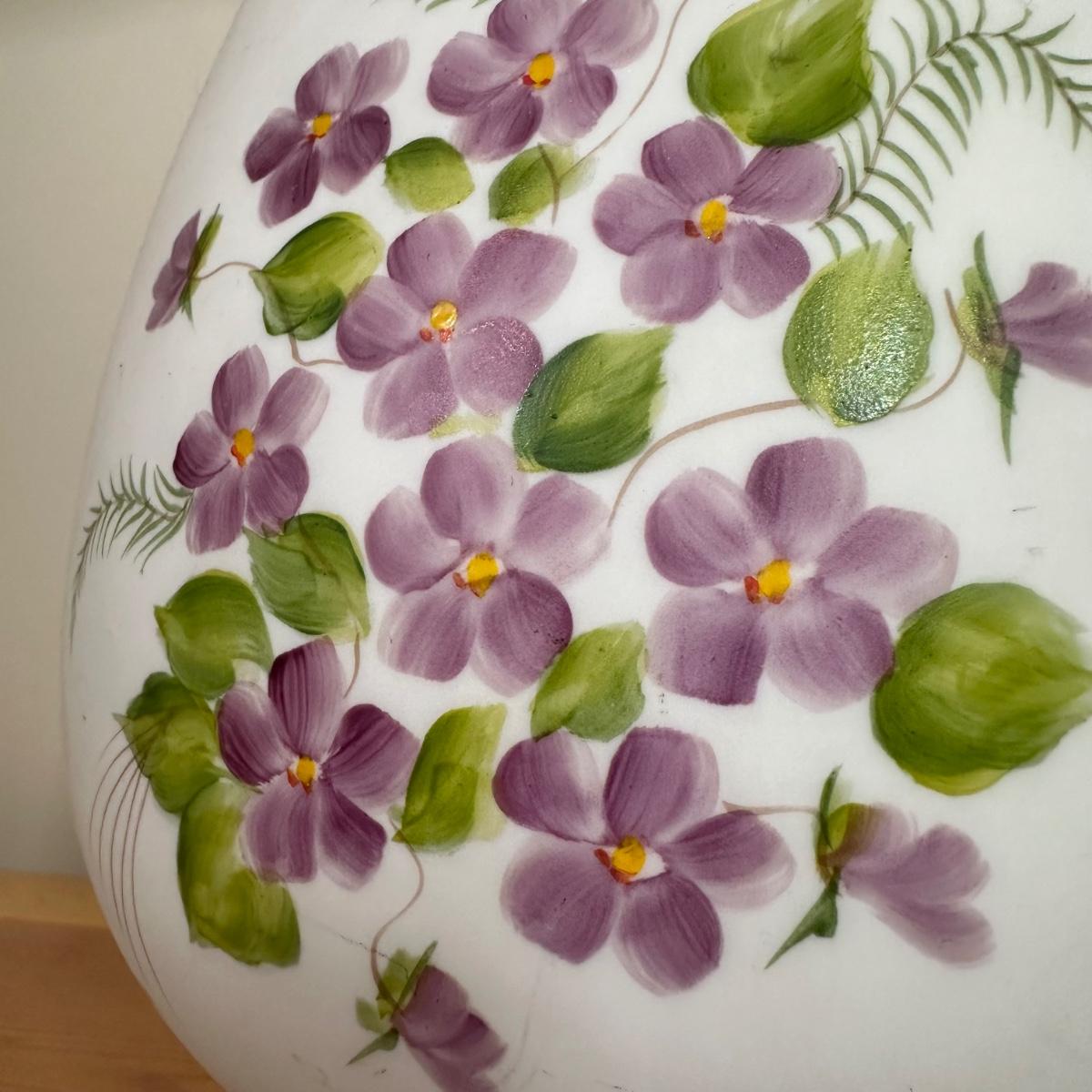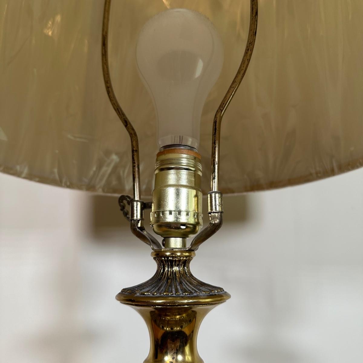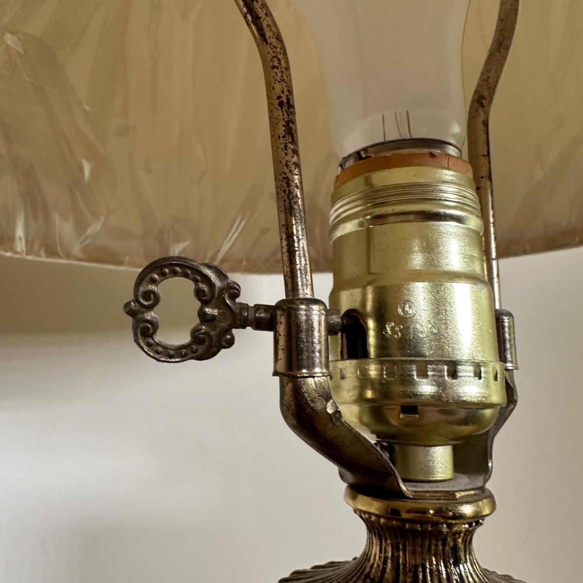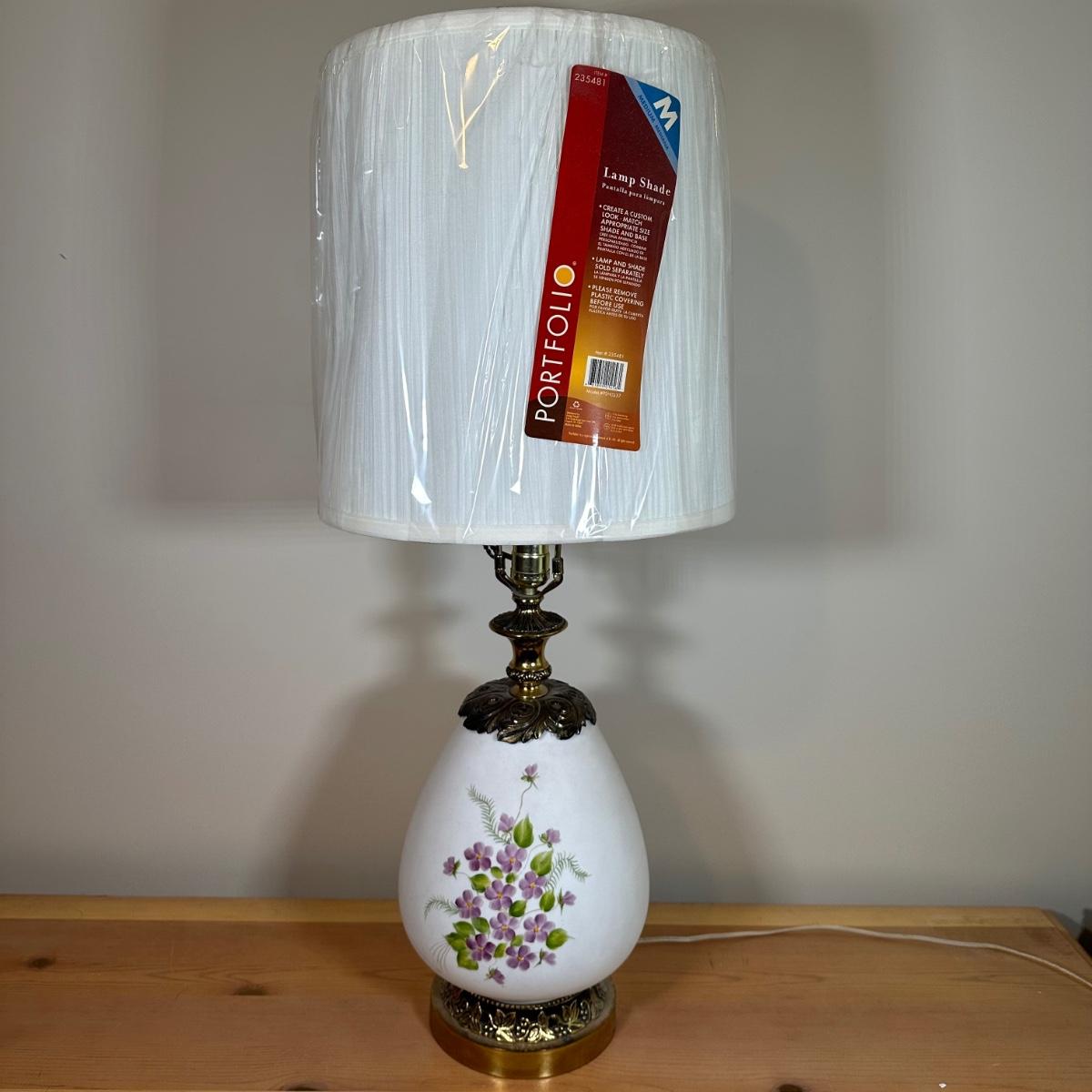 LOT 24Z: Vintage Hand Painted Glass & Brass Table Lamp