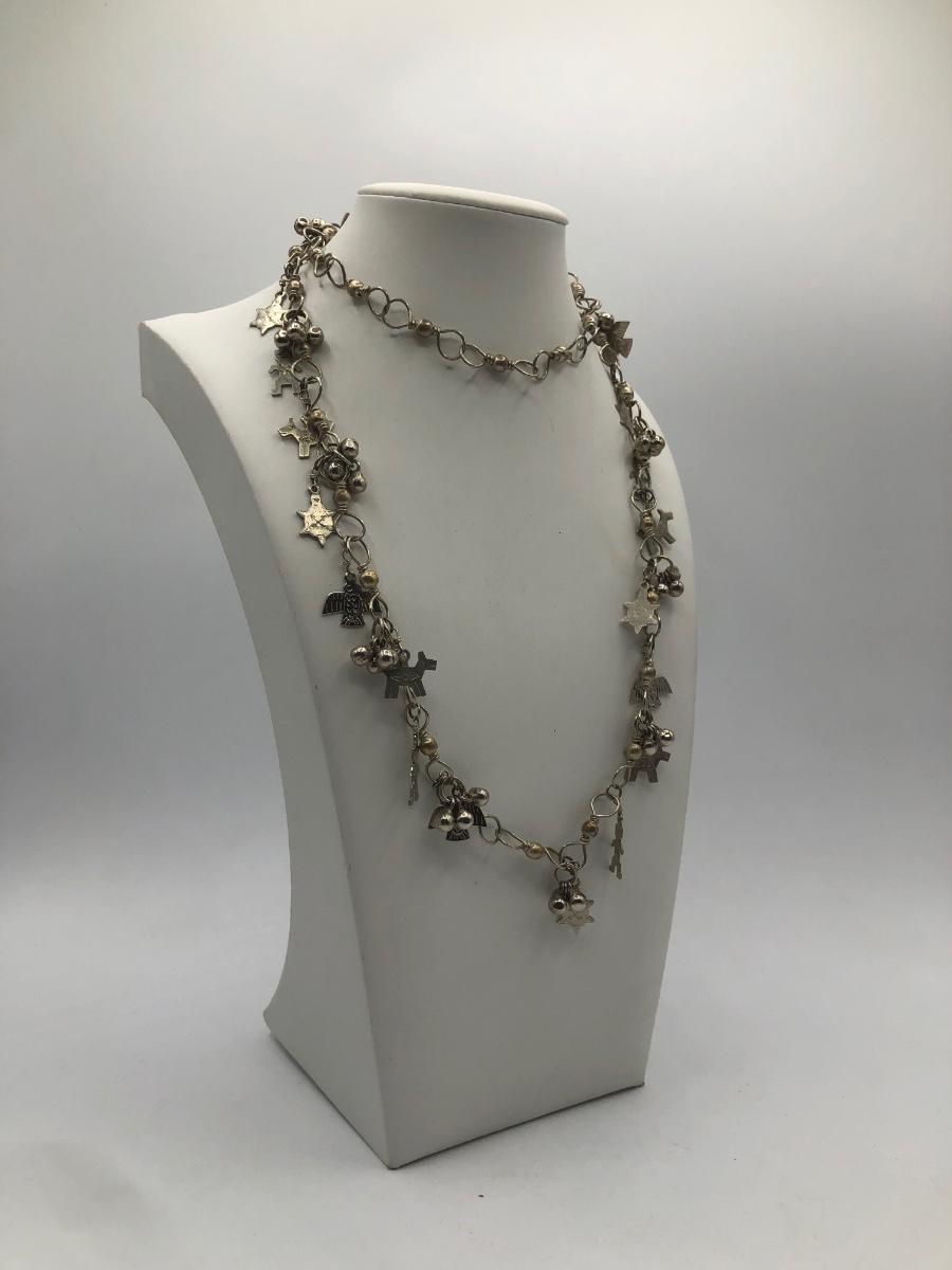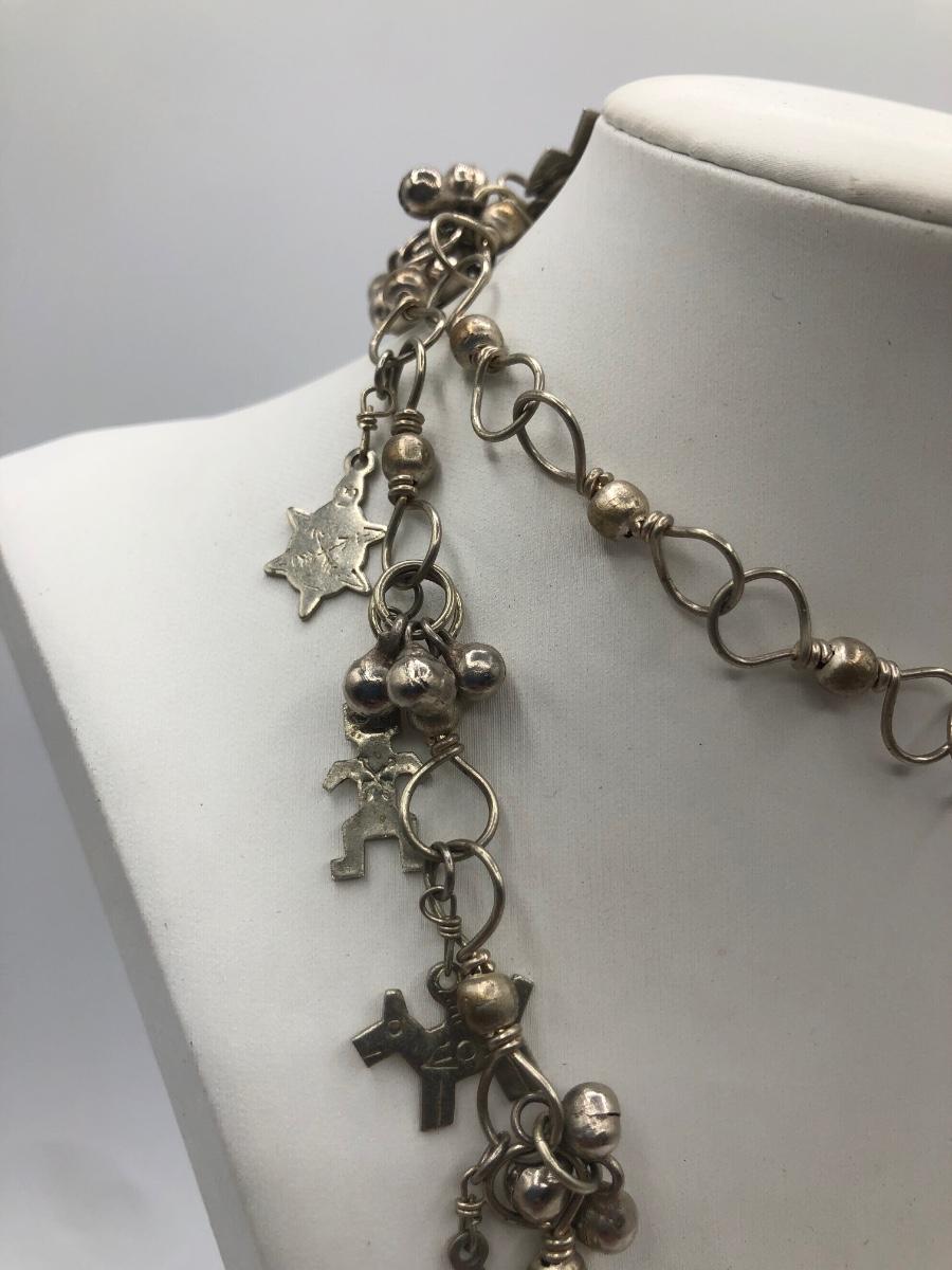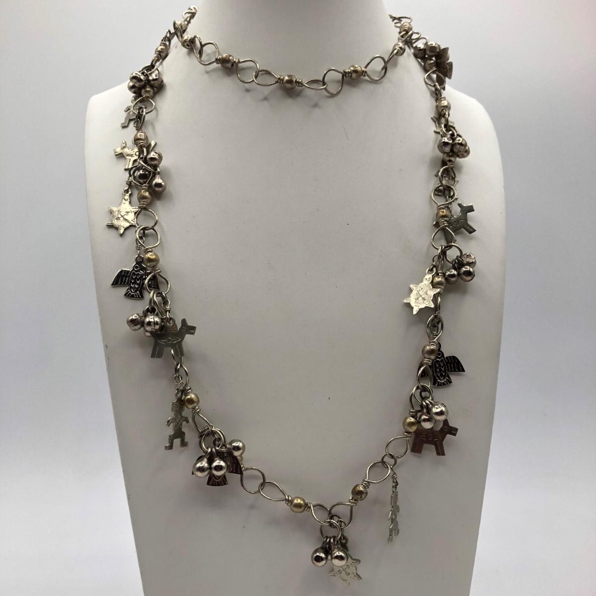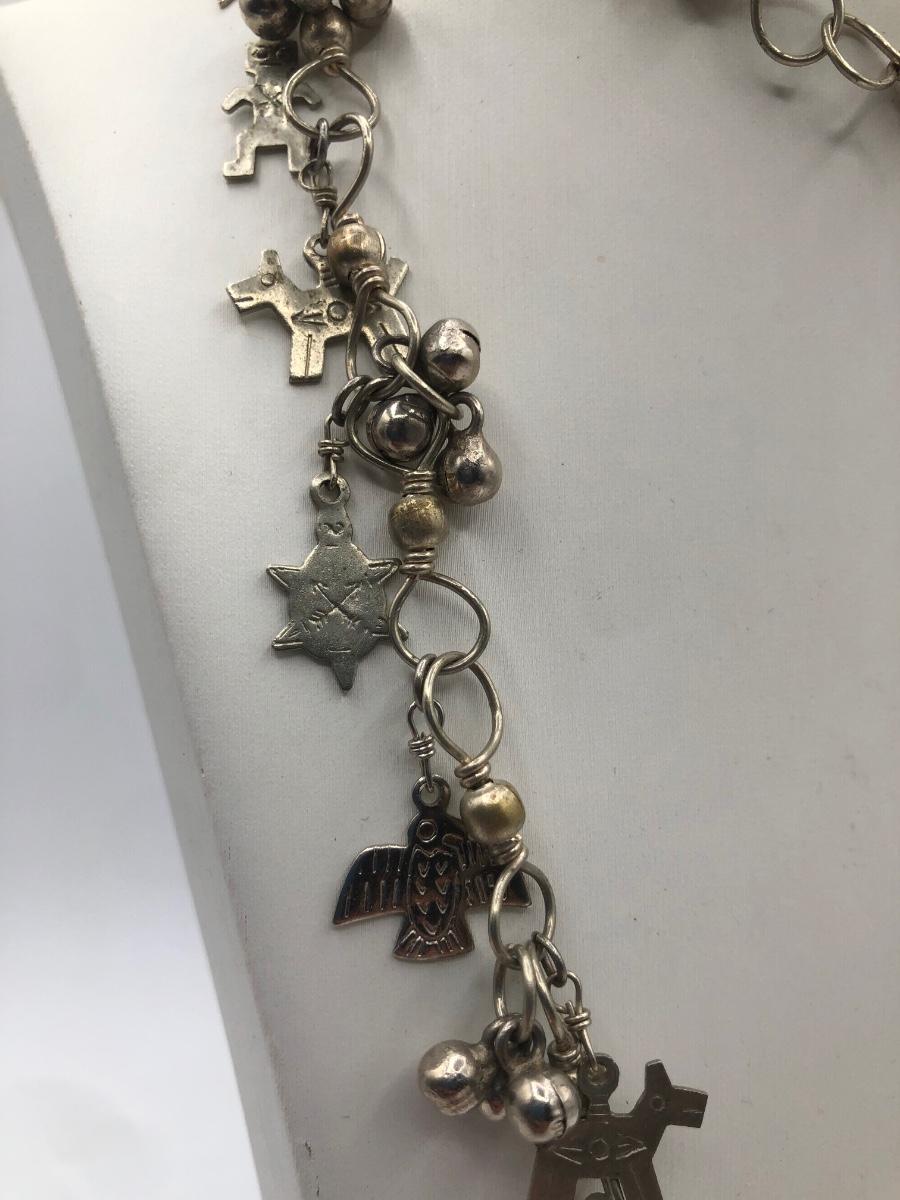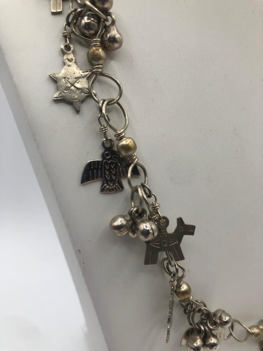 LOT 29J: Vintage Tribal Silver Bead 32" Necklace w/ Thunderbird, Turtle, Deer & Totem Charms