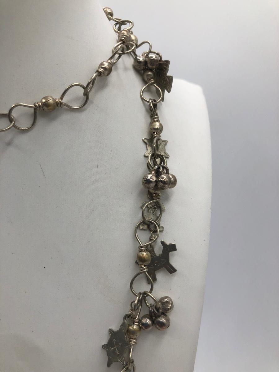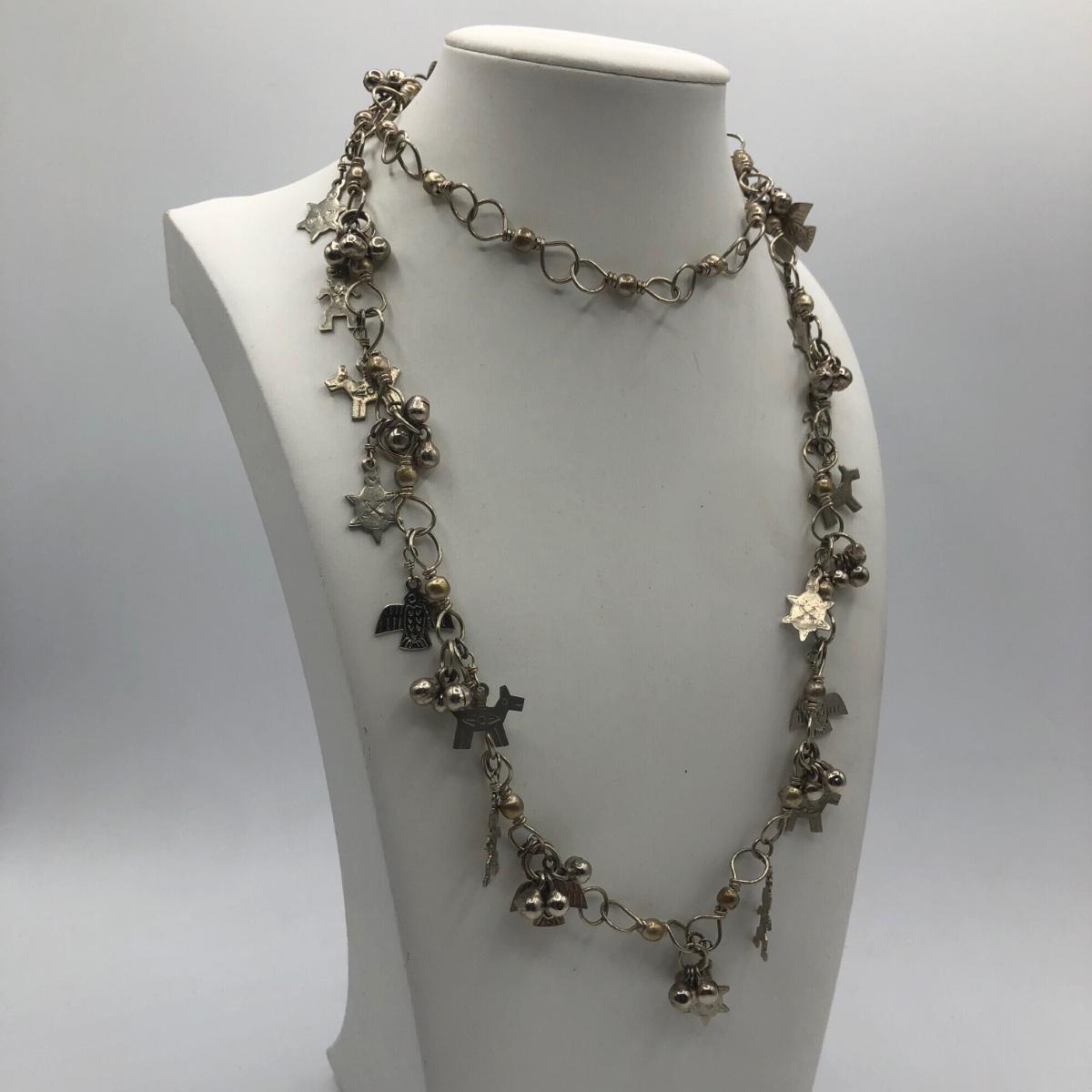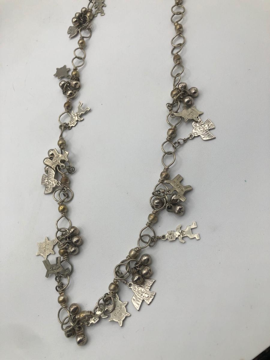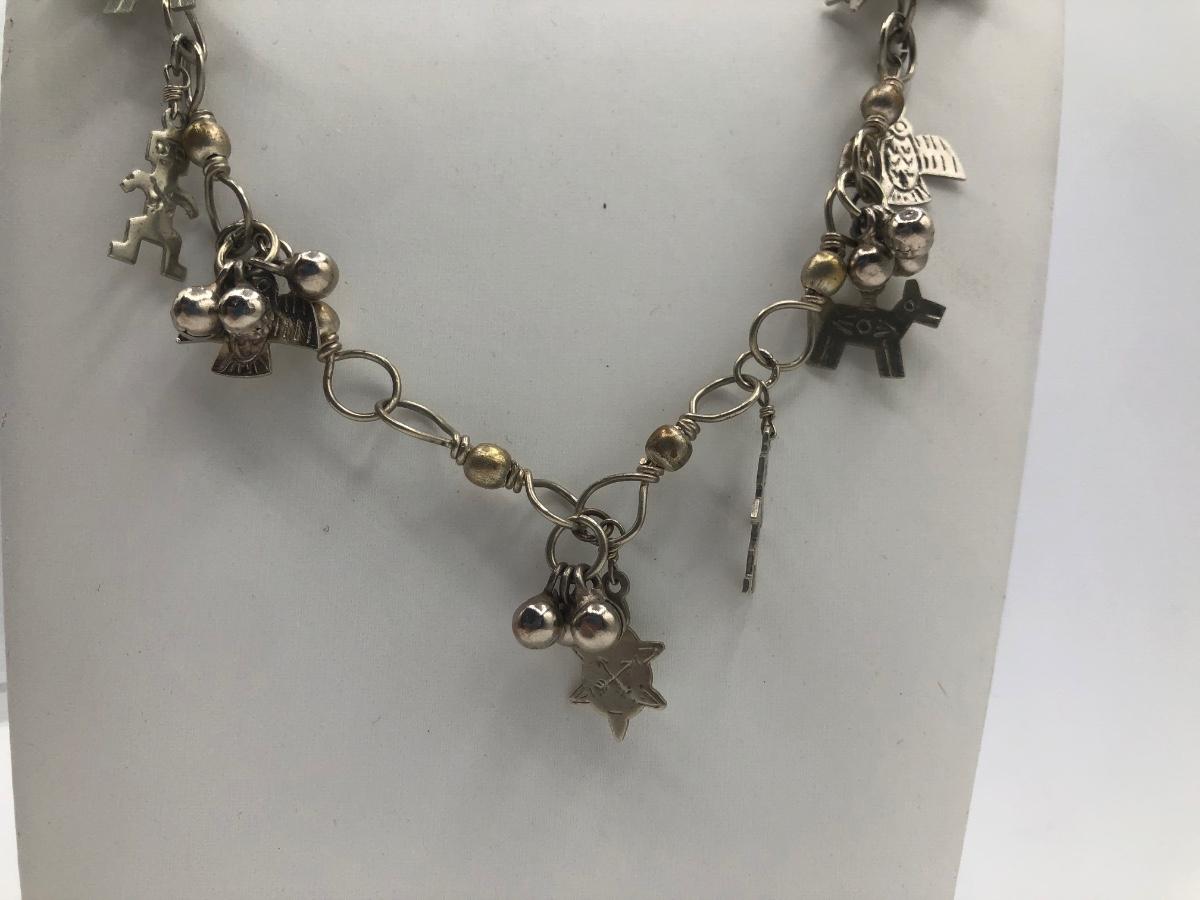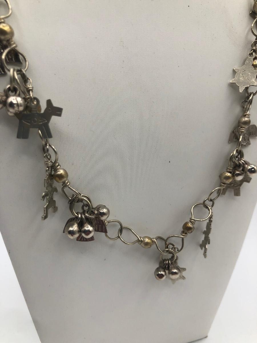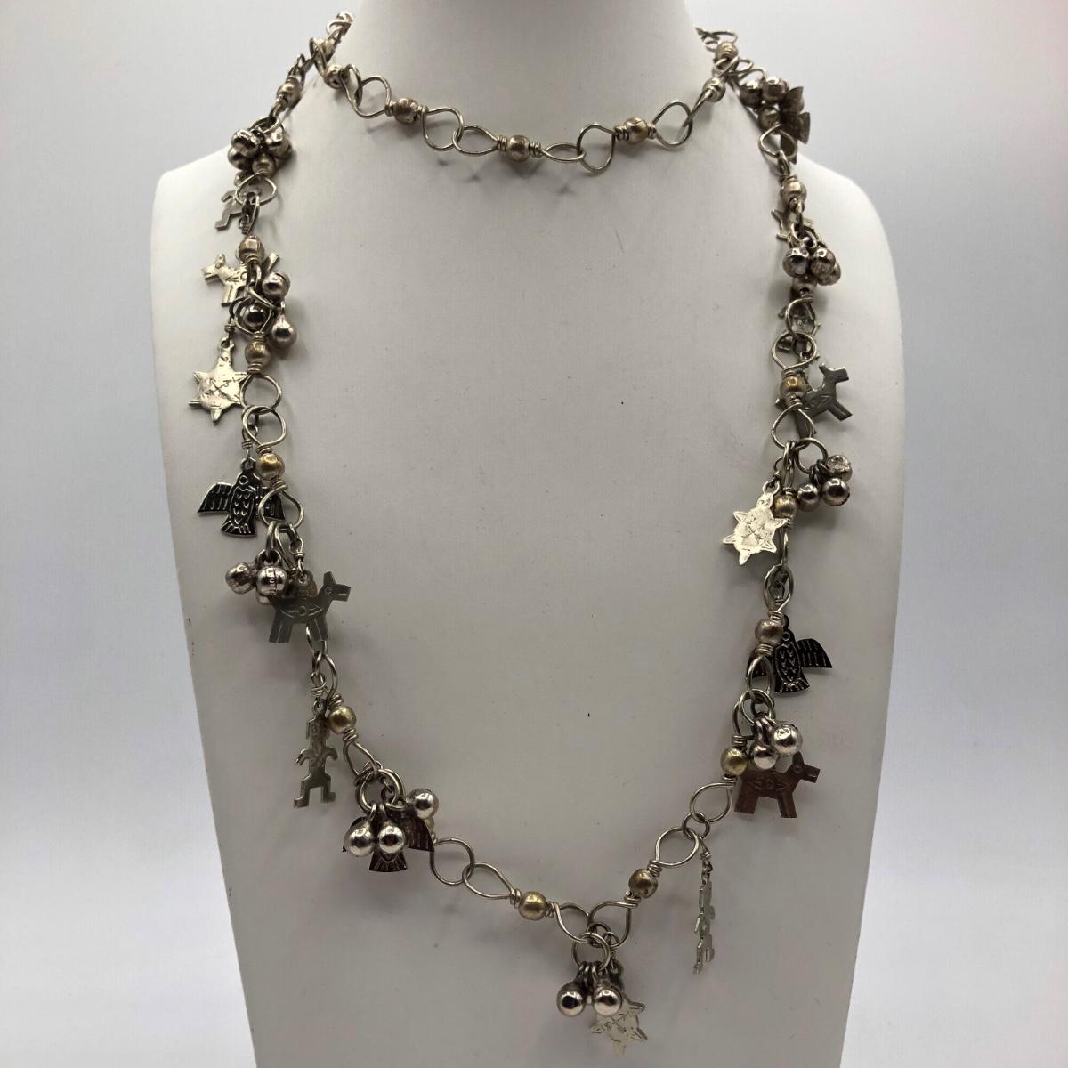 LOT 29J: Vintage Tribal Silver Bead 32" Necklace w/ Thunderbird, Turtle, Deer & Totem Charms