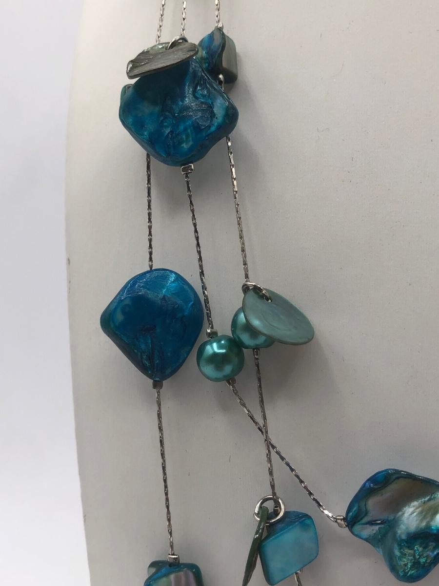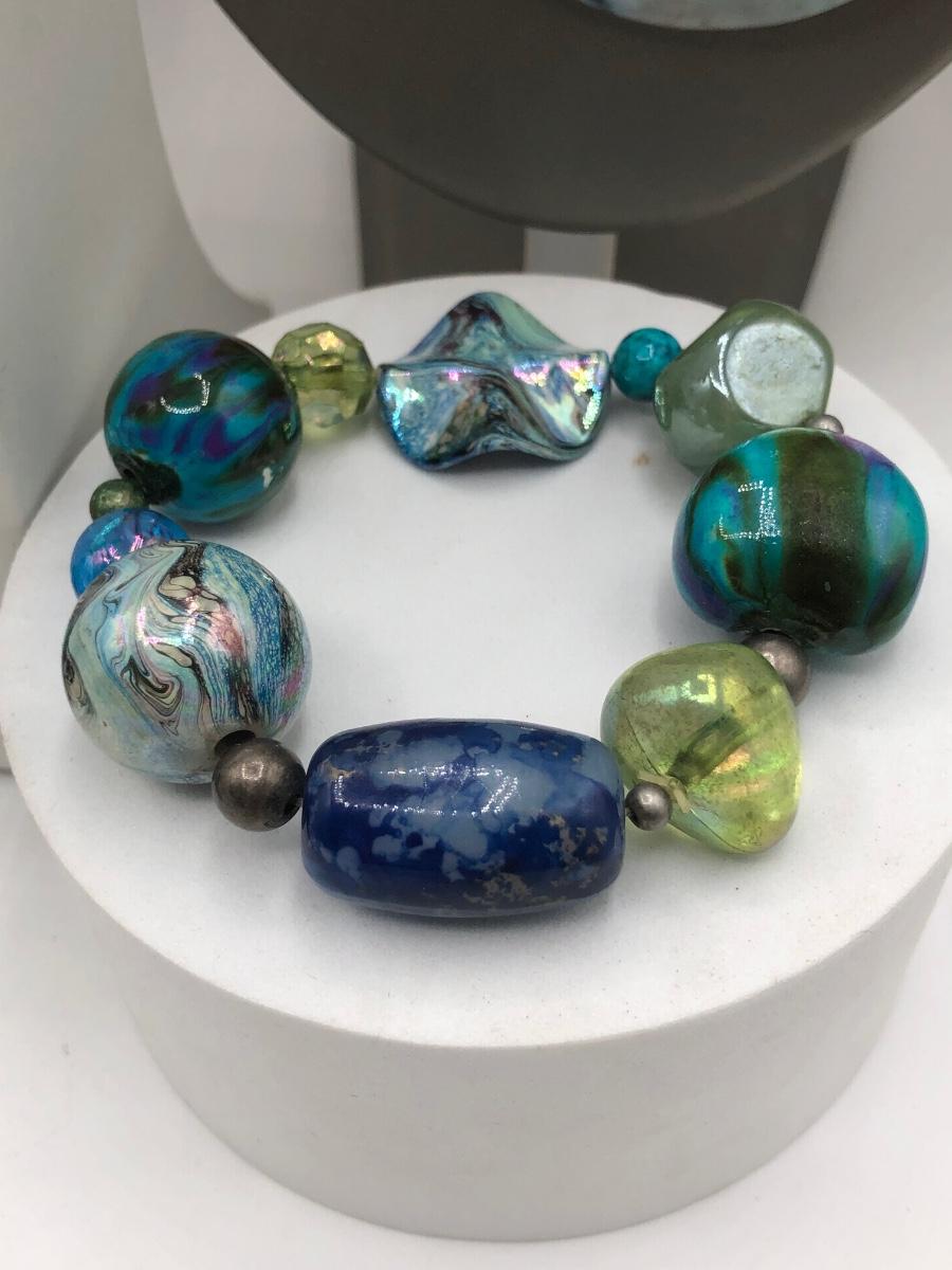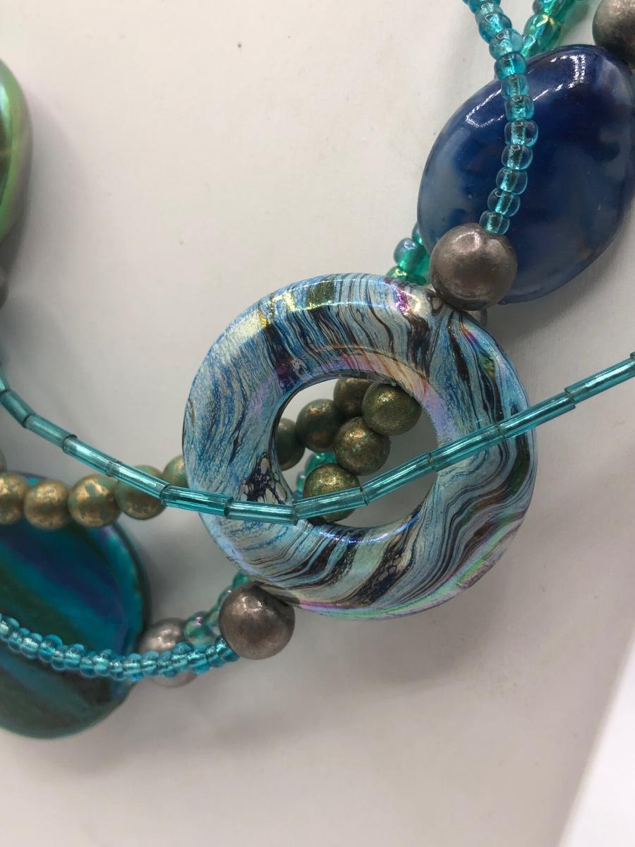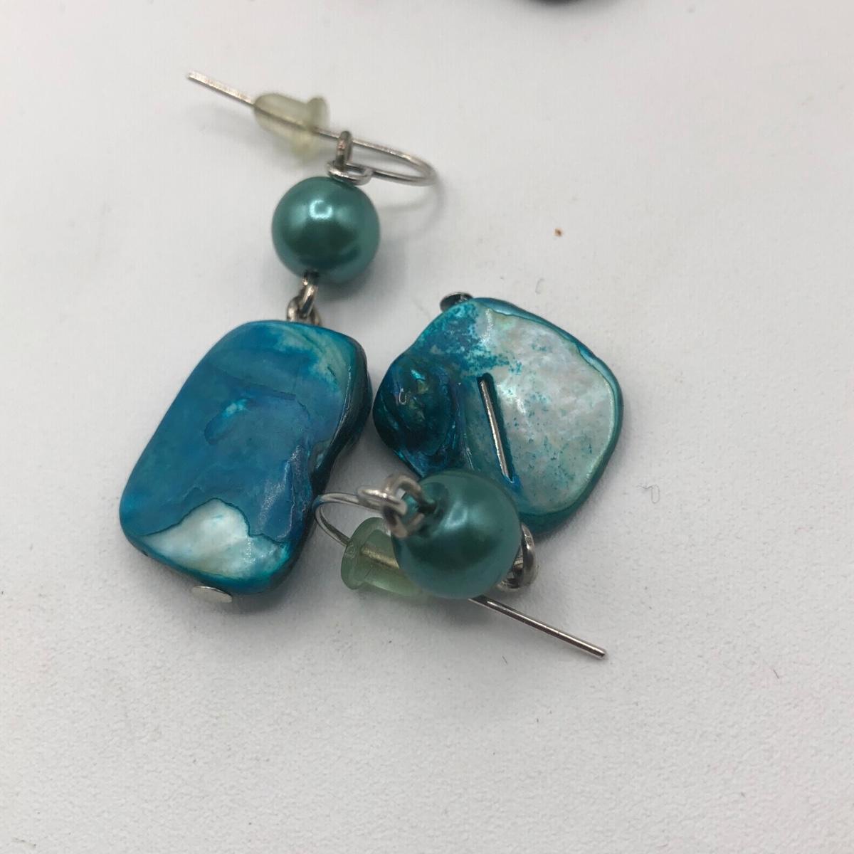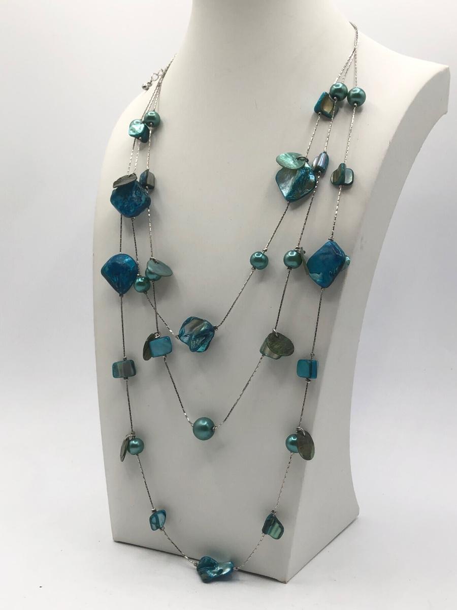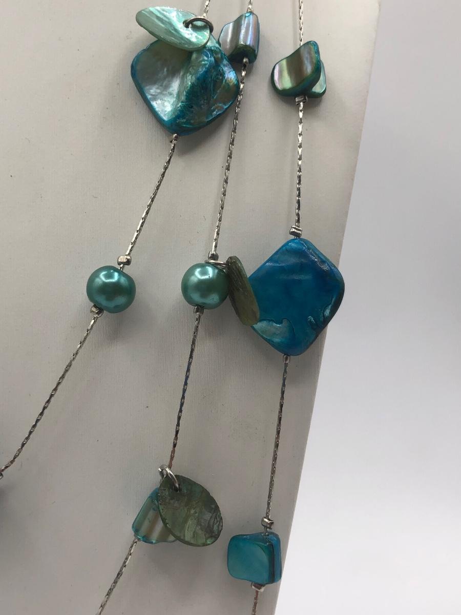LOT 31J: Beautiful Blue and Green Bead Necklaces w/ Matching Earrings & Stretch Bracelet