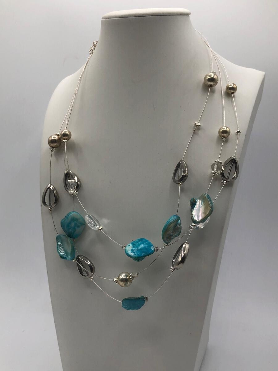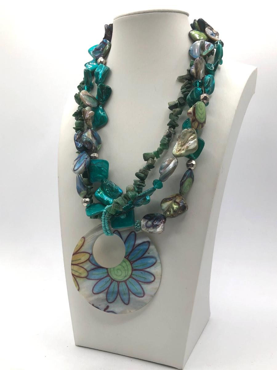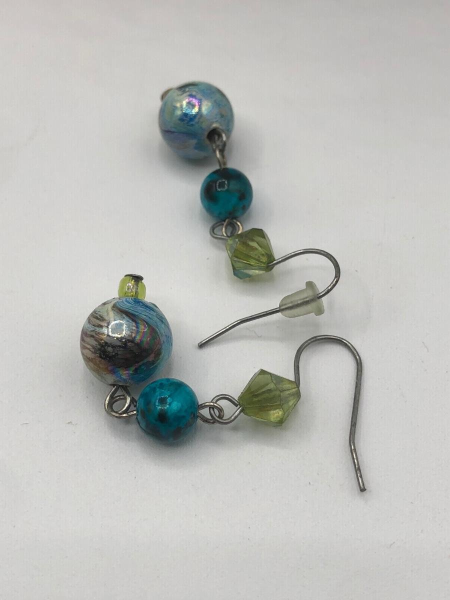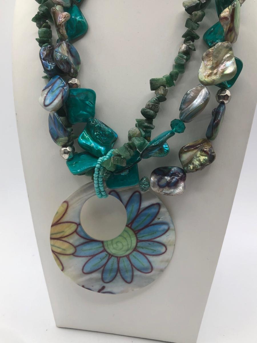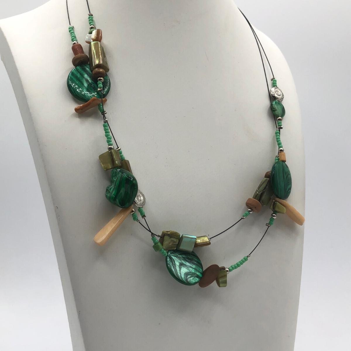 LOT 31J: Beautiful Blue and Green Bead Necklaces w/ Matching Earrings & Stretch Bracelet