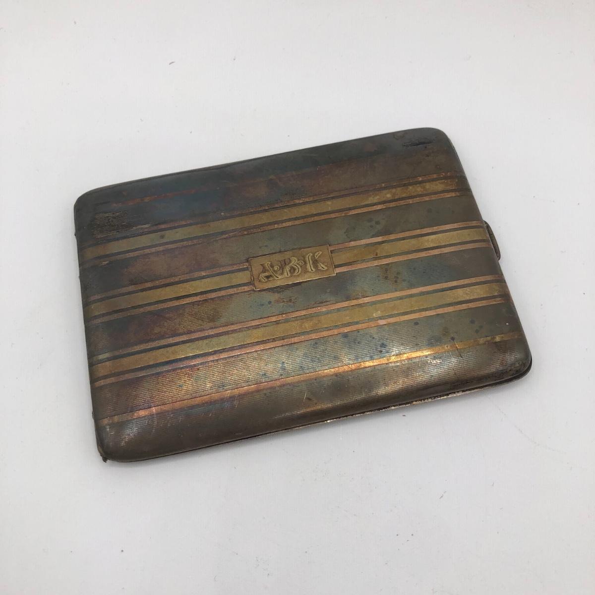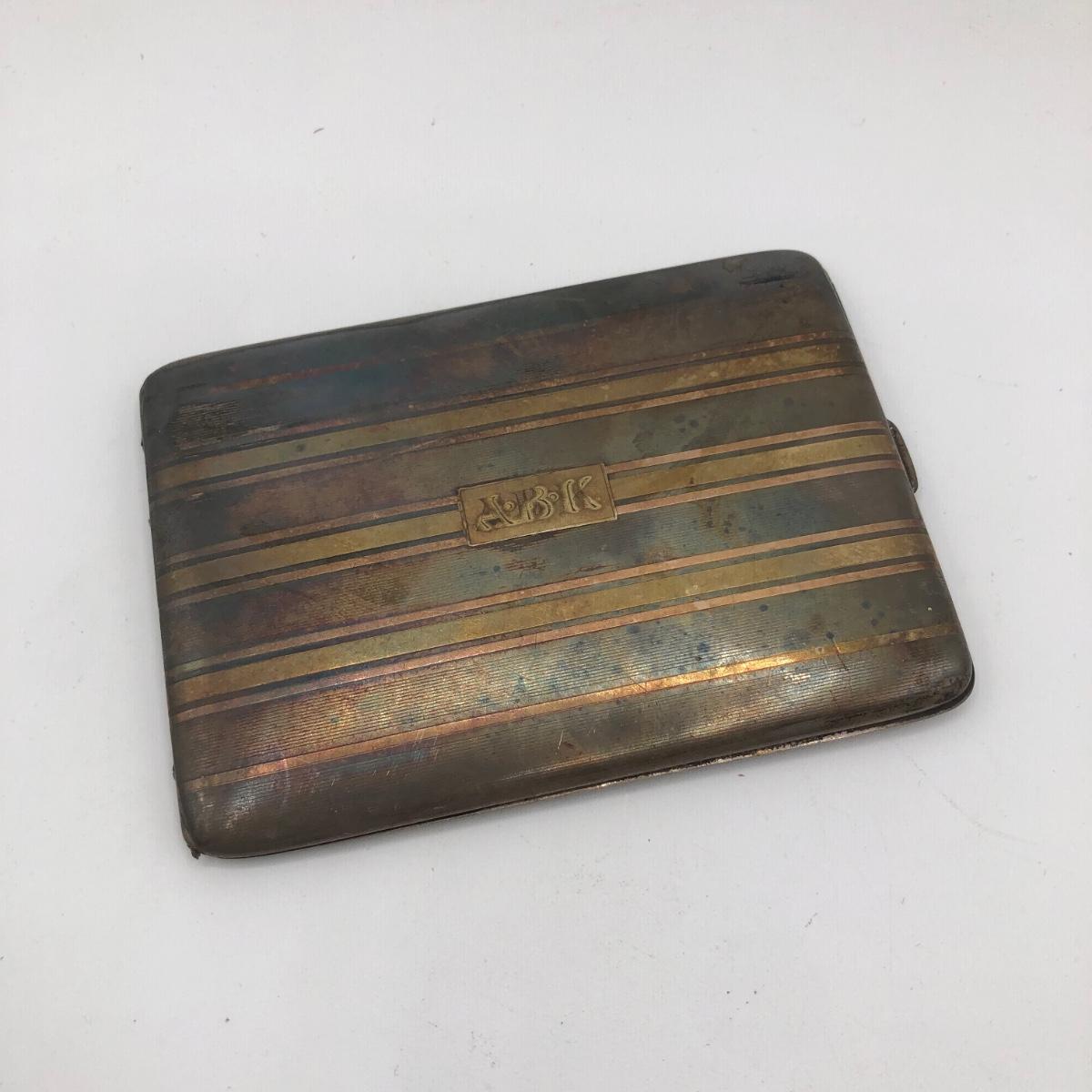 LOT 32J: Vintage Sterling Silver & 14k Gold Cigarette Case