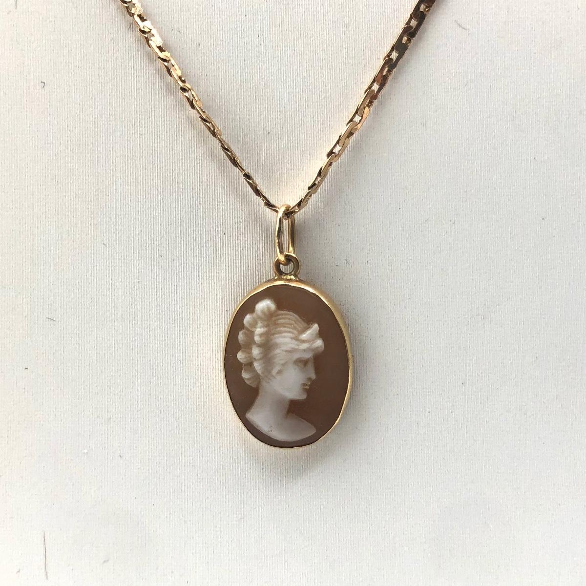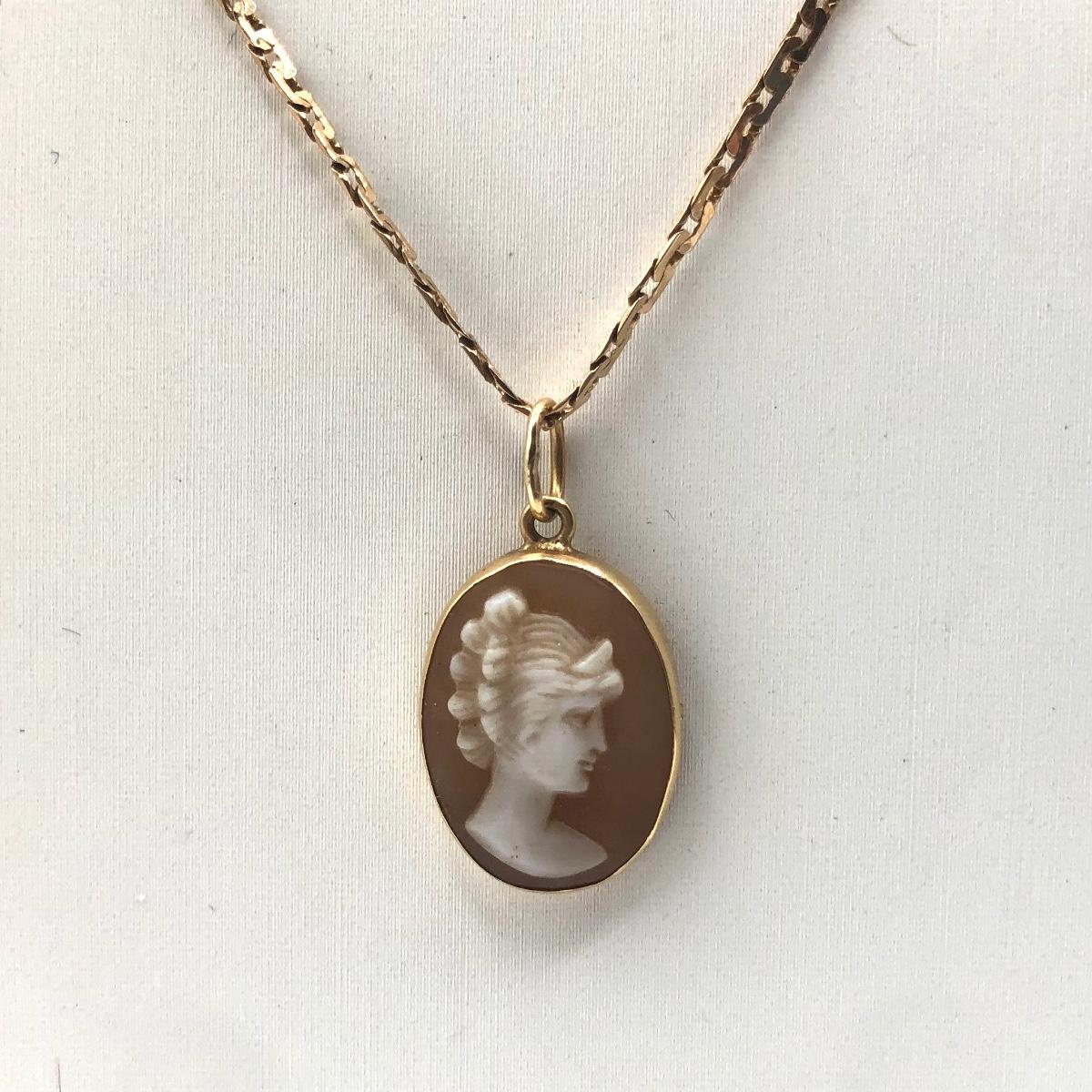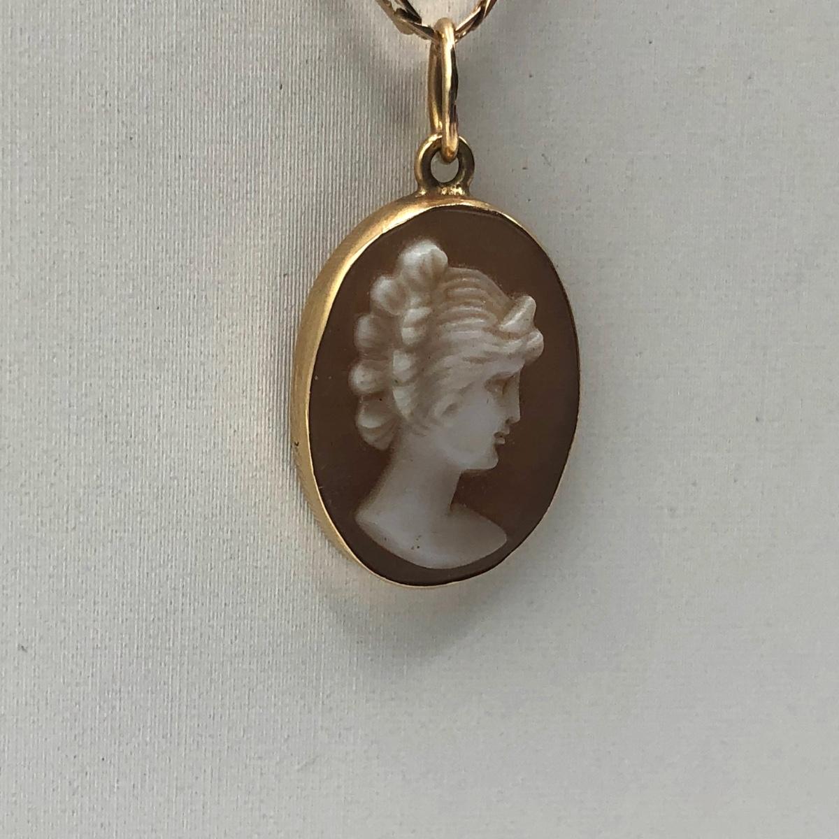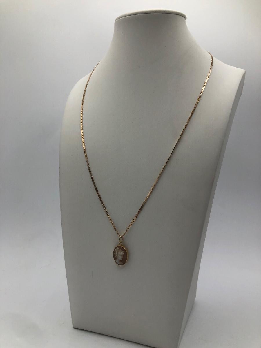 LOT 38J: Vintage 14k Gold 20" Necklace w/ Cameo Pendant - chain is 3.4g
