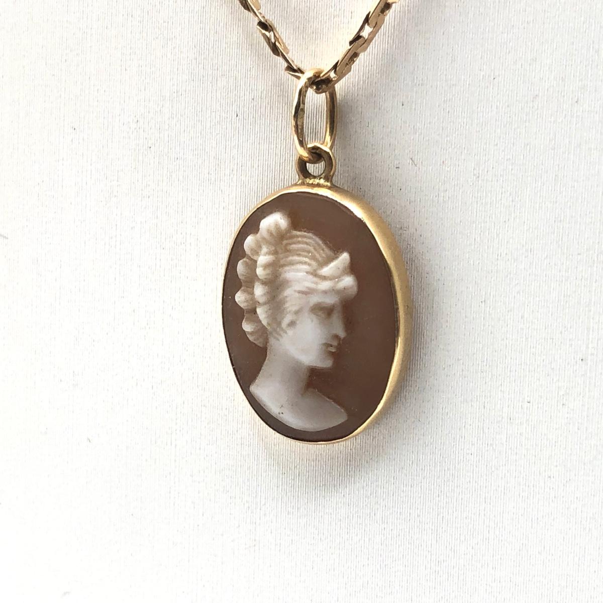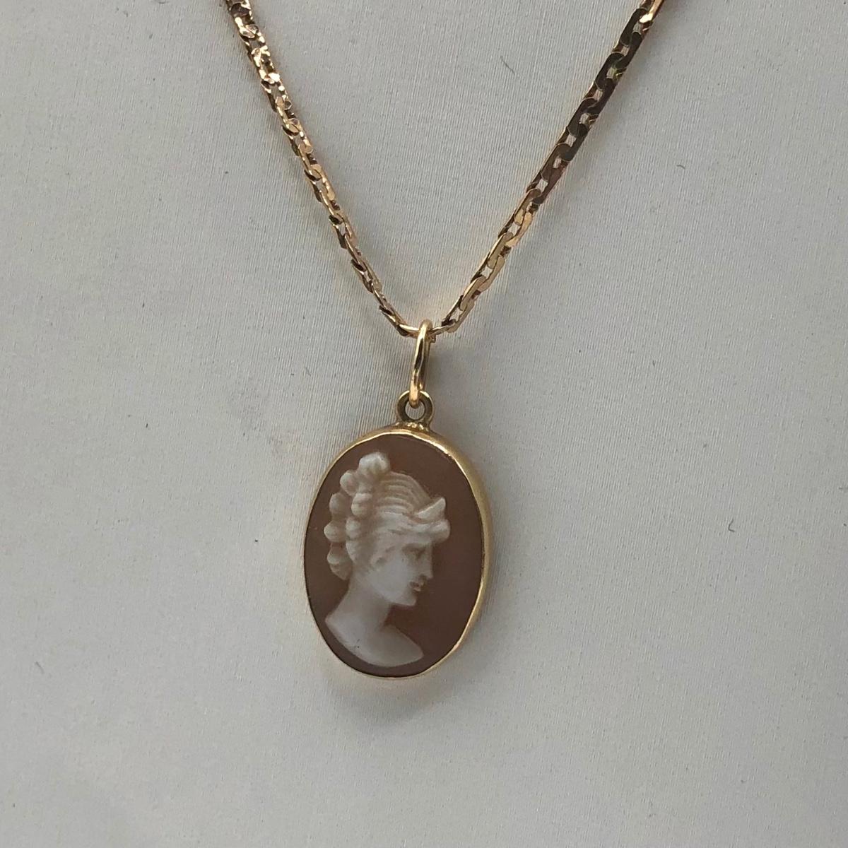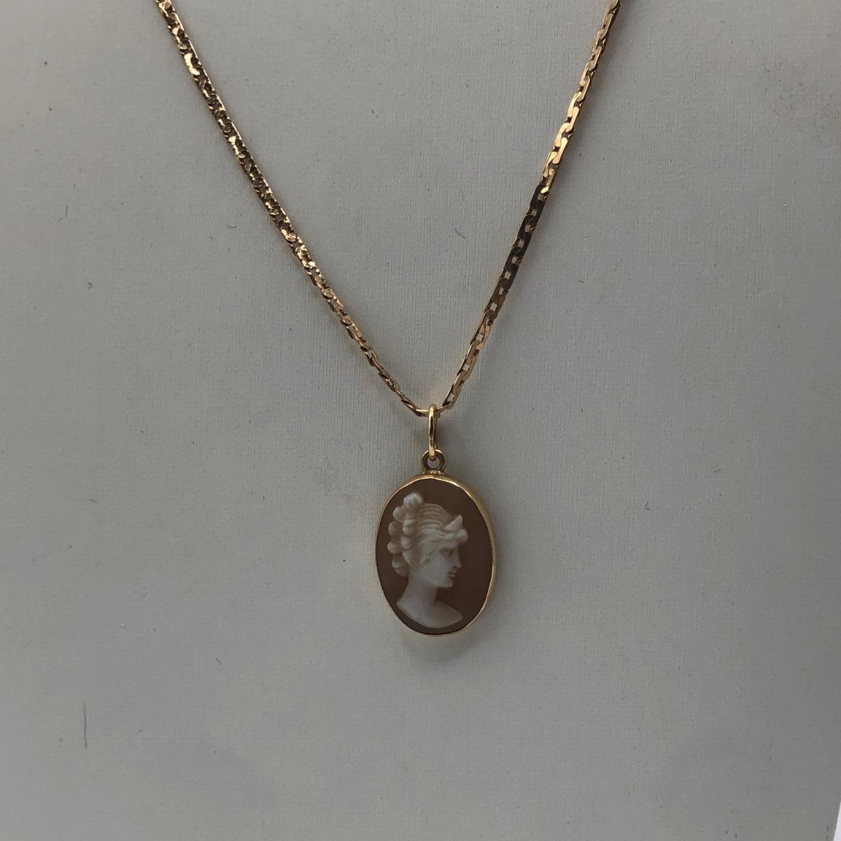 LOT 38J: Vintage 14k Gold 20" Necklace w/ Cameo Pendant - chain is 3.4g
