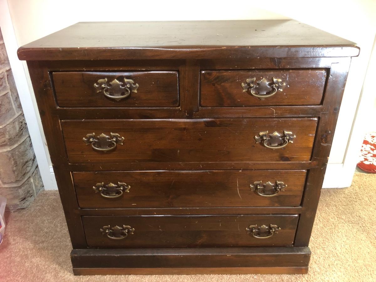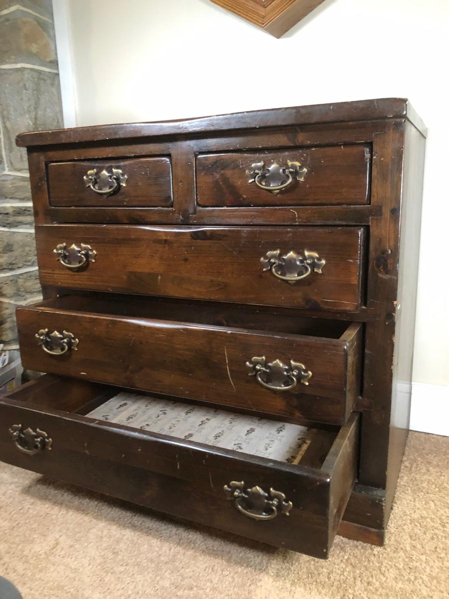 LOT 42B: Vintage Dark Wood 5-Drawer Dresser