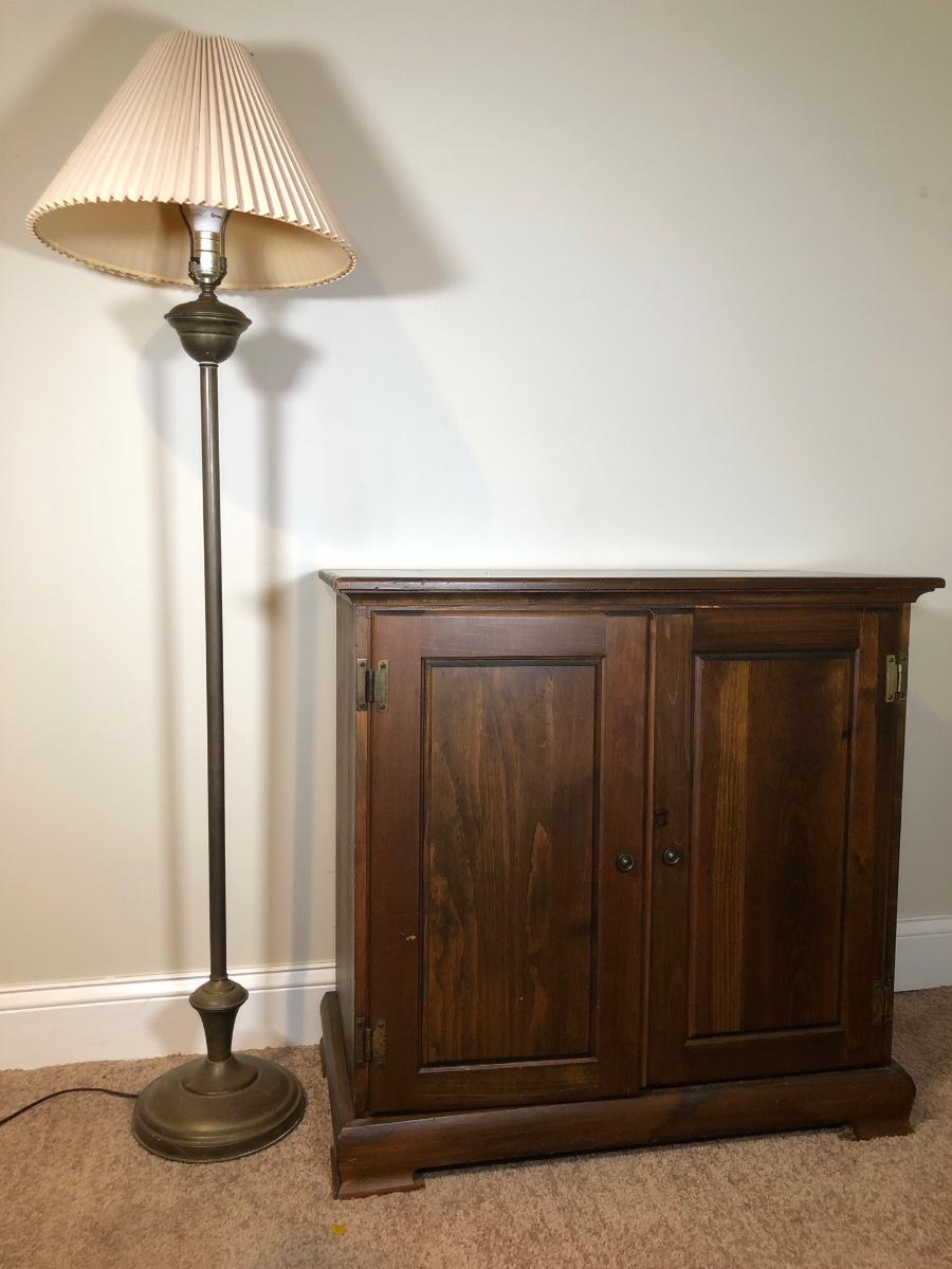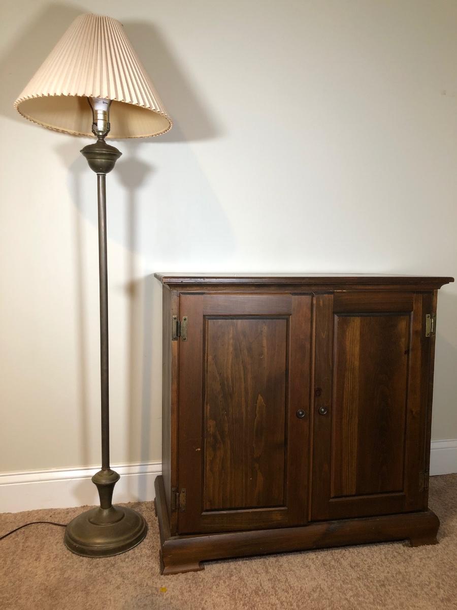 LOT 45B: TV Stand / Cabinet w/ 58" Vintage Brass Floor Lamp