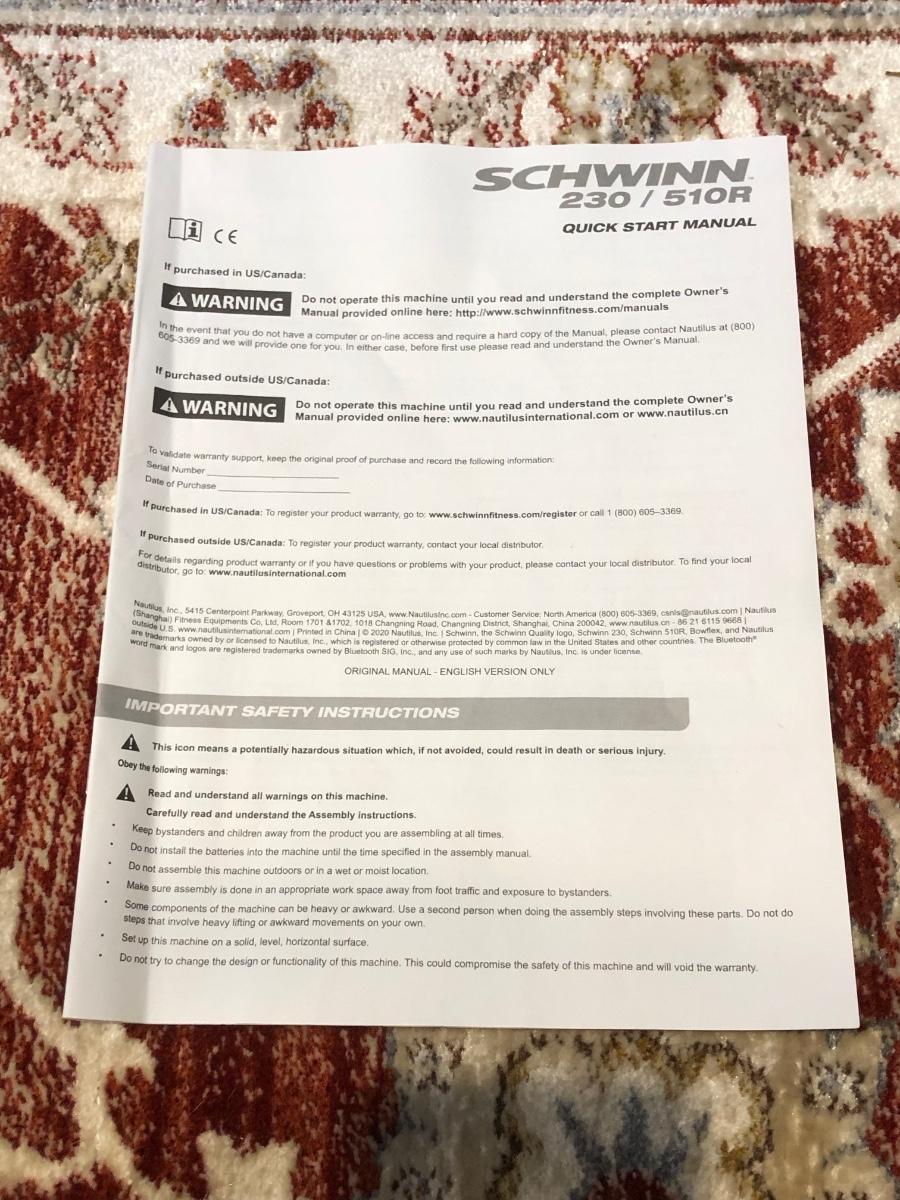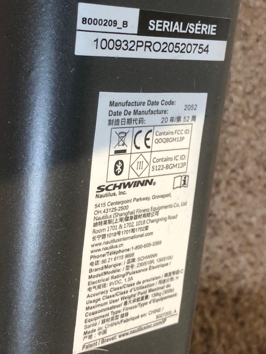 LOT 46B: Schwinn 230 Stationary Exercise Bike Model 230/510R