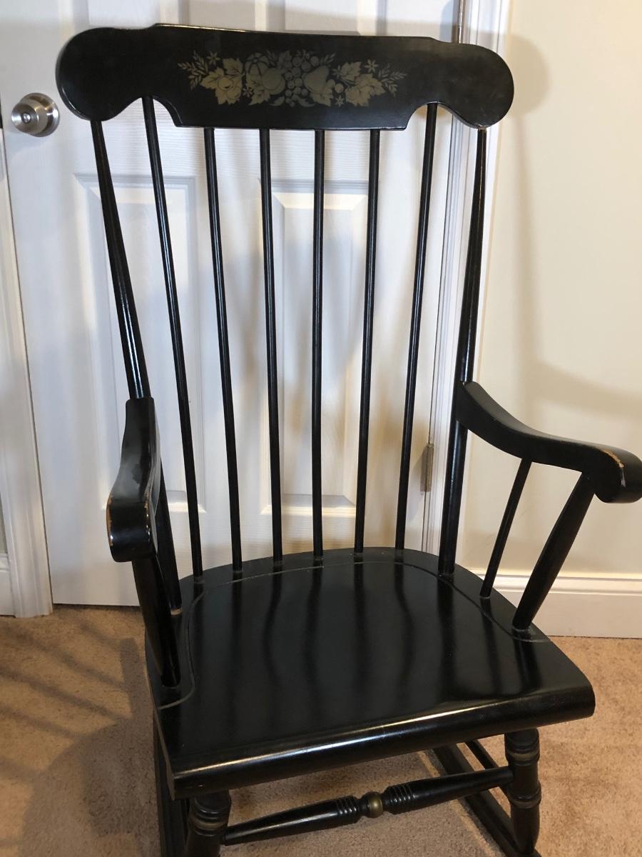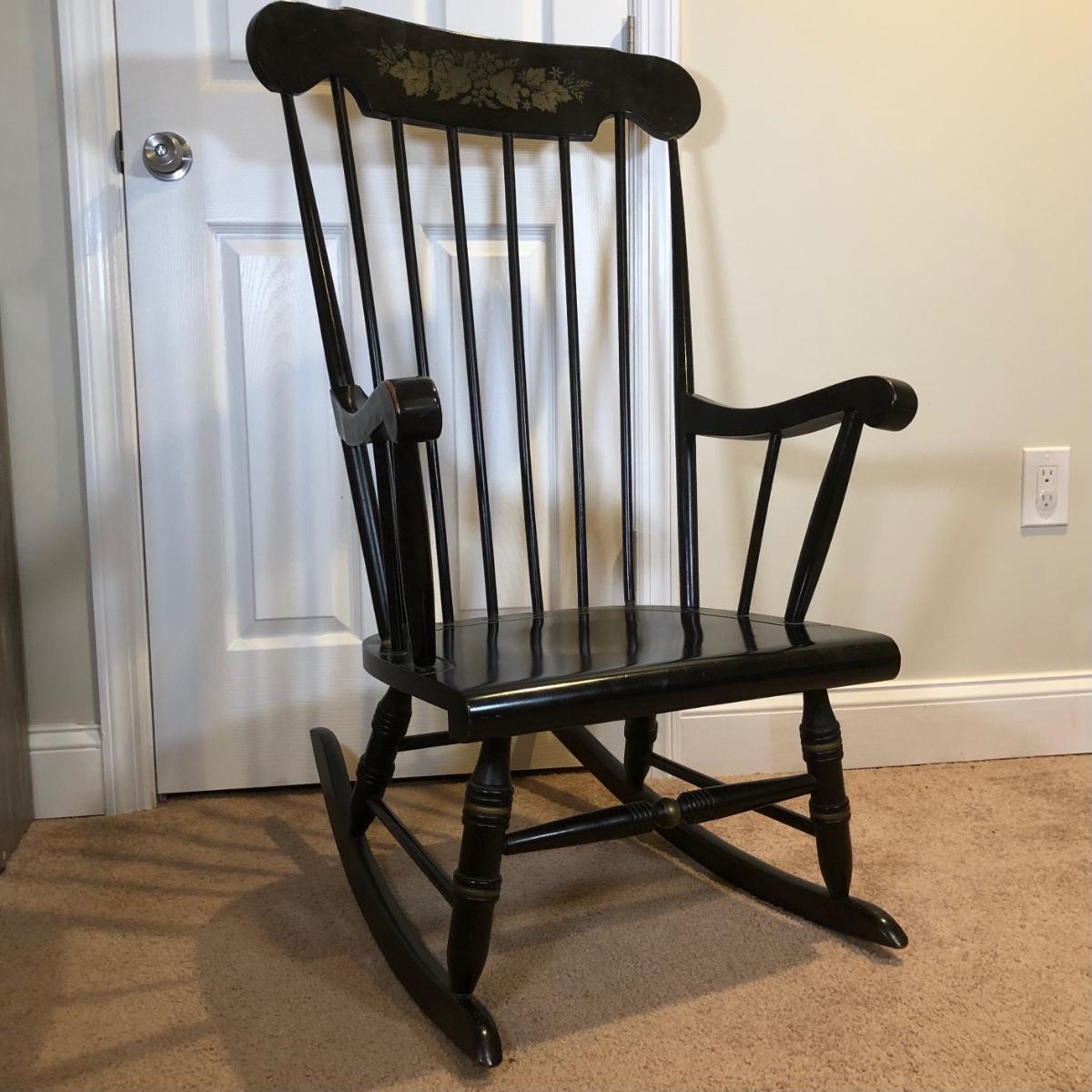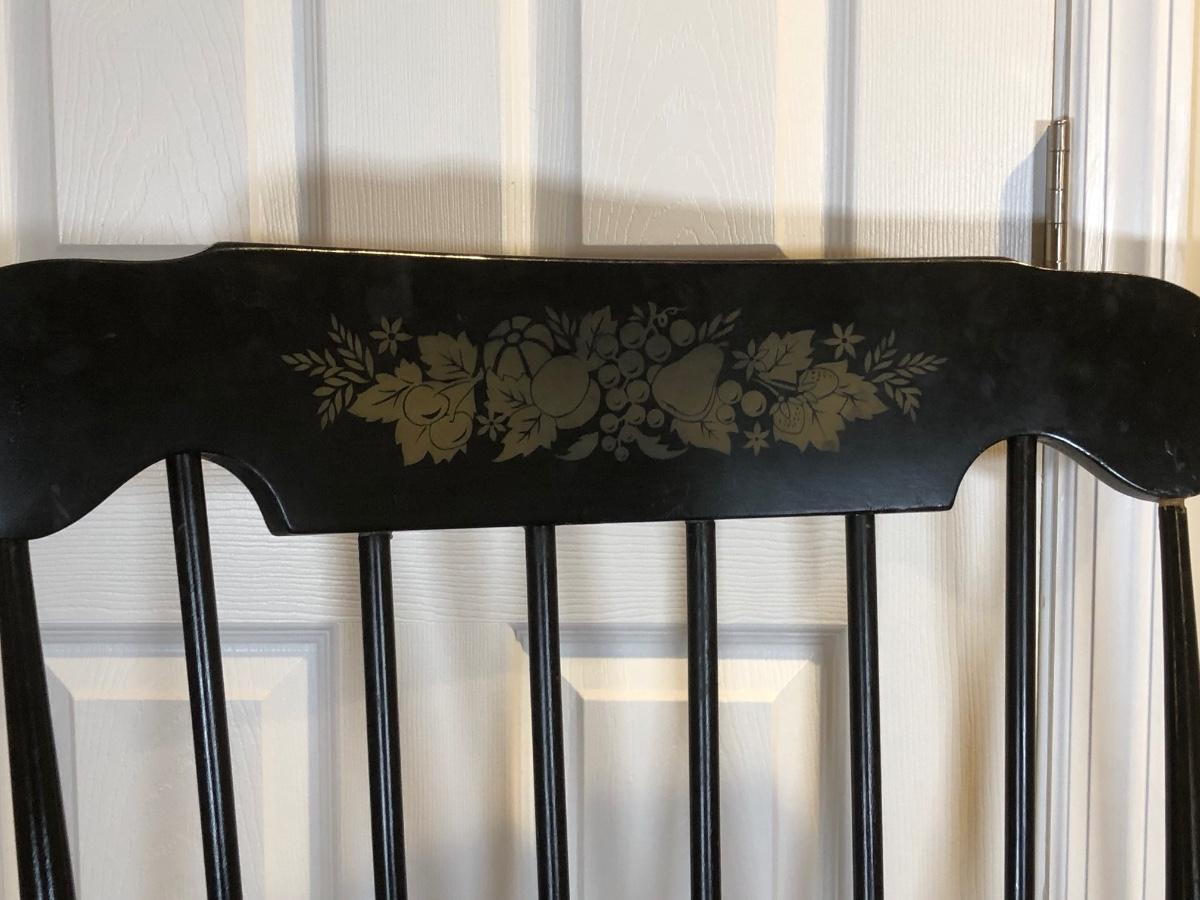 LOT 47B: Vintage Black Wood Rocking Chair w/ Harvest Design