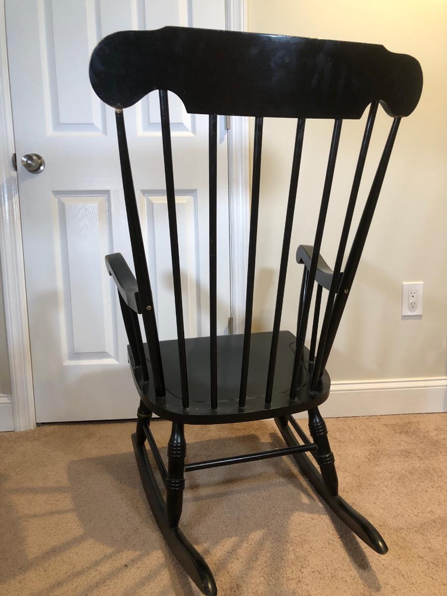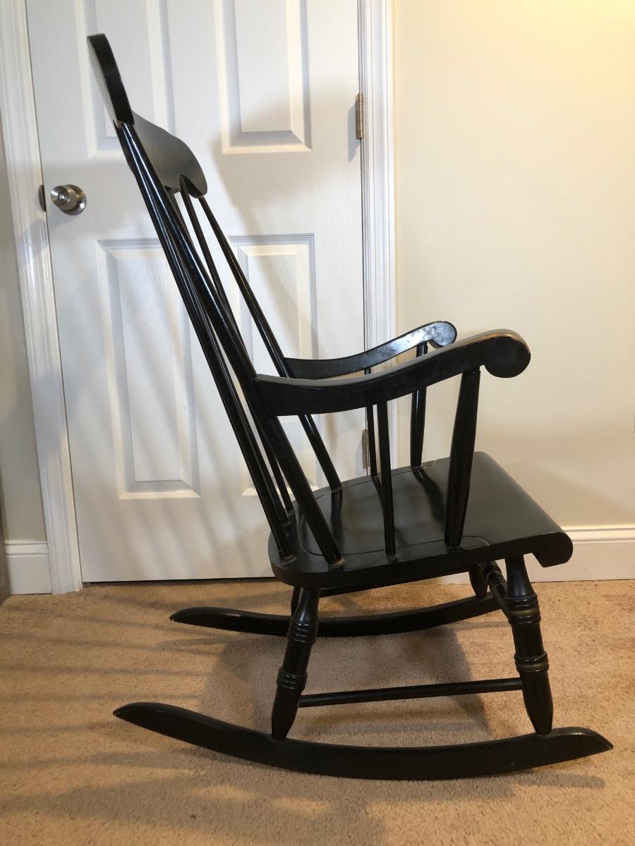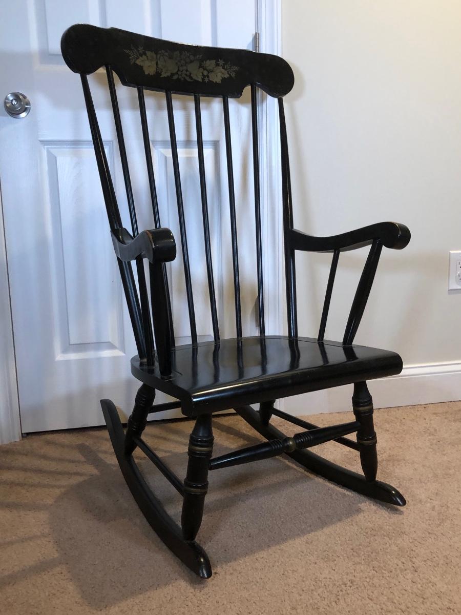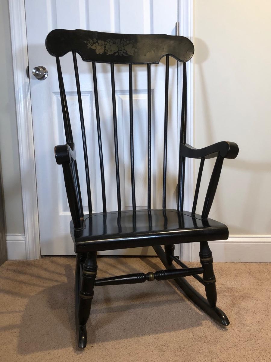 LOT 47B: Vintage Black Wood Rocking Chair w/ Harvest Design