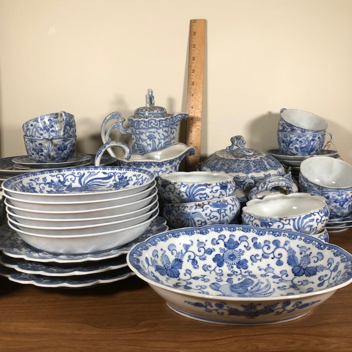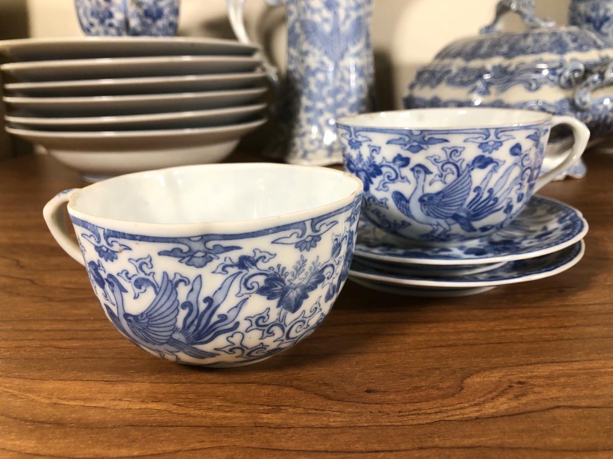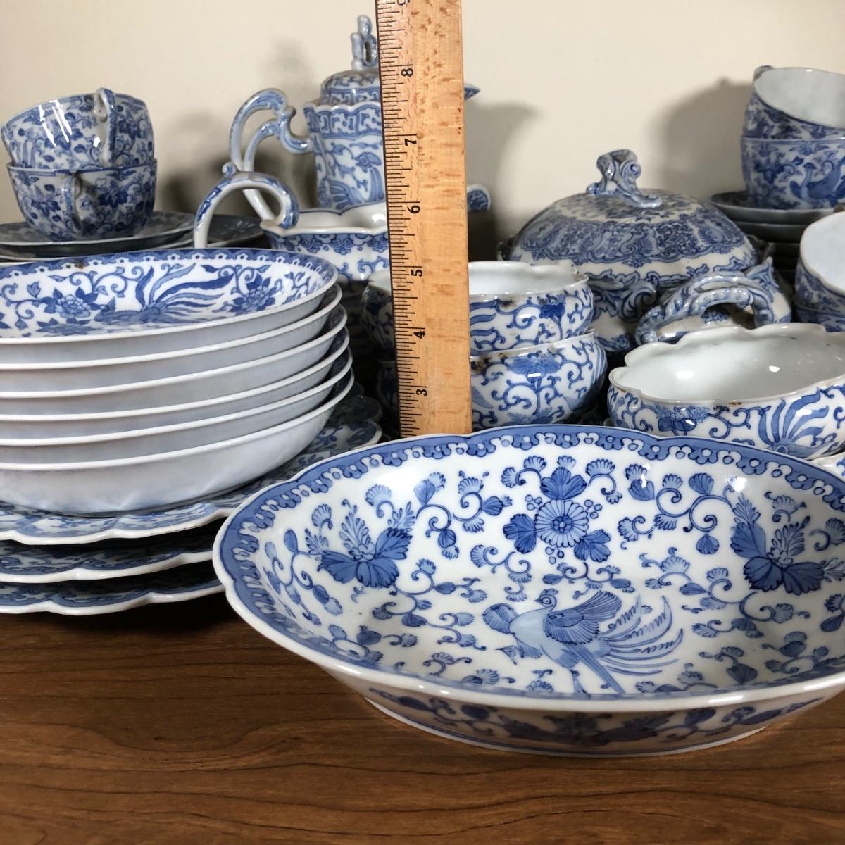 LOT 52B: Large Collection of Vintage Blue & White Japanese China - Noritake Howo Plates, Several Pieces marked w/ Japanese Characters & More