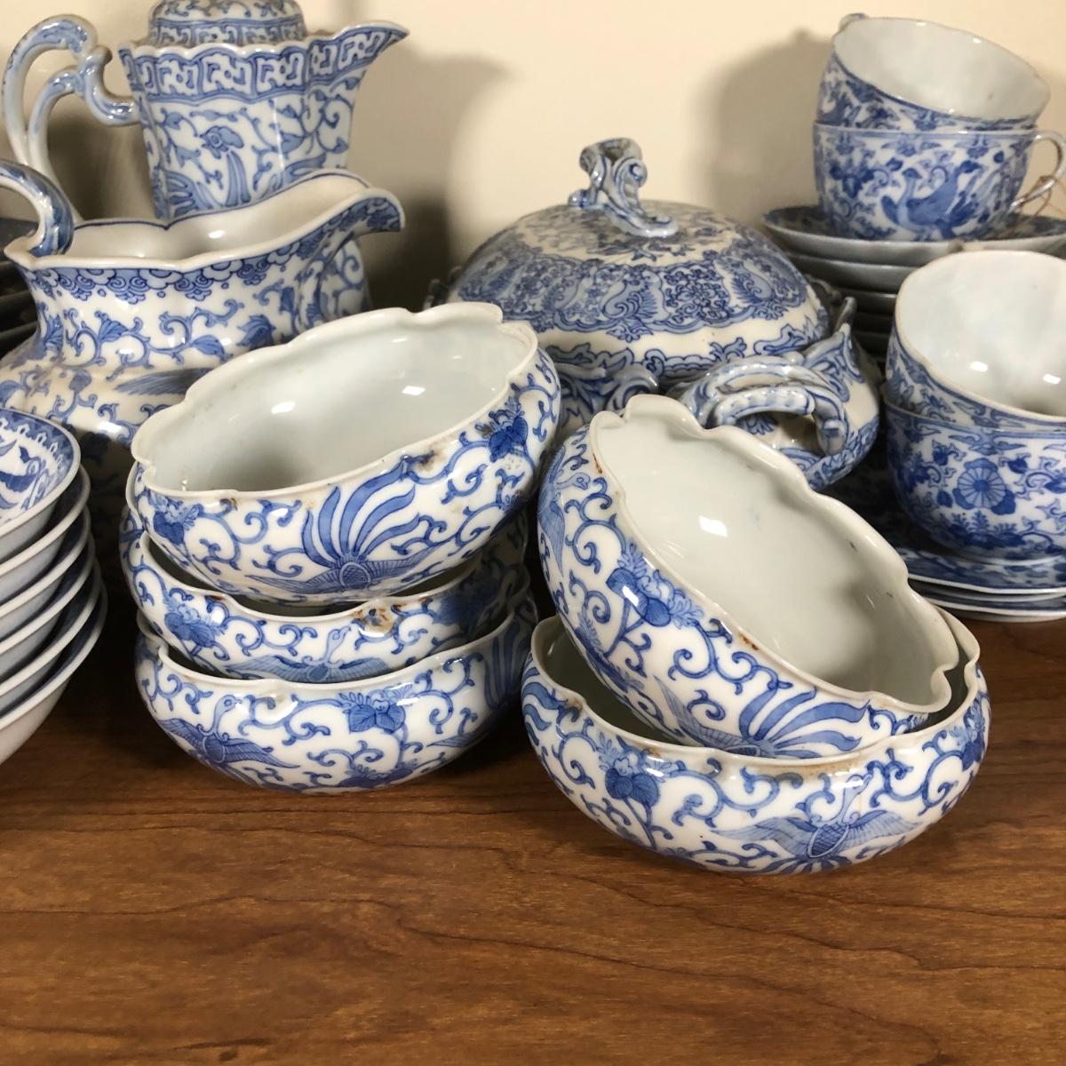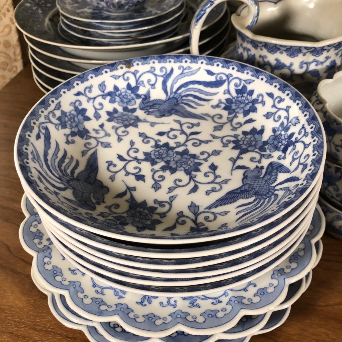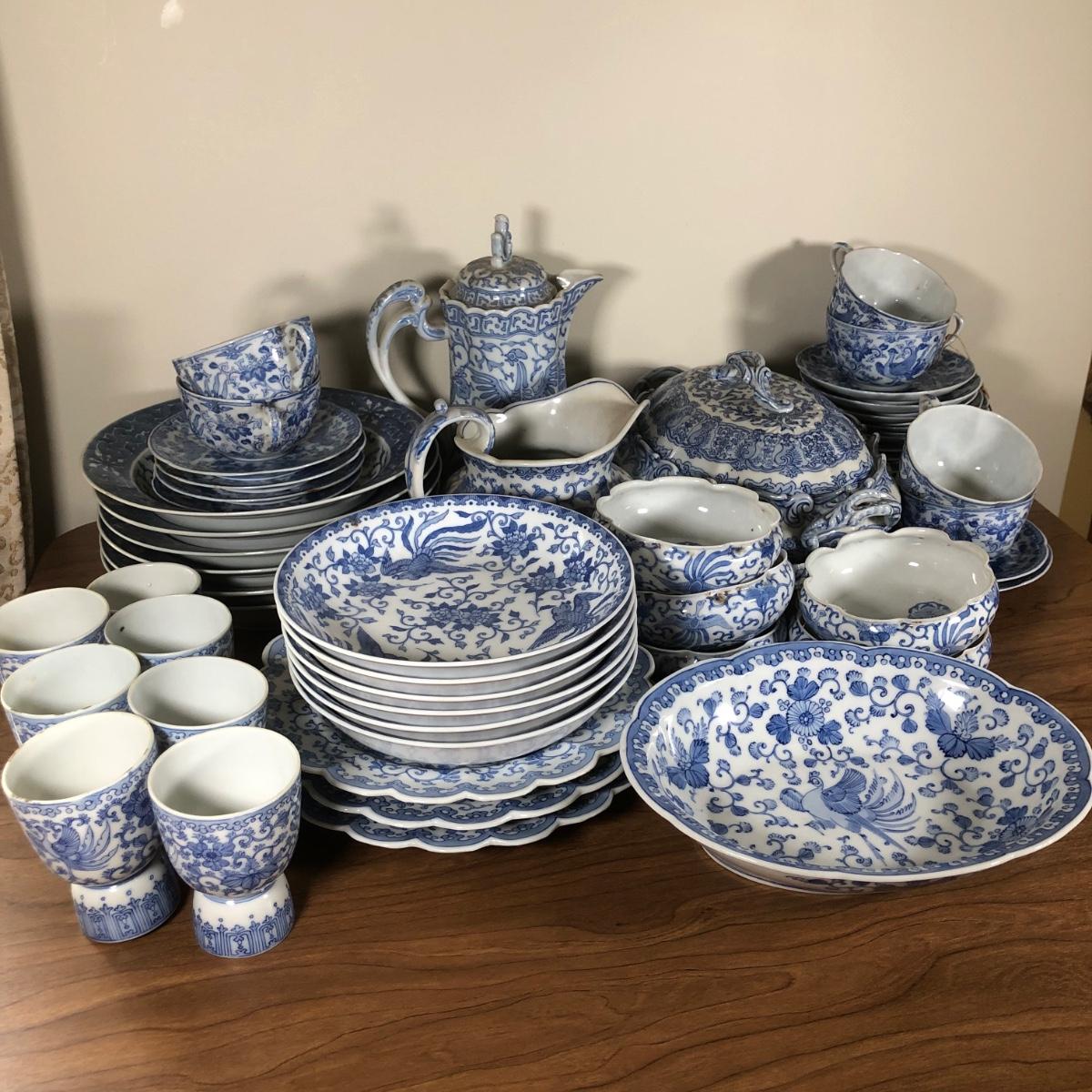 LOT 52B: Large Collection of Vintage Blue & White Japanese China - Noritake Howo Plates, Several Pieces marked w/ Japanese Characters & More