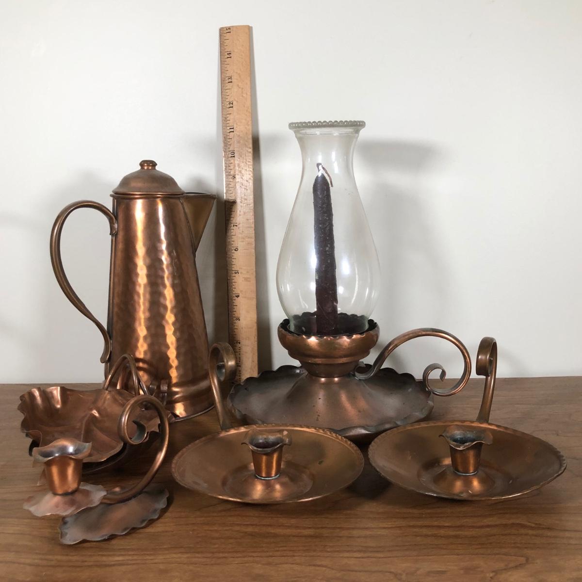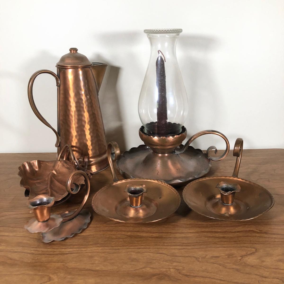 LOT 55B: Vintage Gregorian Copper - Candle Holders & Pitcher
