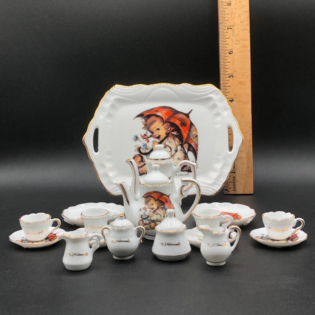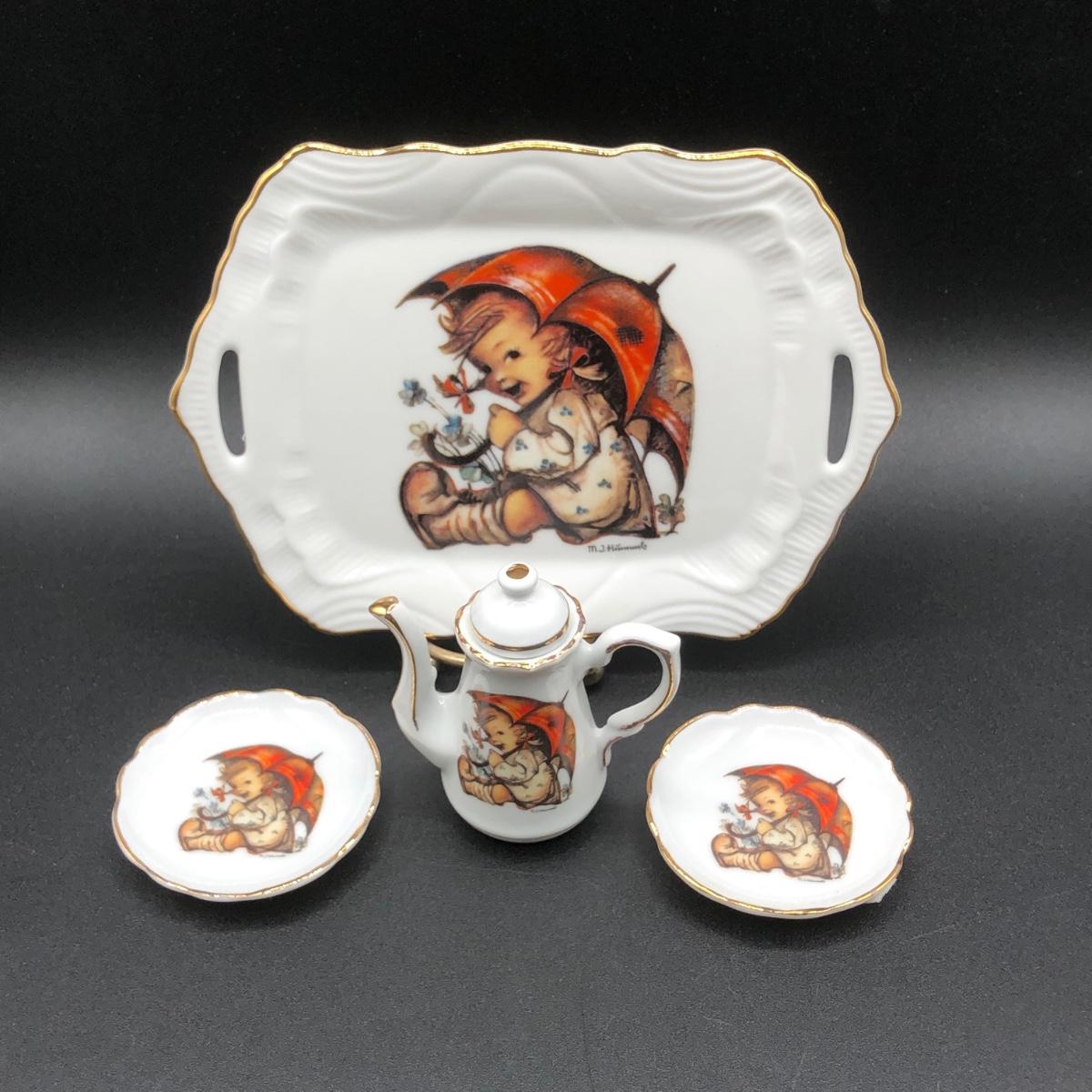 LOT 57D: Vintage Goebel M.I. Hummel Umbrella Girl Miniature Porcelain Tea Set