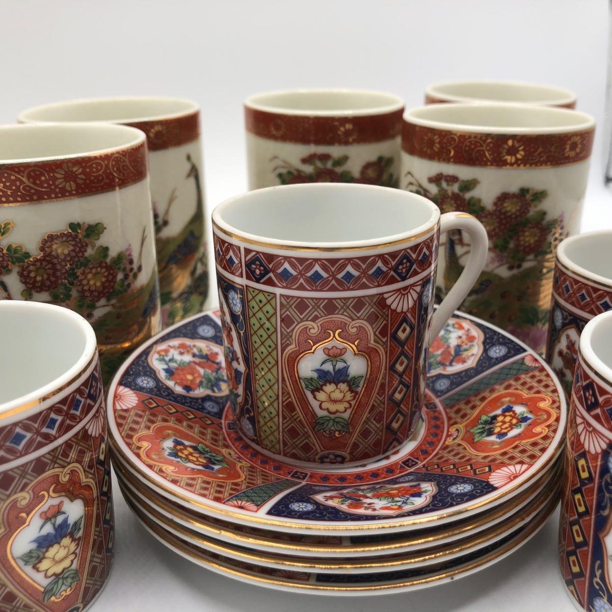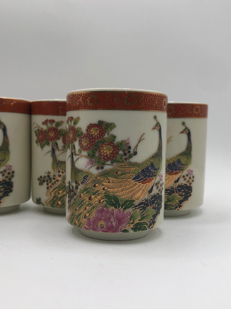LOT 58D: Vintage Japanese Peacock Cups w/ Mugs & Saucers