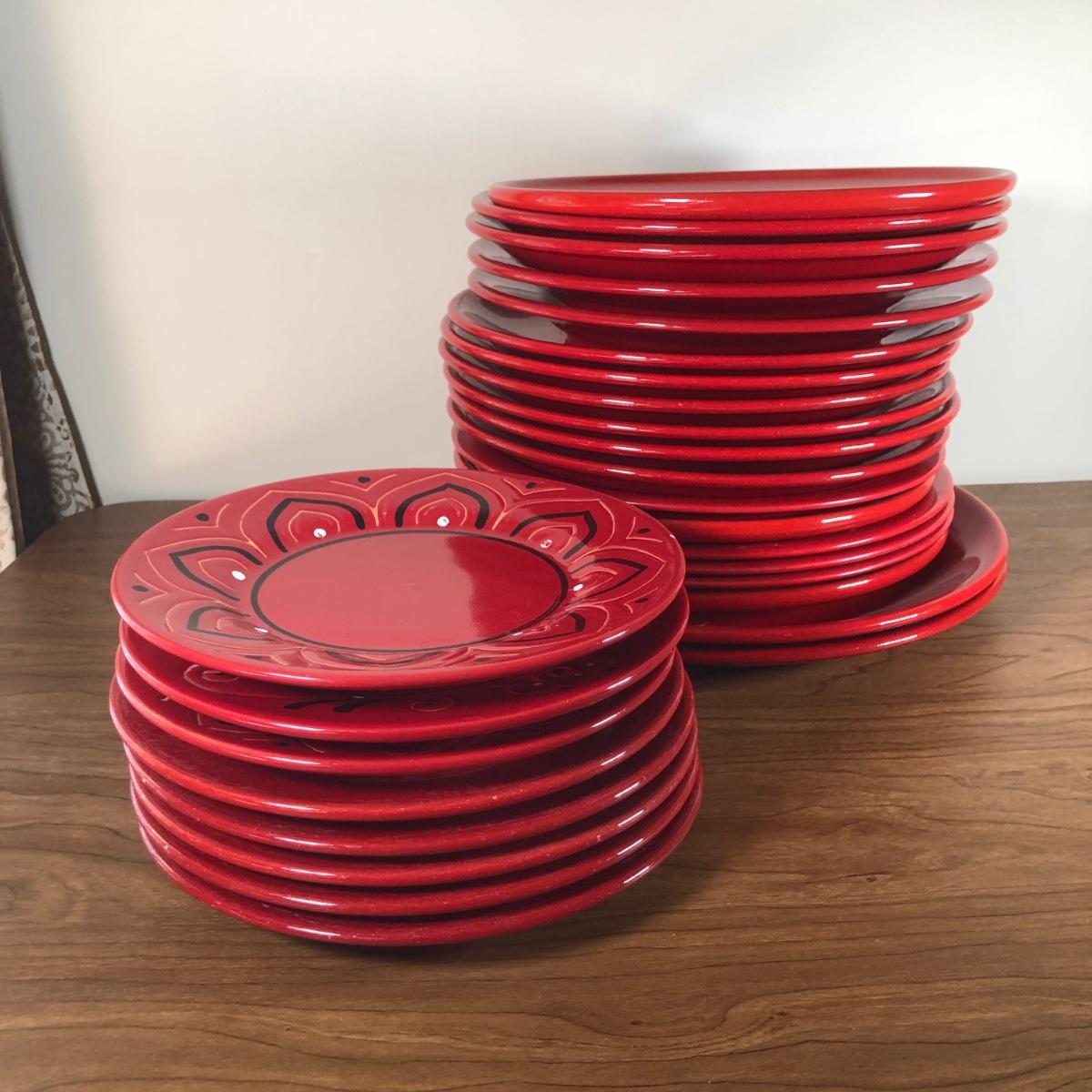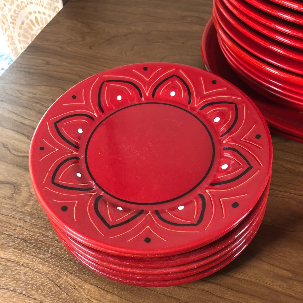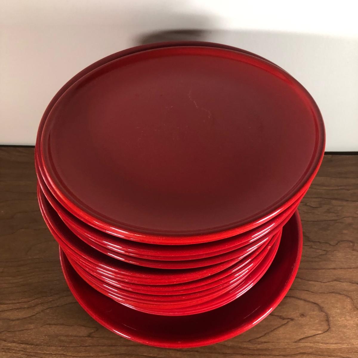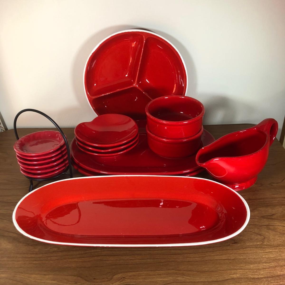 LOT 72L: HUGE Collection of Red Dishes, Baking Dishes & Serving Pieces - Deruta Italy Hand Painted, Pagnossin Ironstone Italy, Chantal, Olive & Thyme, Table Tops Gallery French Baroque & More
