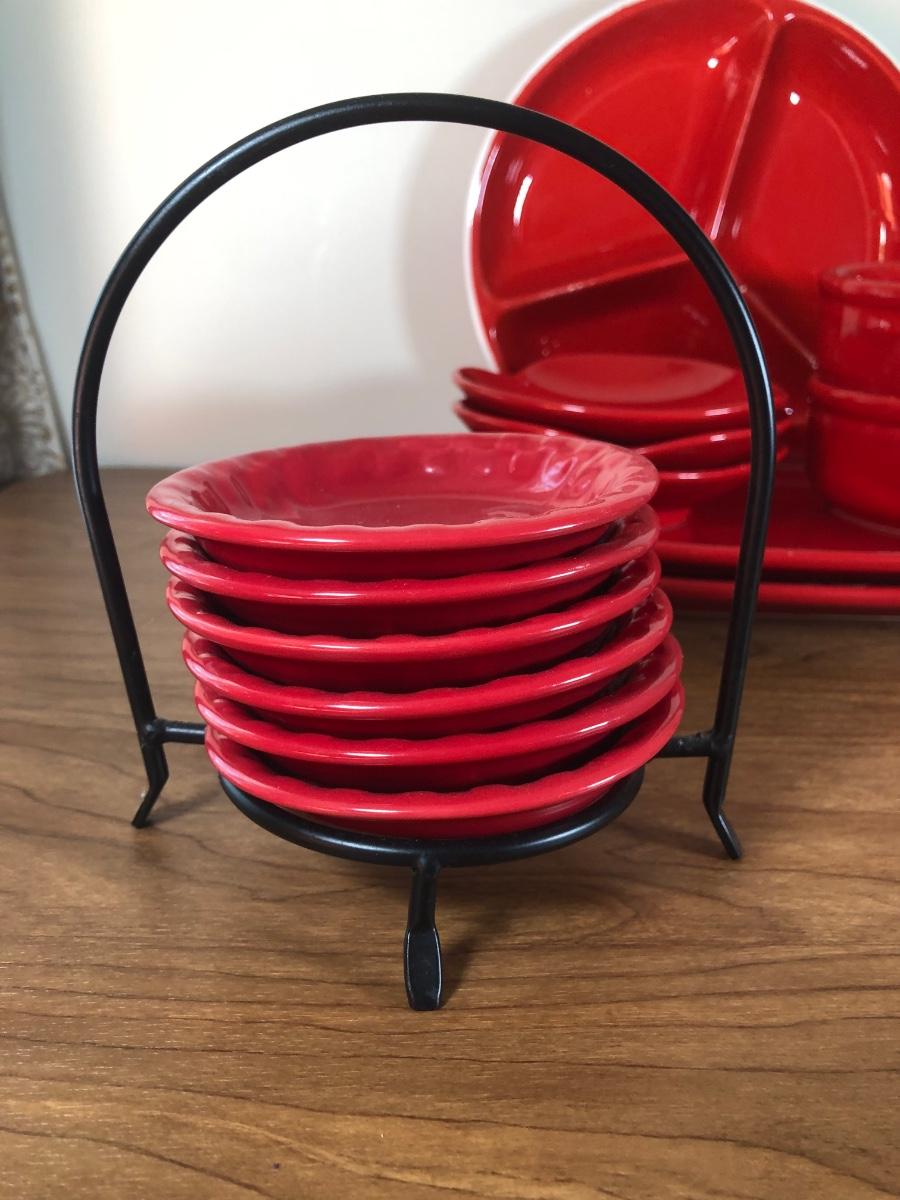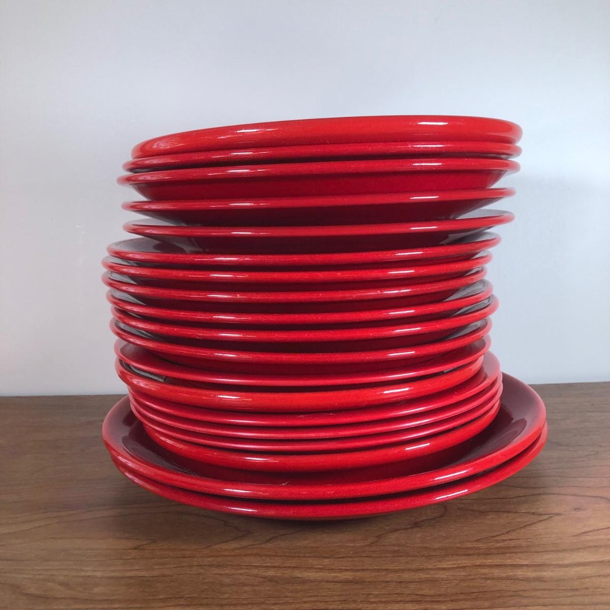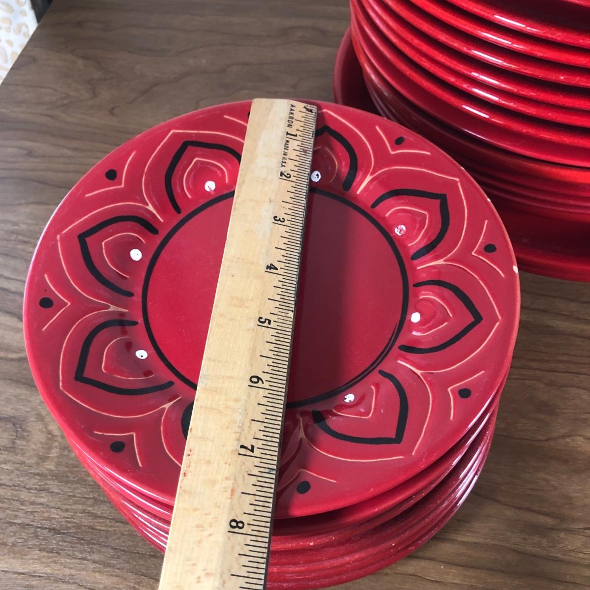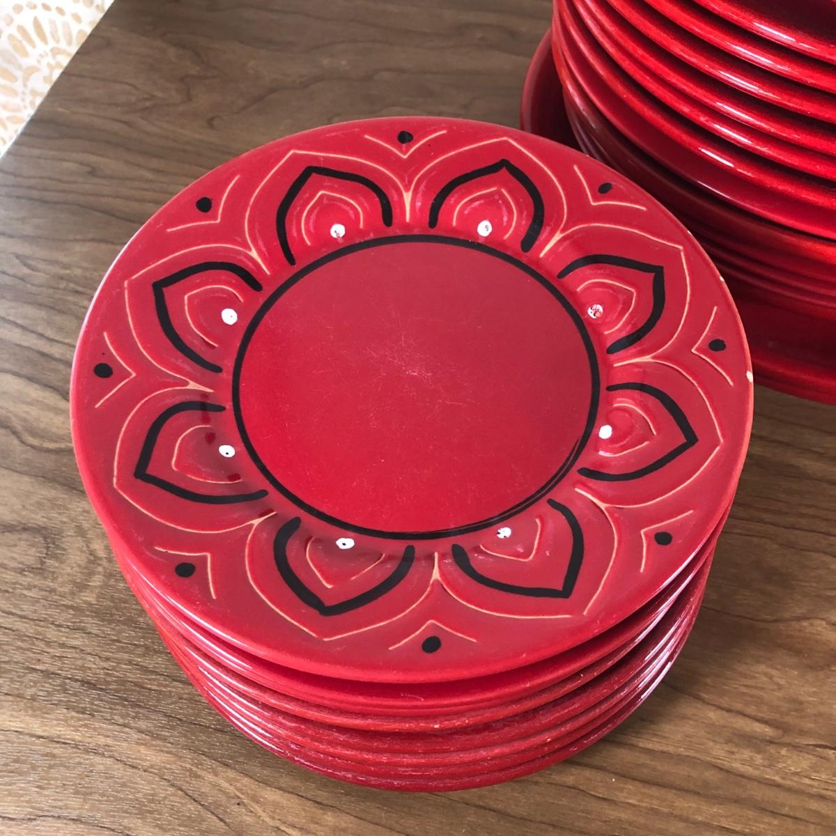 LOT 72L: HUGE Collection of Red Dishes, Baking Dishes & Serving Pieces - Deruta Italy Hand Painted, Pagnossin Ironstone Italy, Chantal, Olive & Thyme, Table Tops Gallery French Baroque & More