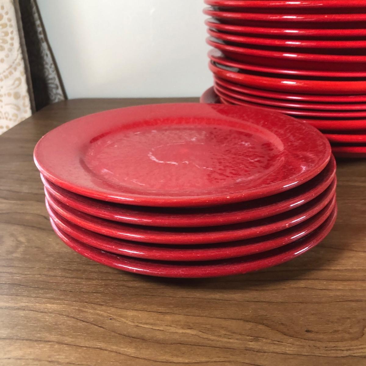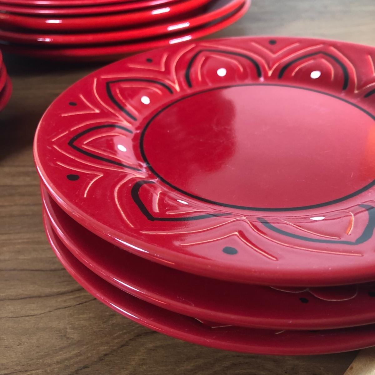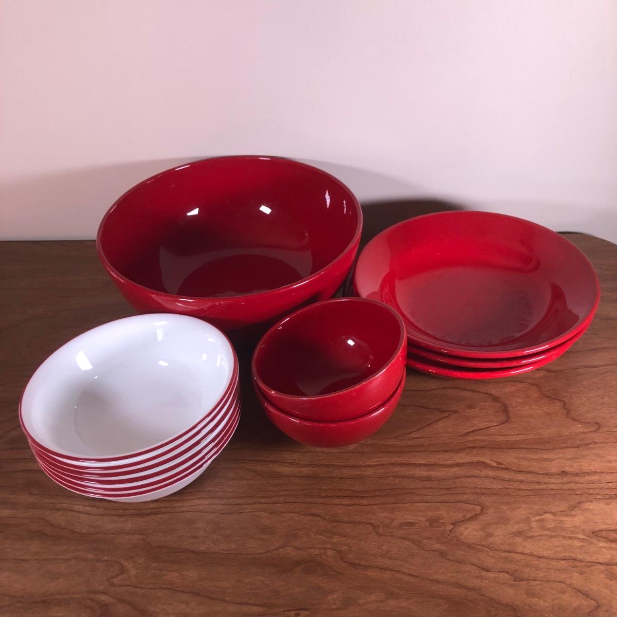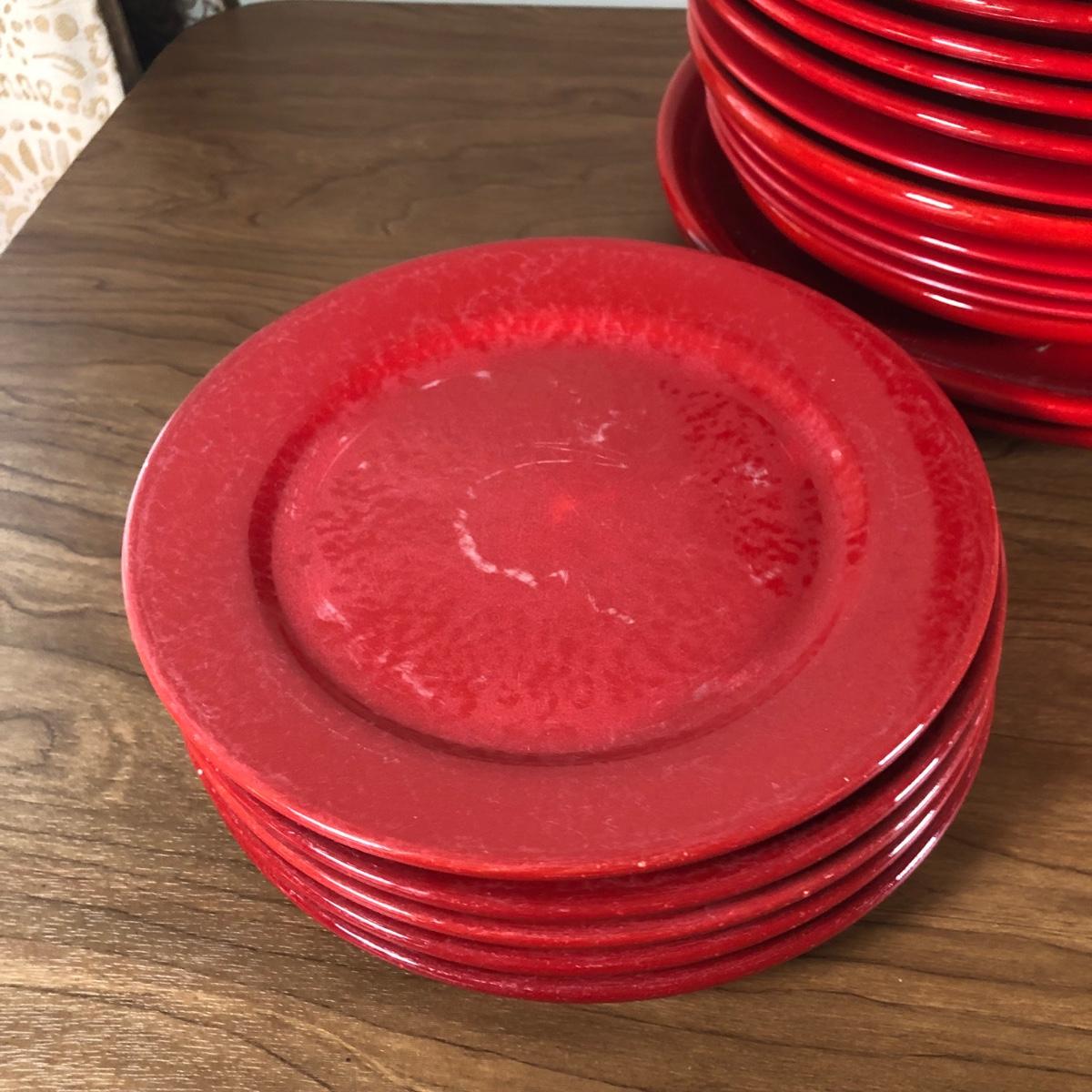 LOT 72L: HUGE Collection of Red Dishes, Baking Dishes & Serving Pieces - Deruta Italy Hand Painted, Pagnossin Ironstone Italy, Chantal, Olive & Thyme, Table Tops Gallery French Baroque & More