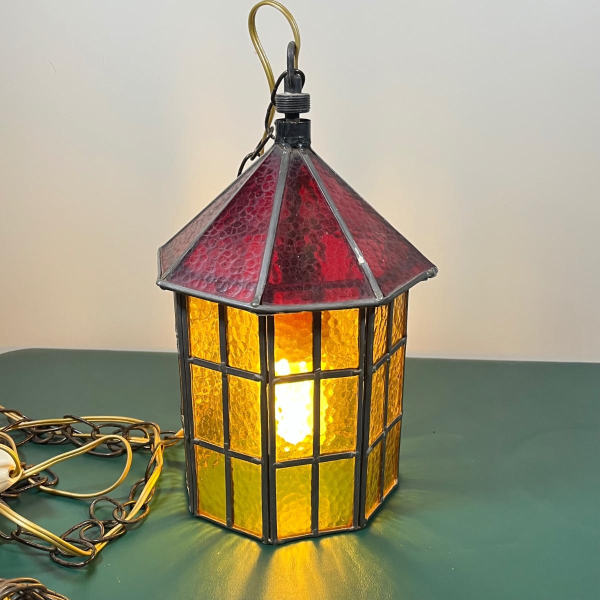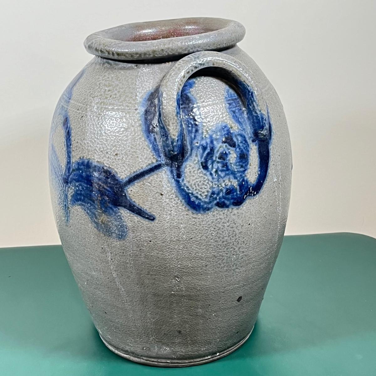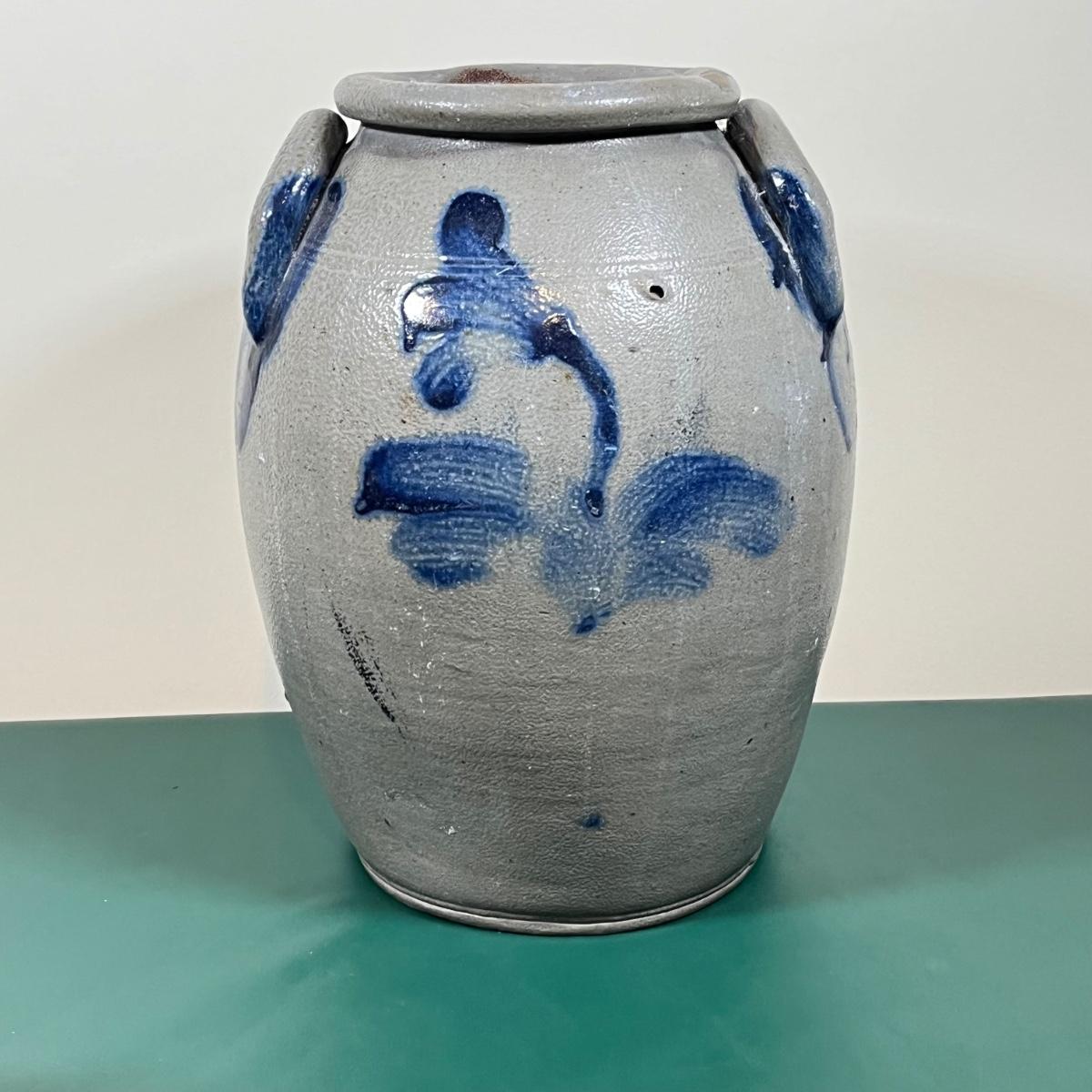 LOT 107B: Hanging Glass Lamp and Vintage Stoneware Crock