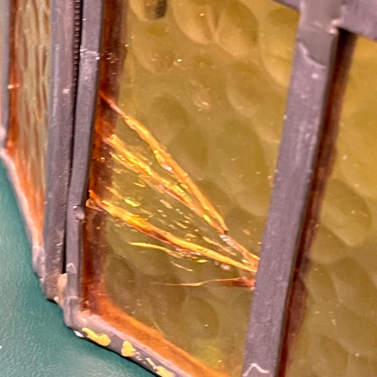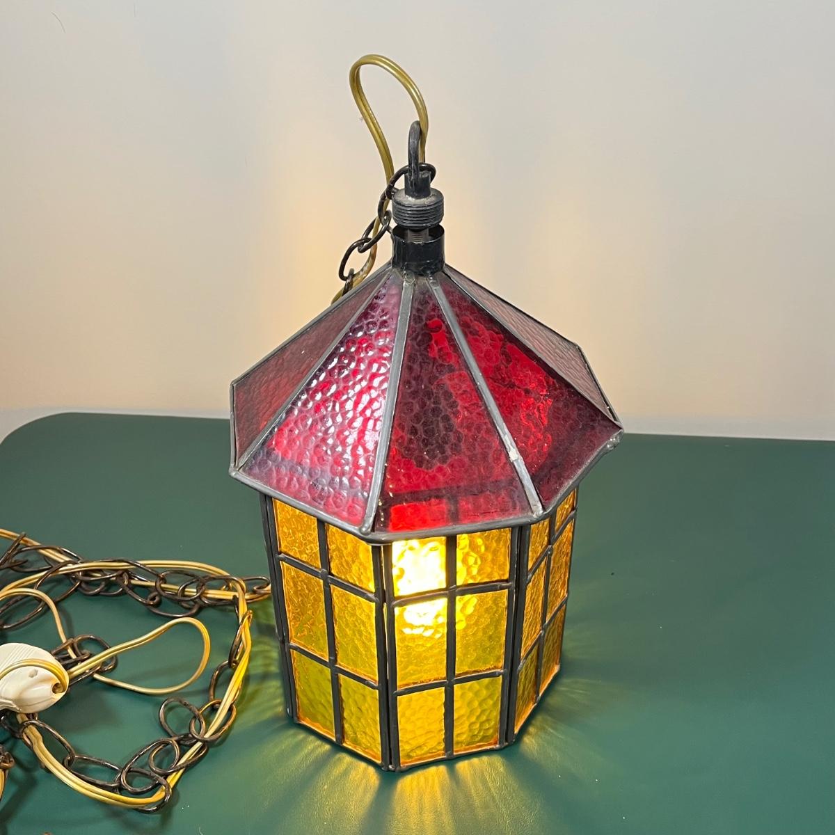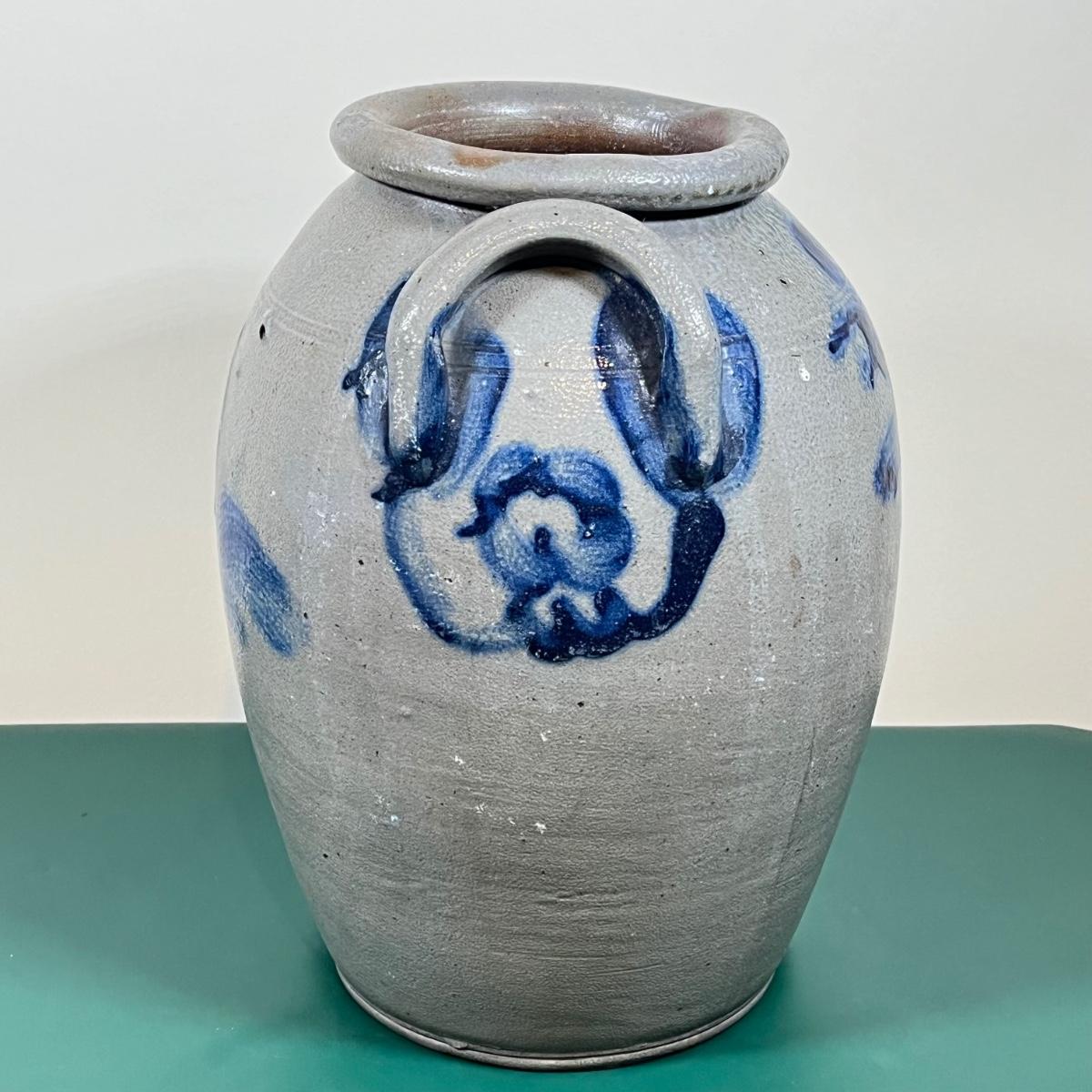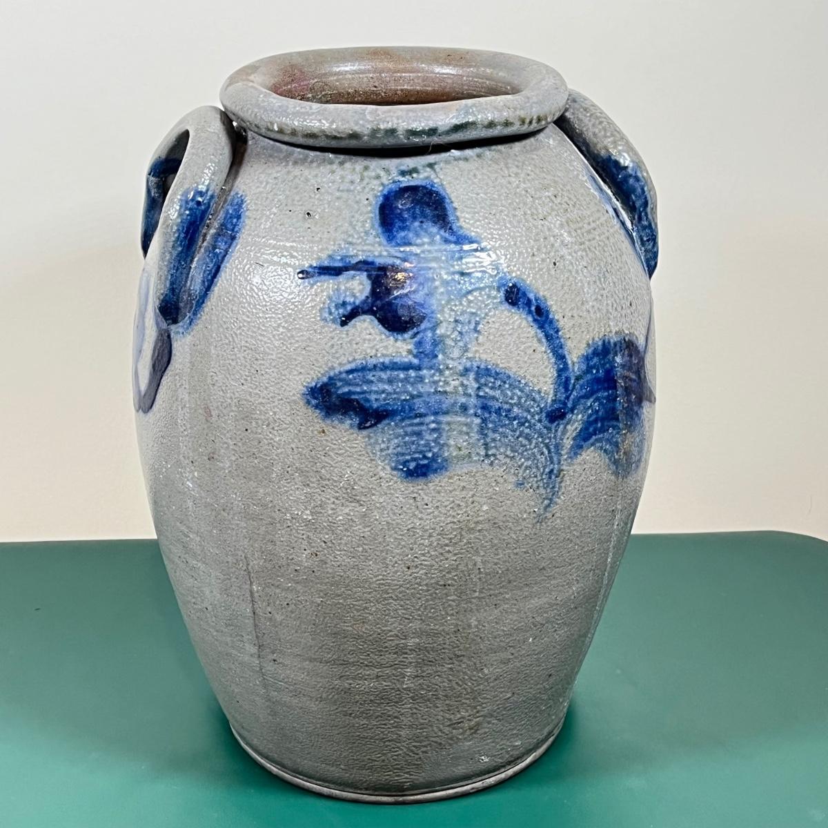LOT 107B: Hanging Glass Lamp and Vintage Stoneware Crock