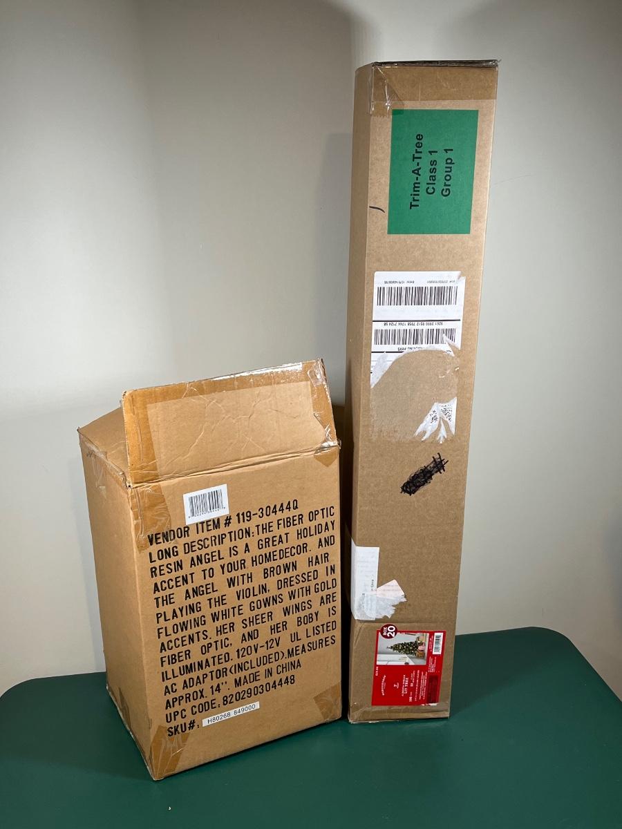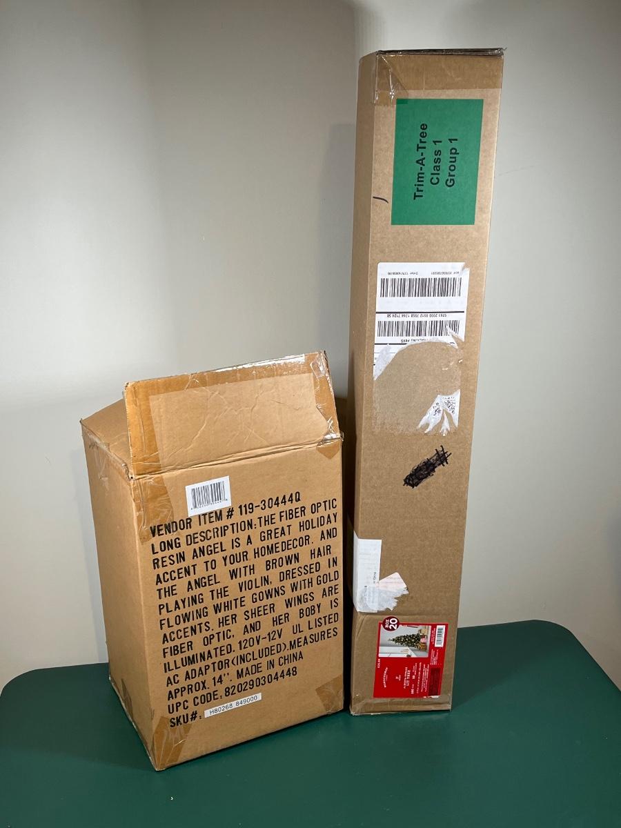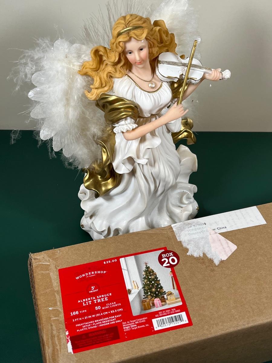 LOT 109B: Christmas Decor - Fiber Optic Resin Angel and Sealed in Box 3-Ft Lighted Christmas Tree