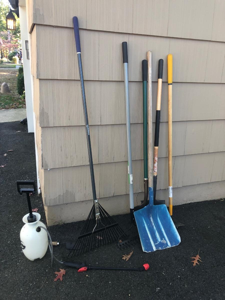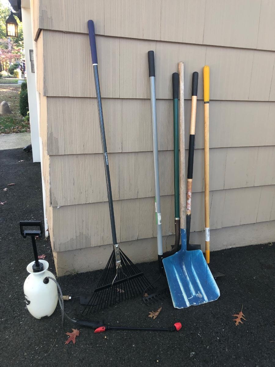 LOT 146G: Collection of Yard & Garden Tools - Round Up Sprayer, Rakes, Shovels & More