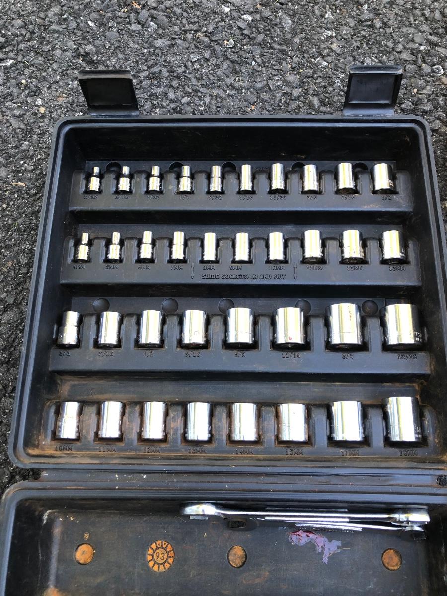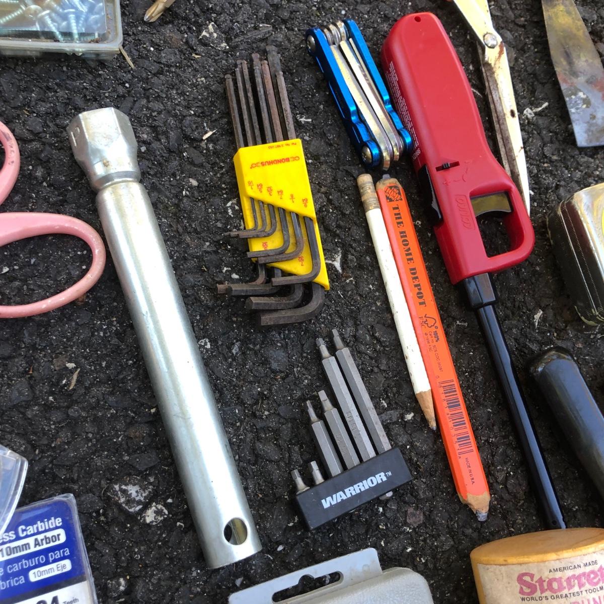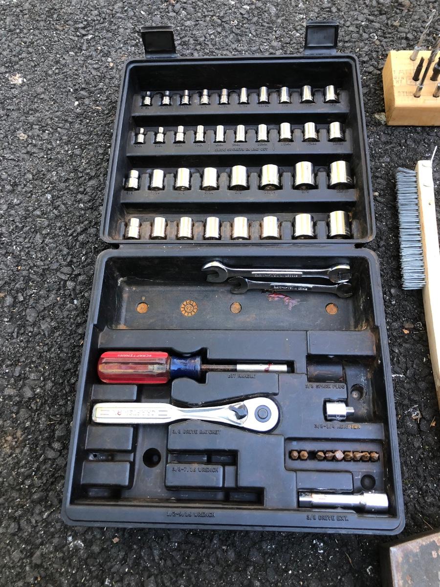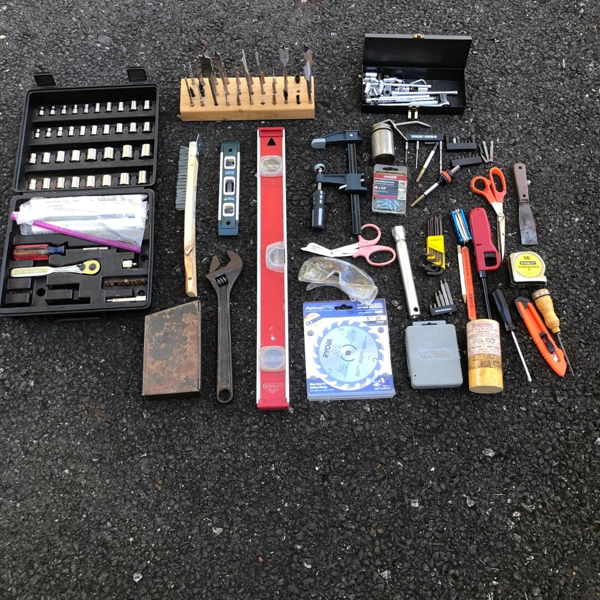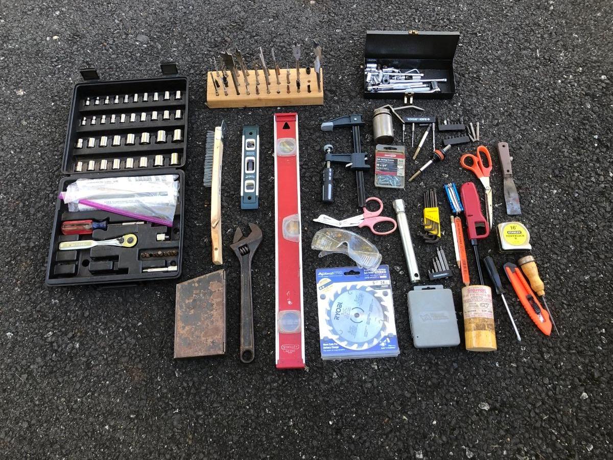 LOT 151G: Collection of Hand Tools - Assorted Drill Bits, Socket Wrench Sets, Ryobi 5.5" Saw Blade & More