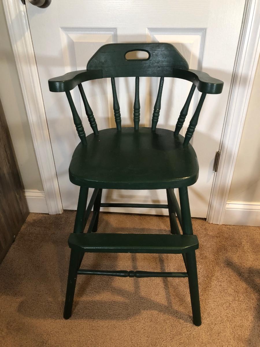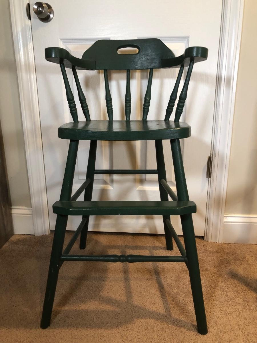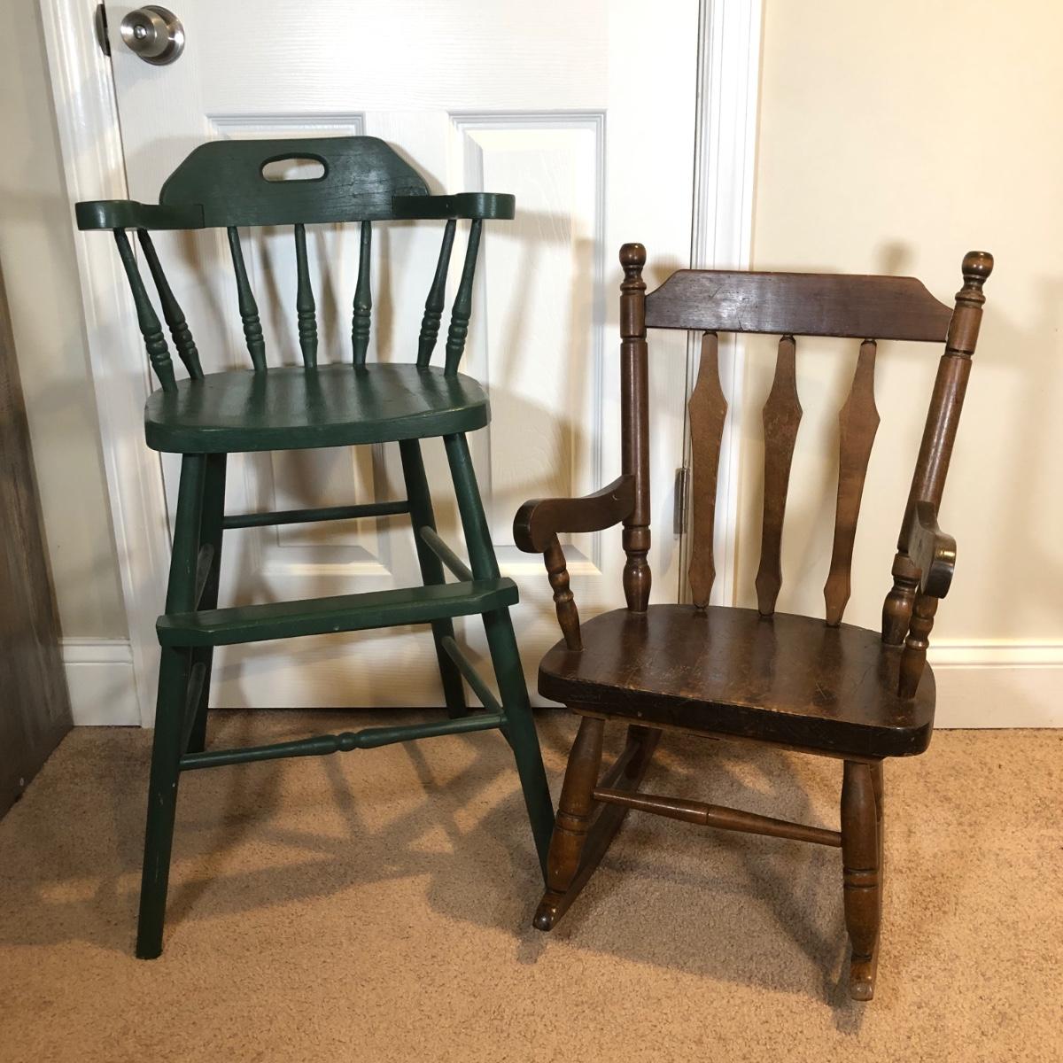 LOT 172J: Vintage Children's Furniture - Green High Chair & Thayer Rocking Chair