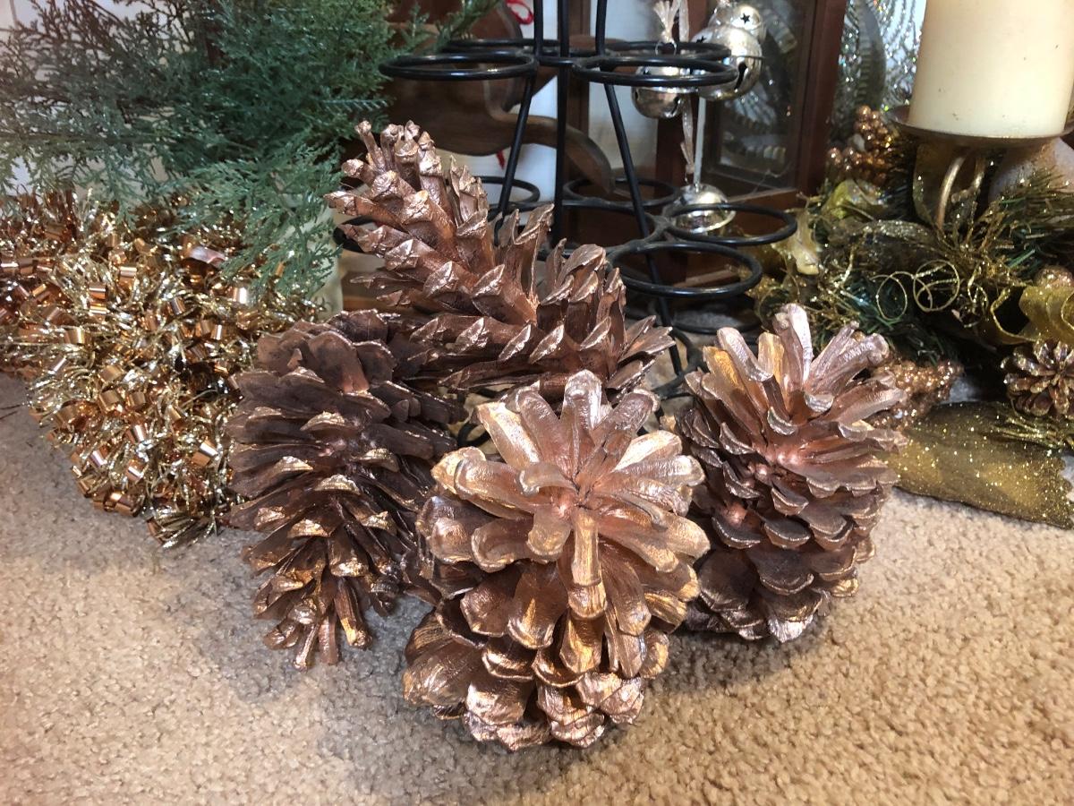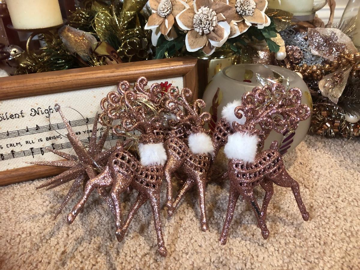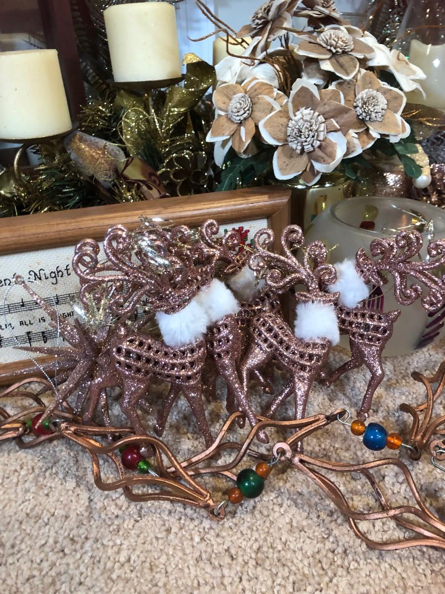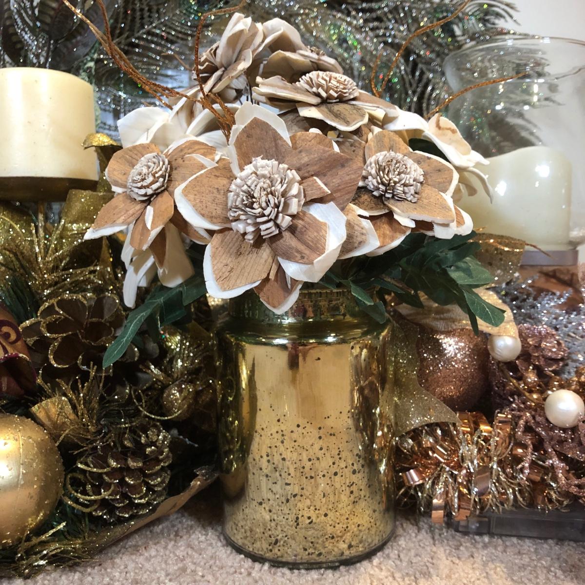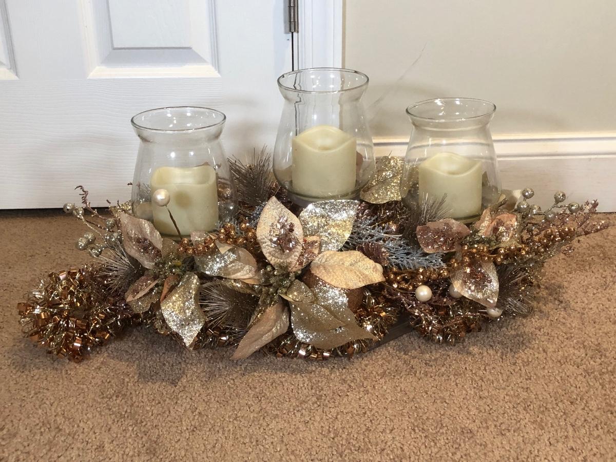 LOT 180B: Large Christmas Home Decor Collection - Vintage Wooden Carousel Horse, Peacock Feather Wreath, Centerpieces, Metal Garland & More