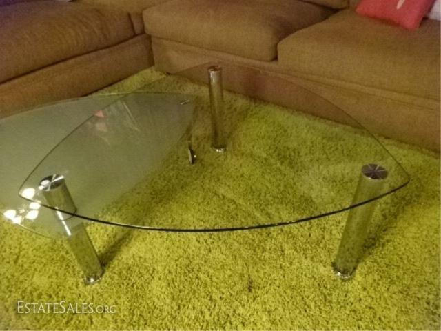 LOT 107A: MODERN CHROME AND GLASS COFFEE TABLE