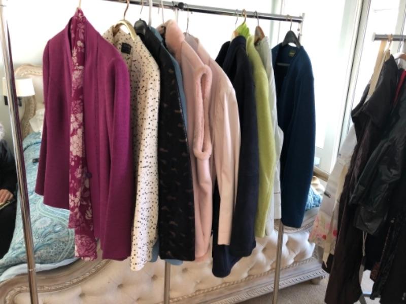 Lot 107U. Lot of 10 women’s jackets, size UK 40, US 16), (Bosler, Rock & Republic, Dana Buchman, Jacques Vert, Ralph Lauren (leather)--$150
