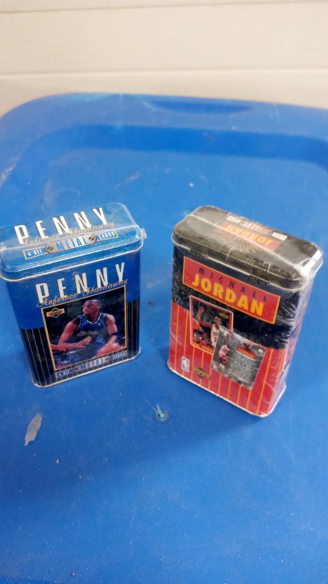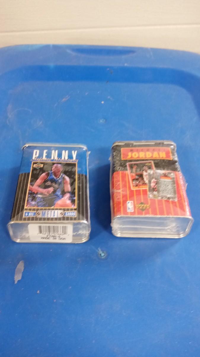LOT 108 - TWO METAL BOXES BASKETBALL CARDS ONE JORDAN