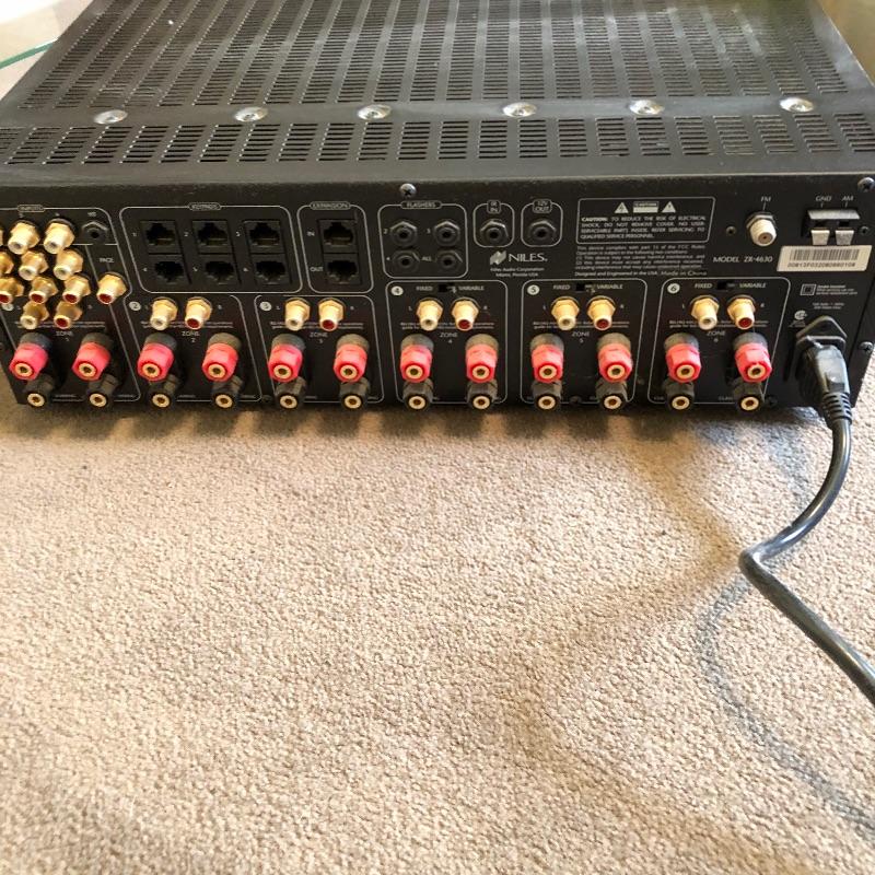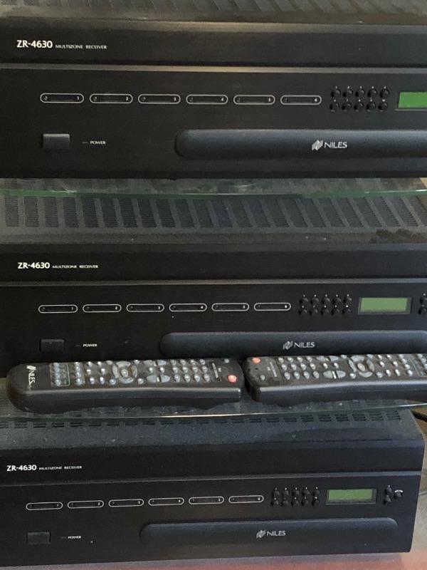 Super sweet set of 3 Niles ZR-4630 Multizone Receivers. All 3 turn on when plugged in but remotes are untested they need batteries. Each unit measures 17” x 14” x 6”. Local pickup only.