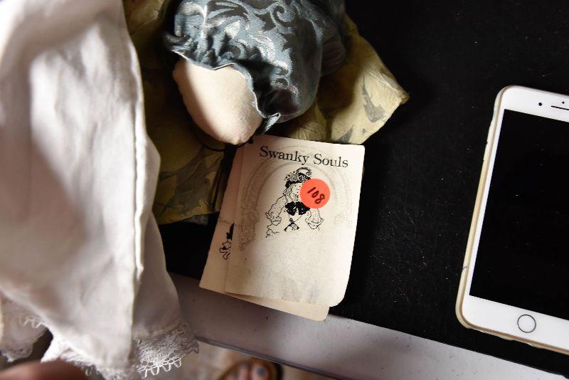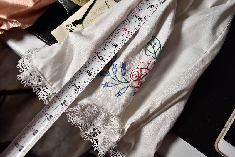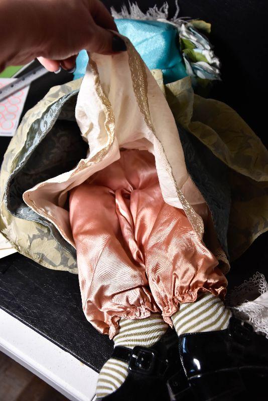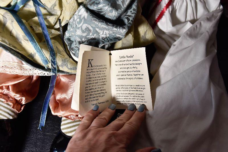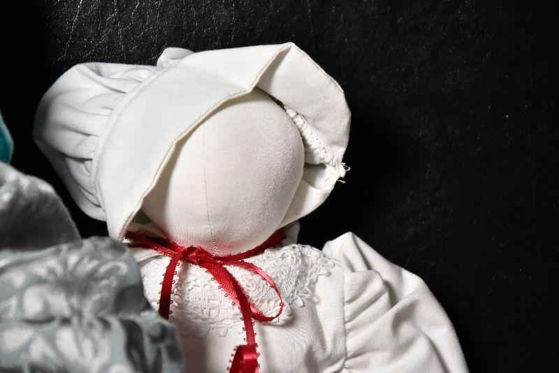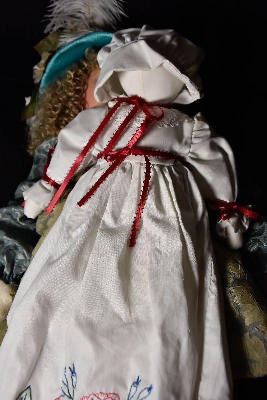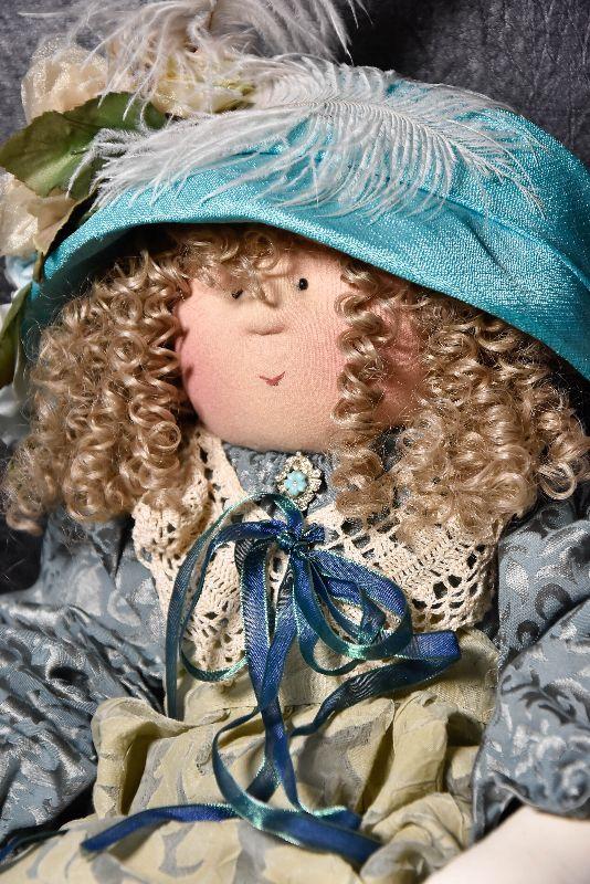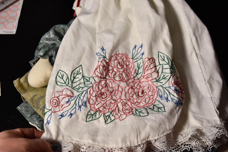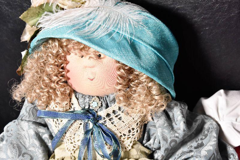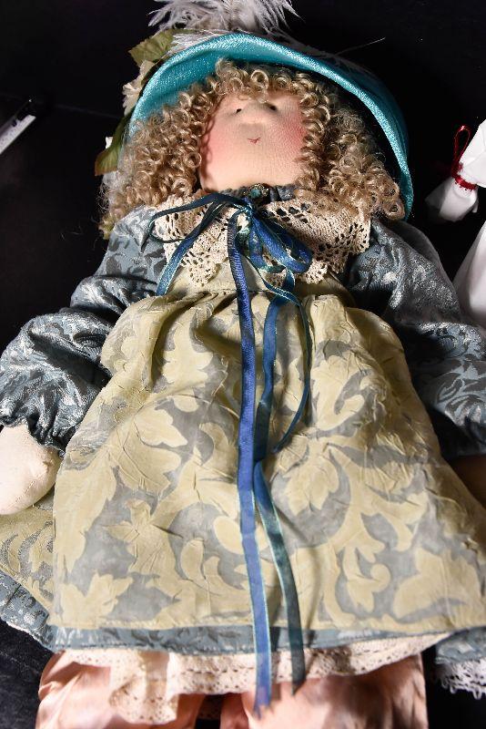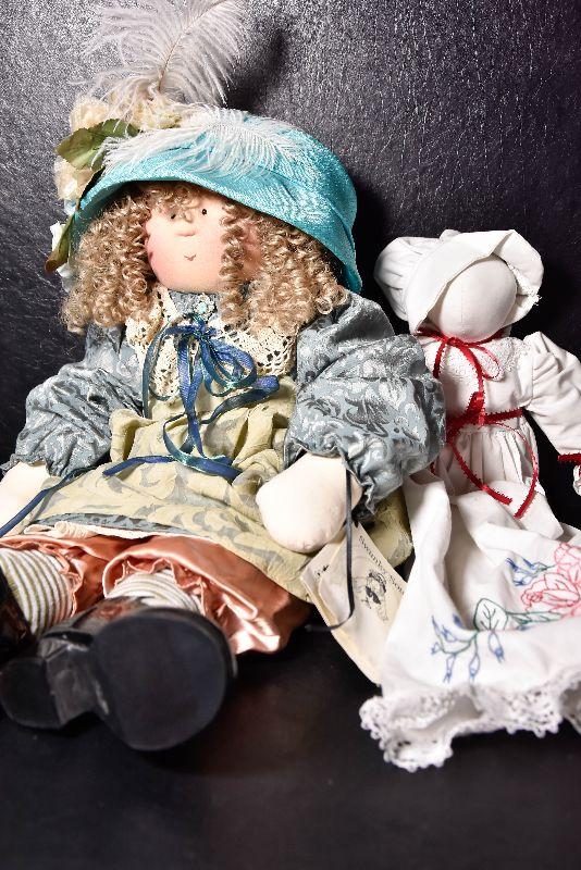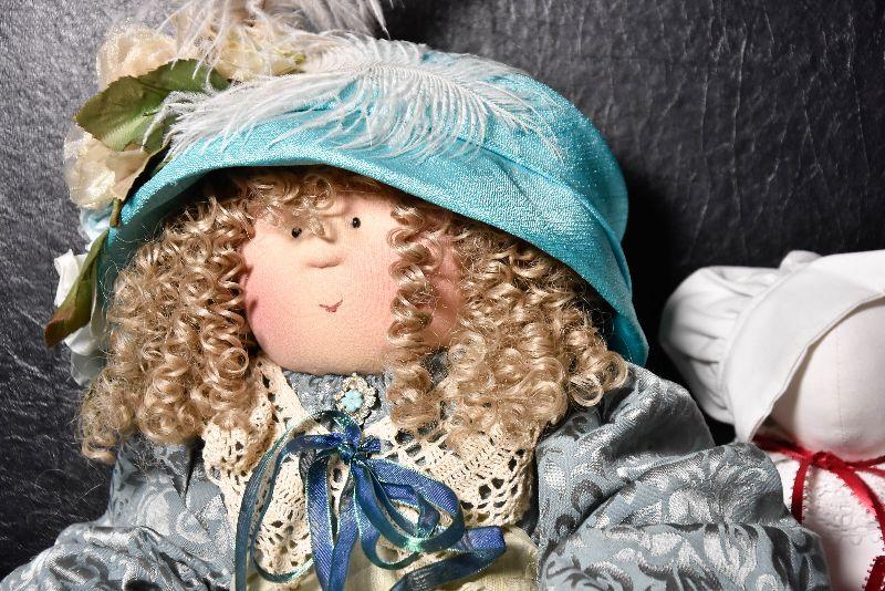 Soft, floppy dolls dressed in beautiful clothes with lace and embroidered dresses.