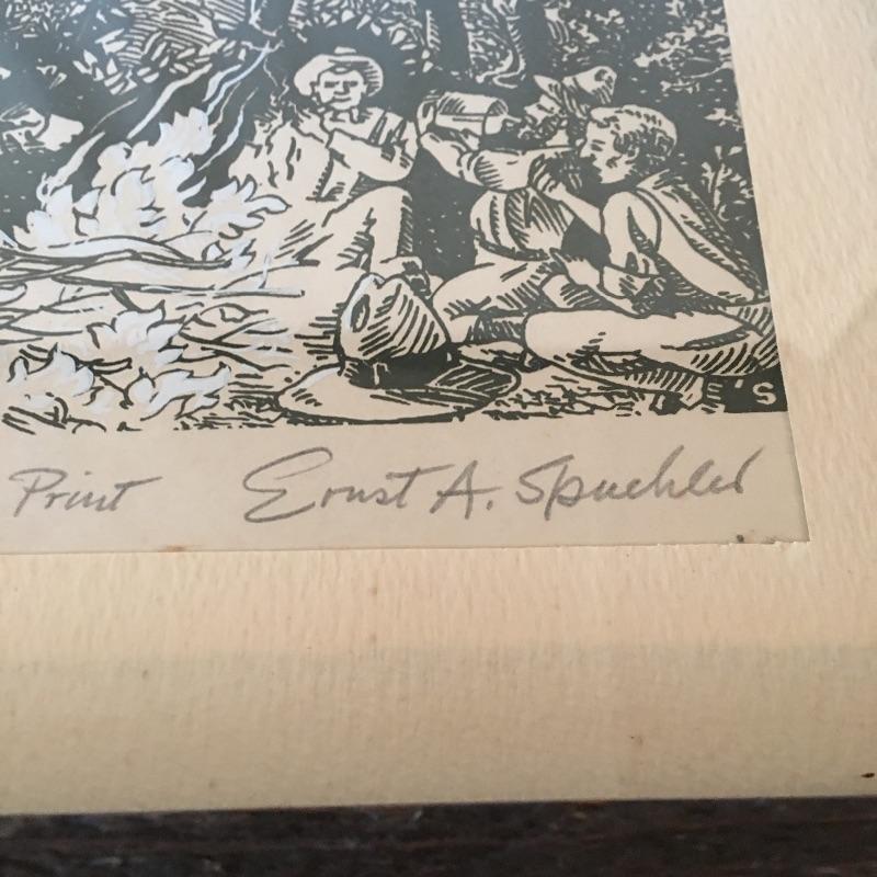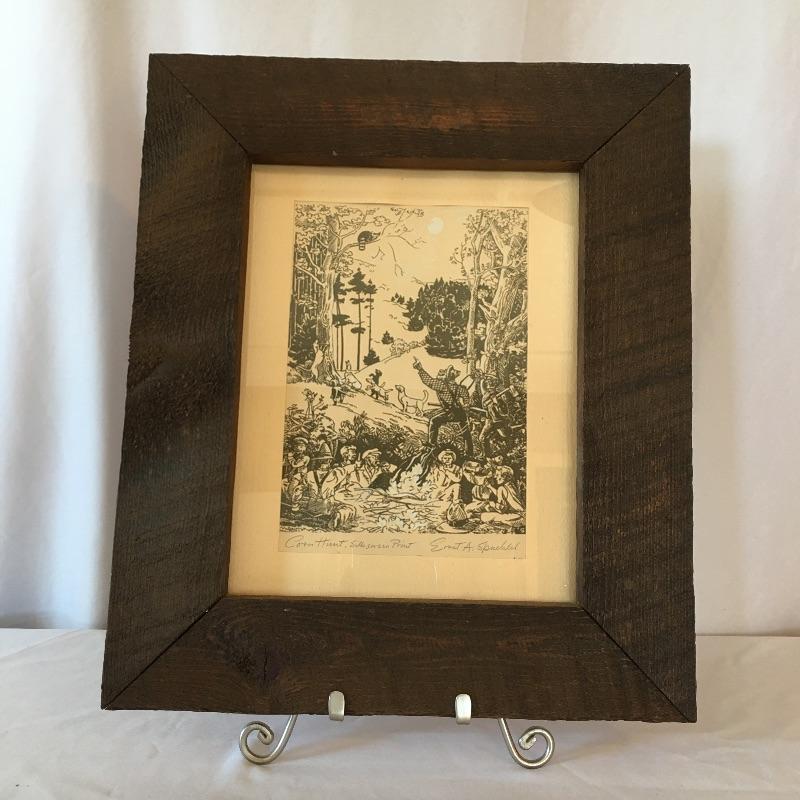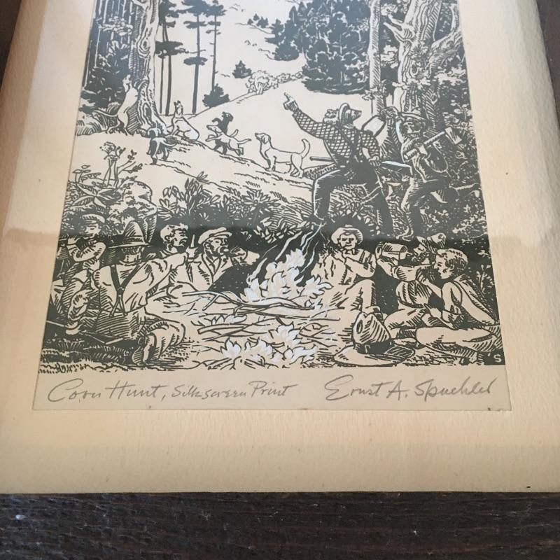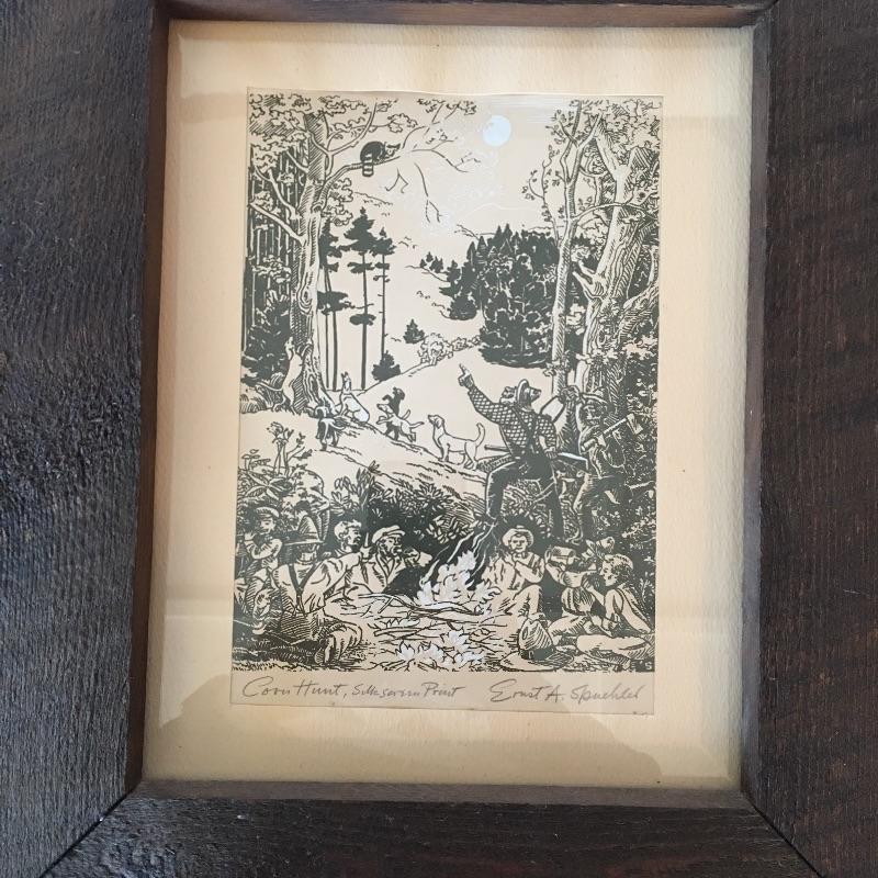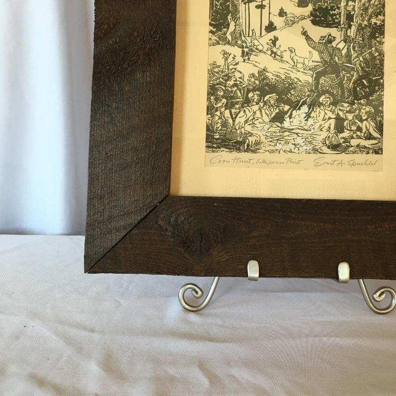 This Ernst A. Spuehler silkscreen print titled “Coon Hunt” is in a rustic wooden frame and is pencil signed. Get this neat Appalachian piece of art for your cabin or home. Frame measures 15” x 18”.
