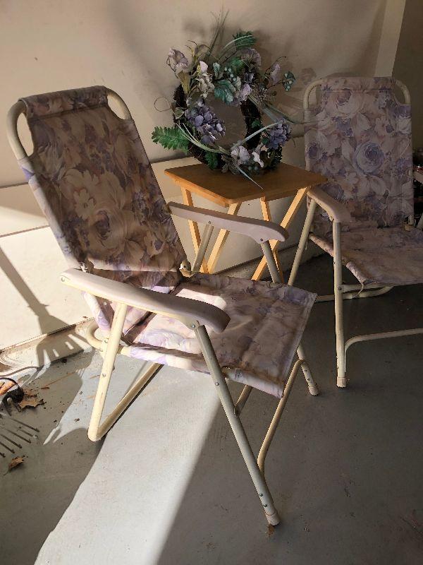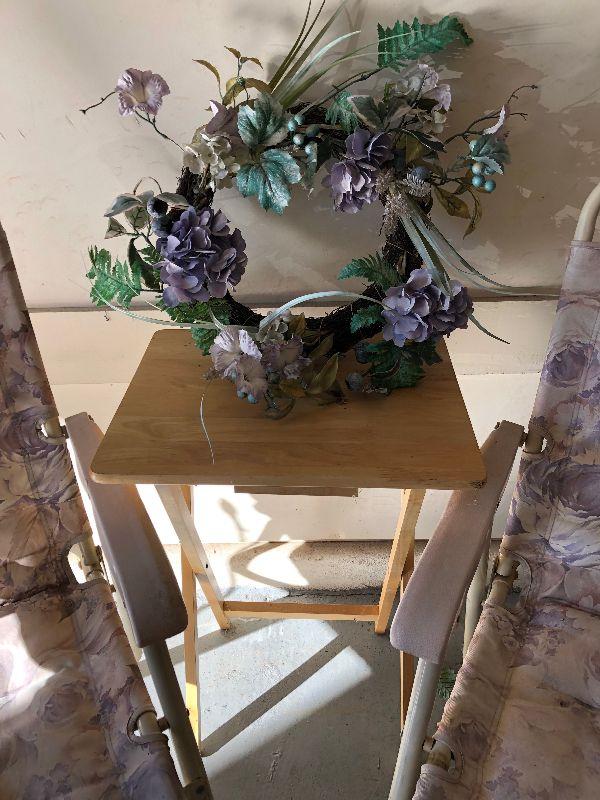 2 Lawn Chairs, TV Table and Decorative Wreath